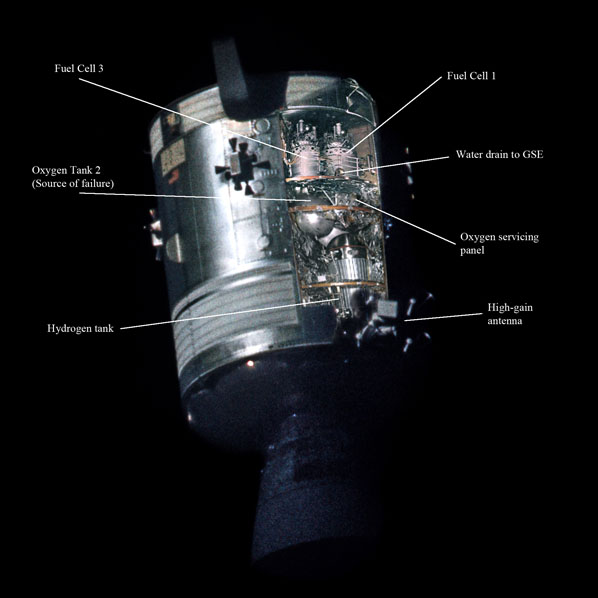 Figure 5. Bay 4 of Apollo 13's Service Module. This contained the spacecraft's oxygen and hydrogen tanks for power generation and breathing air. (Click for the full size version.)