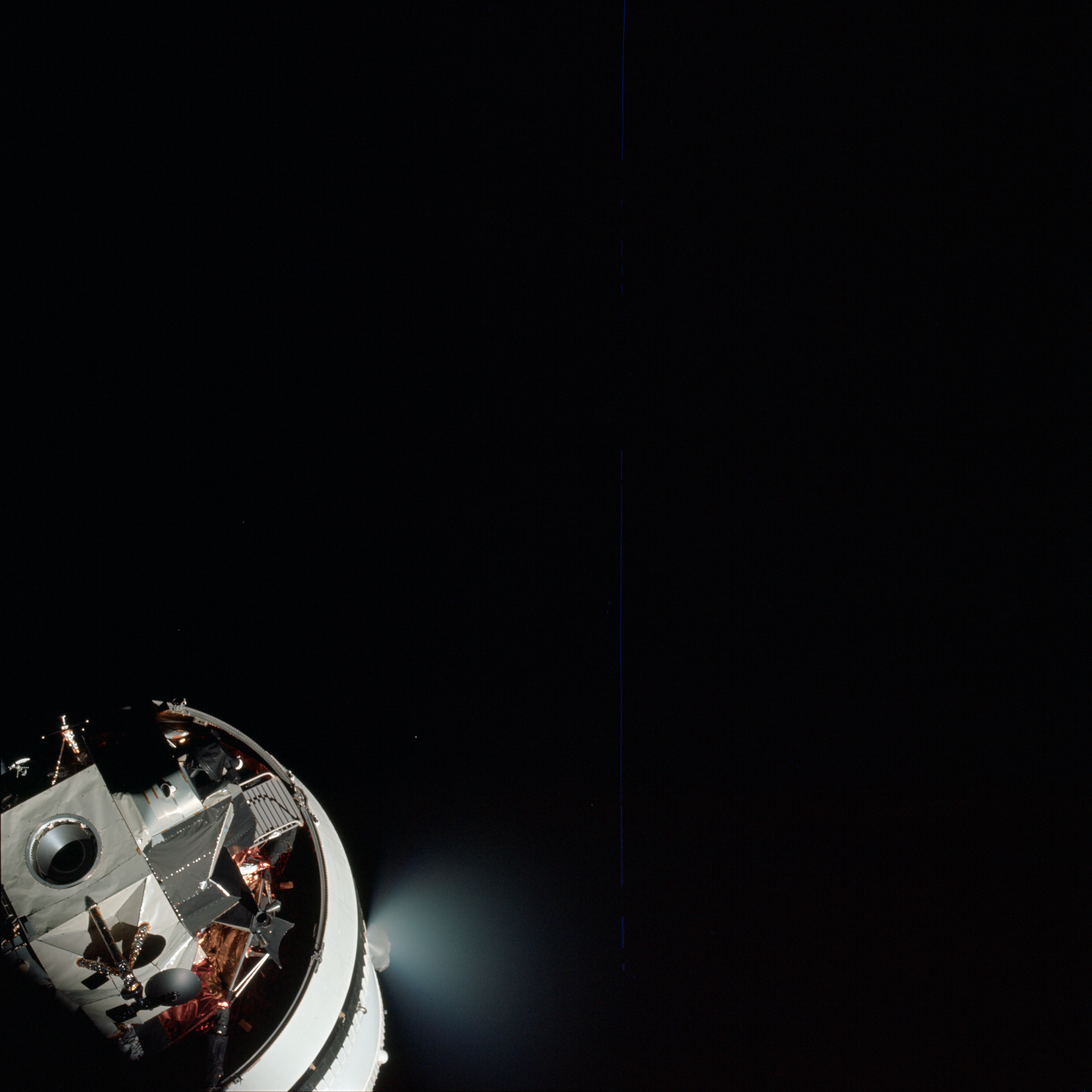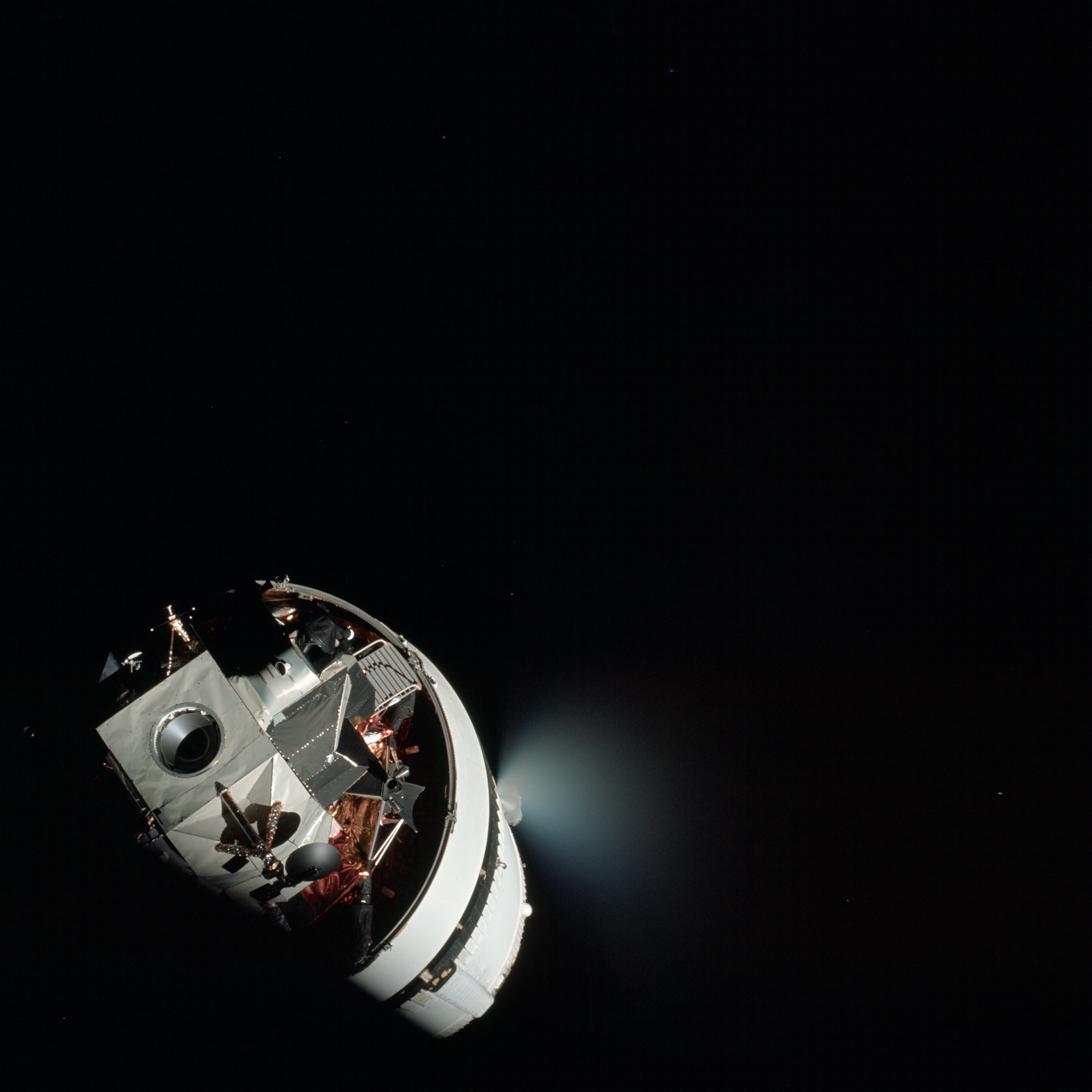 Ever the competitive test pilot, Stu wants to set a record for the lowest propellant consumption during transposition and docking. So far this maneuver has been performed operationally in space by CMPs Dave Scott, John W. Young, Michael Collins, Dick Gordon and Jack Swigert.
