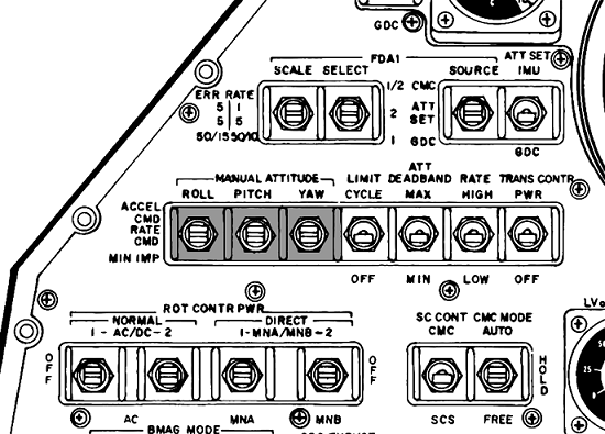 Manual Attitude control switches on Main Display Console Panel 1.