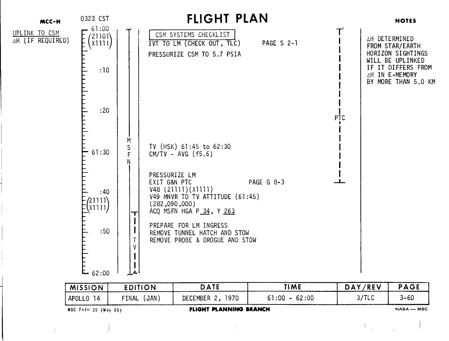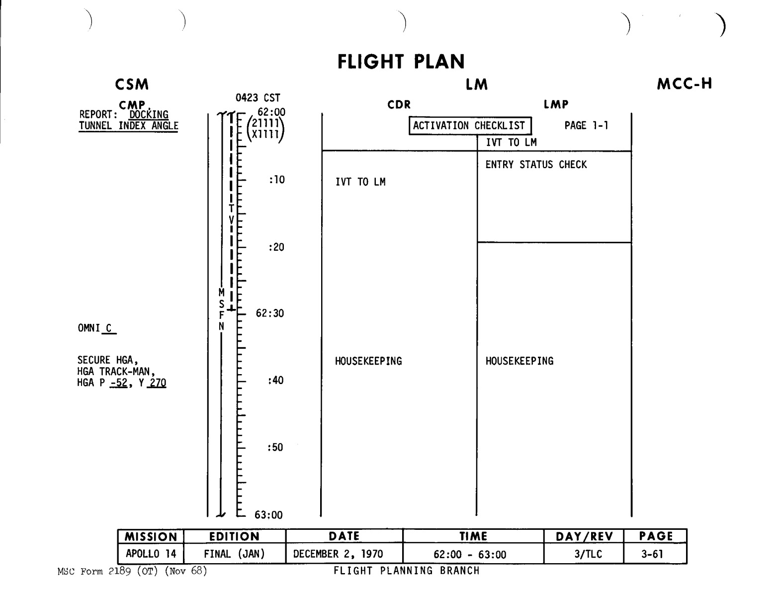 061:01:47 Shepard: Okay. Apollo 14 is progressing very nicely. As you can see, we're now right on schedule. And it looks as though the first midcourse correction is going to put us in for the lunar orbit insertion burn - very close. We're - we're currently preparing to go into the