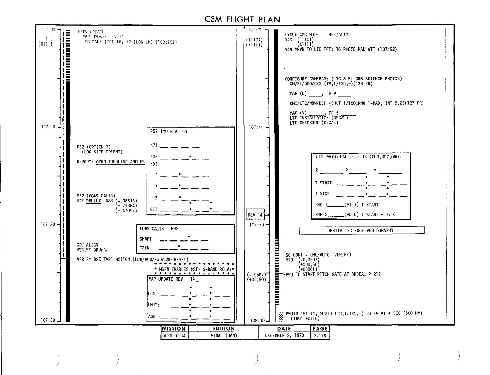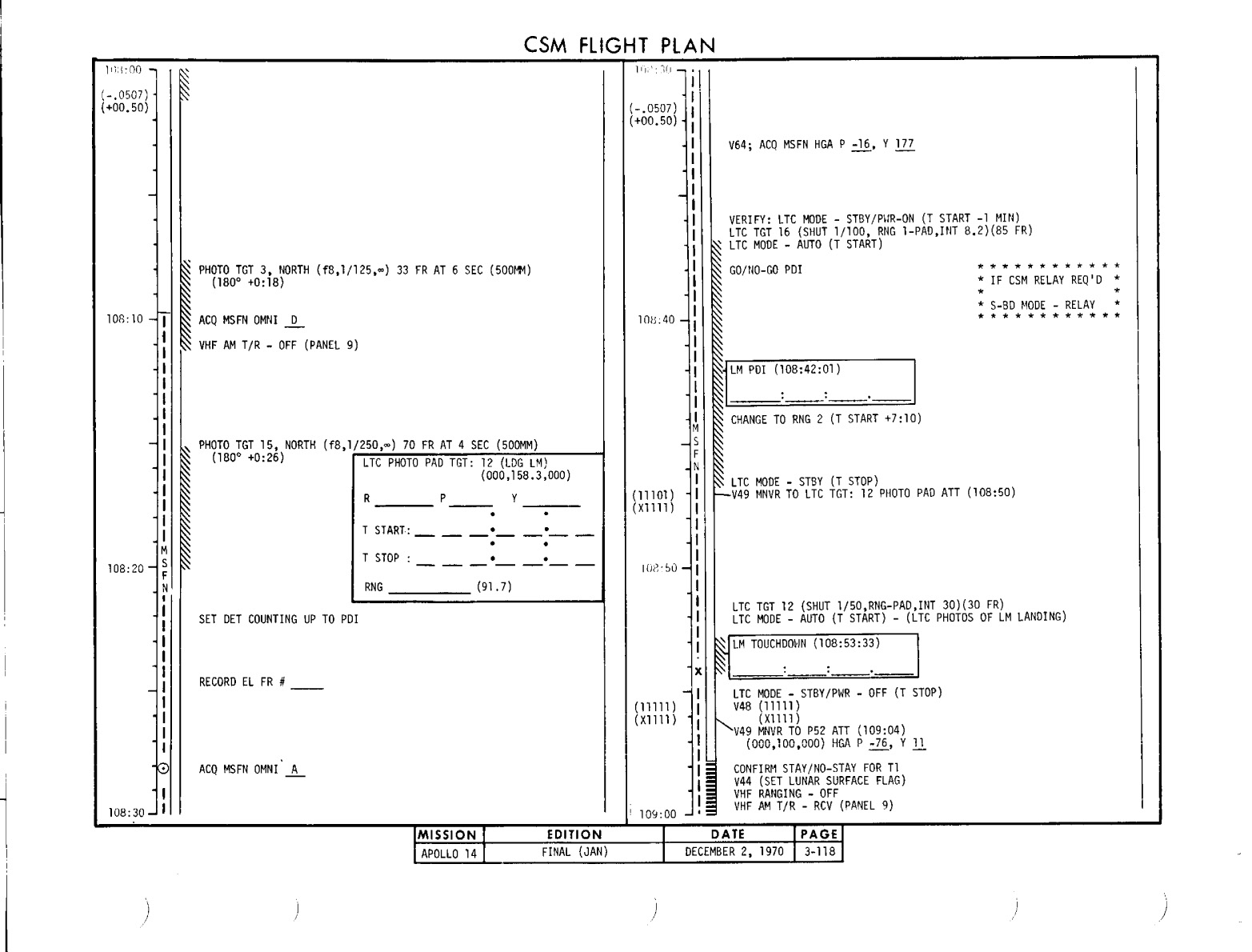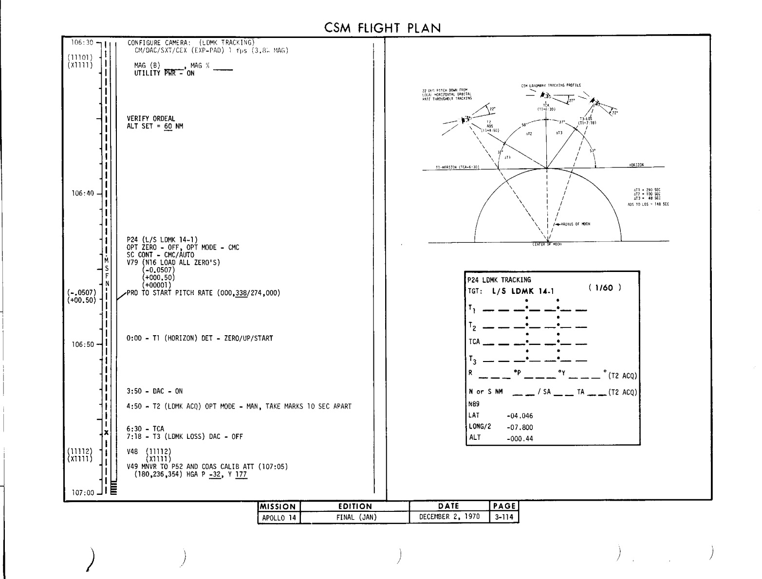 105:19:58 Roosa: Okay. 14-1; 106:49:28, 106:54:18, 106:55:58, 106:56:46, south 2.