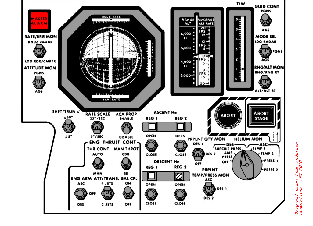Lower half of Commander's Panel (Panel 1) in the LM.