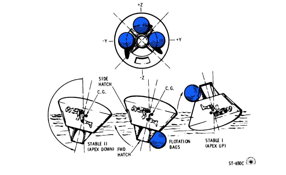 Speaker: And the third astronaut has exited from the Command Module, and is in the egress raft.