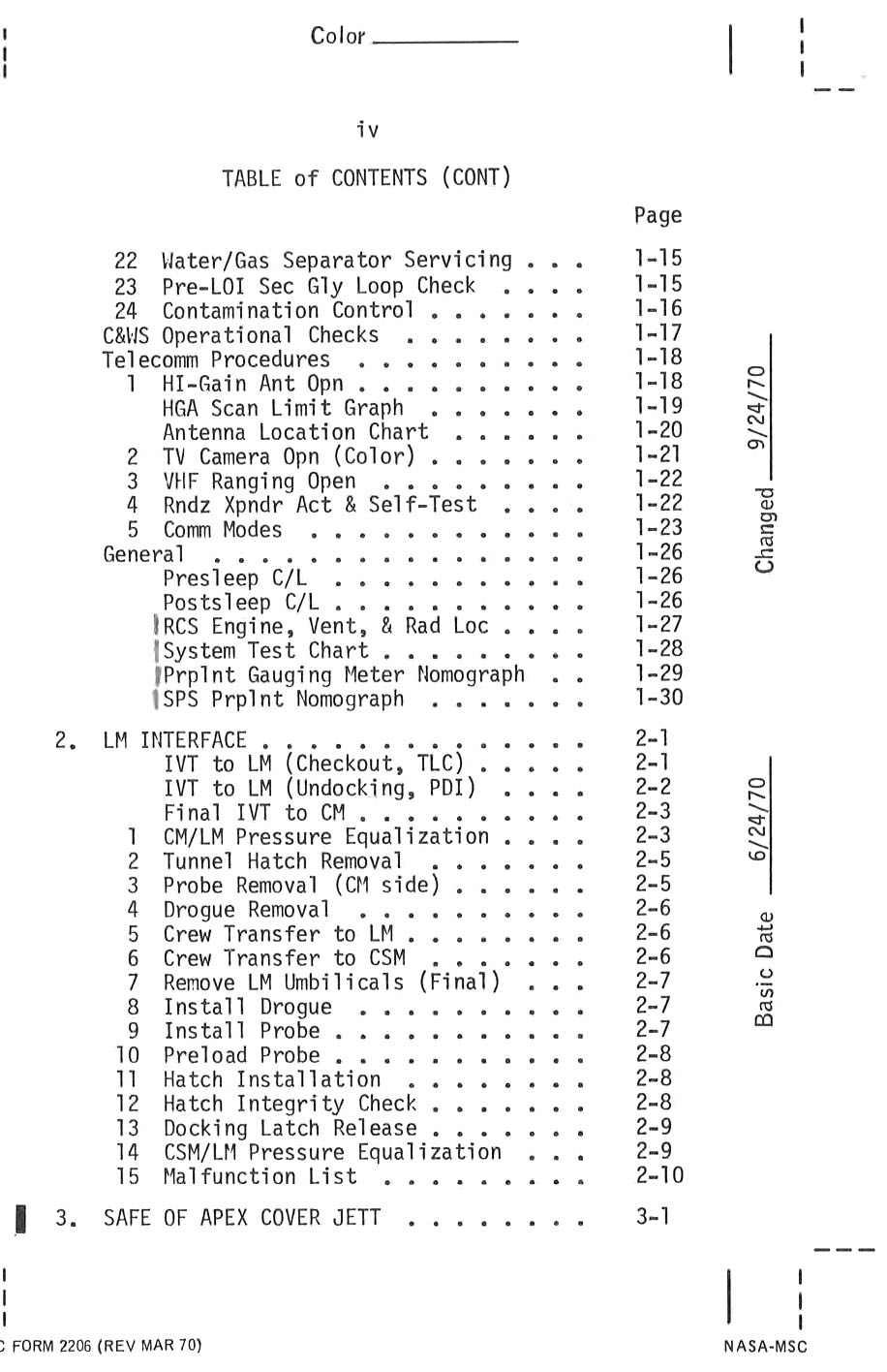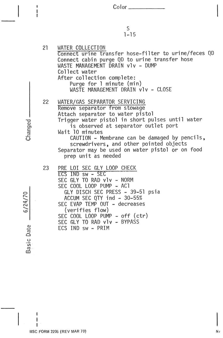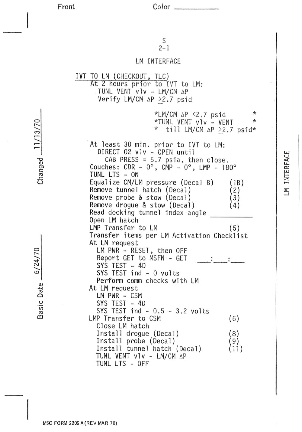 - 2-06 Sub-checklist - Probe removal (continued), Drogue removal, Crew transfer to LM (suited)
