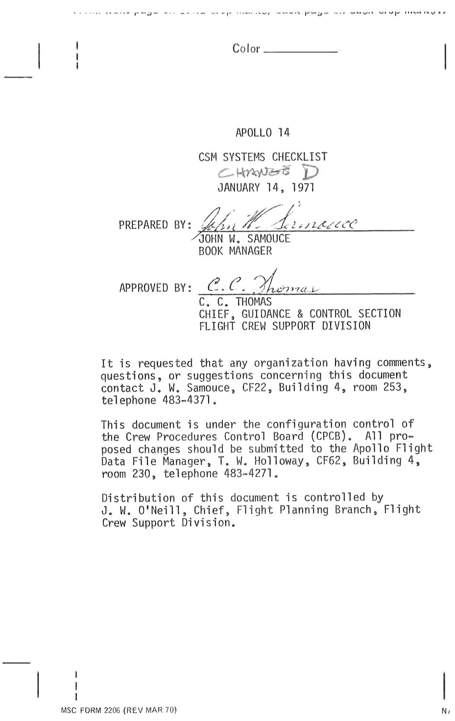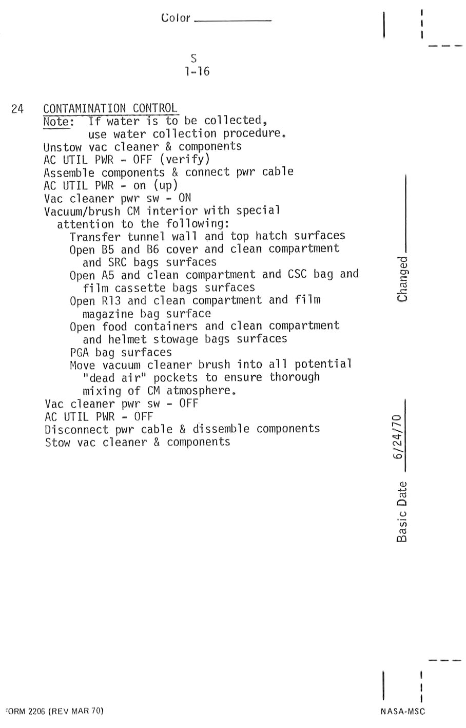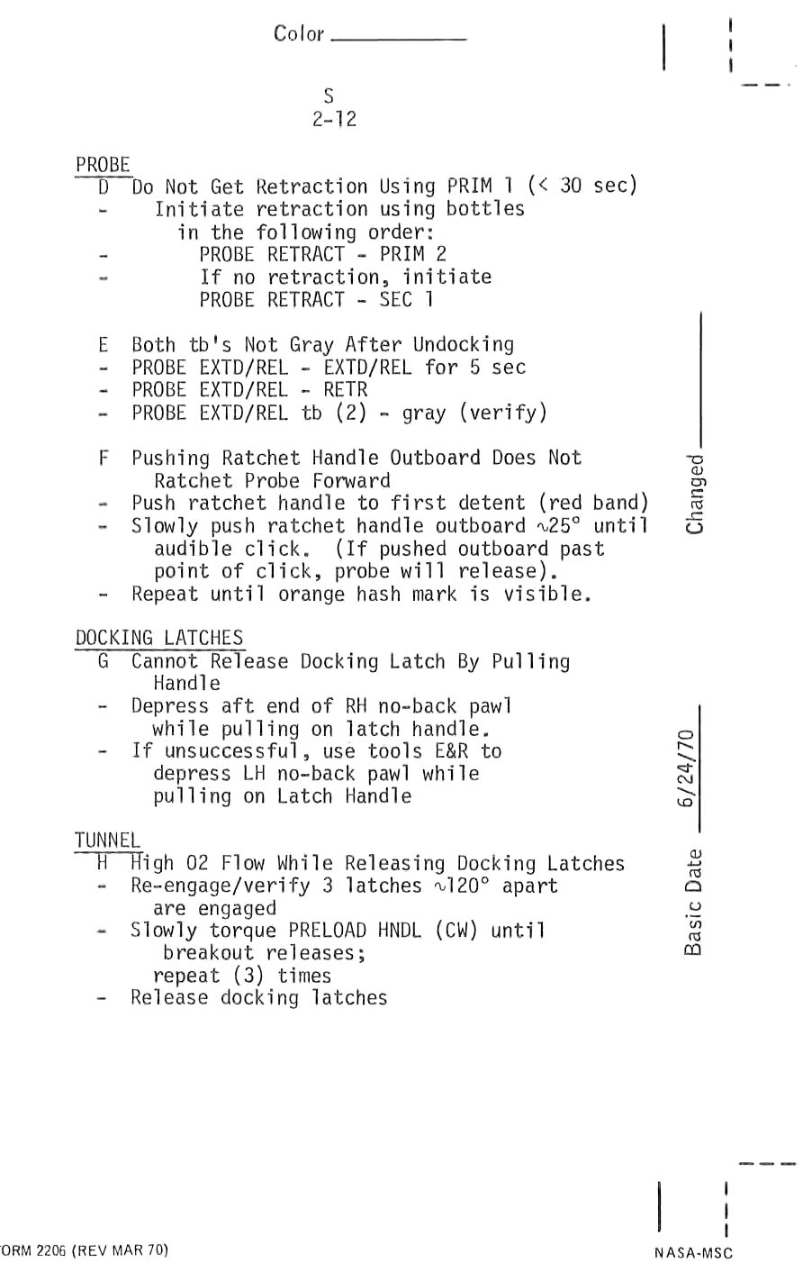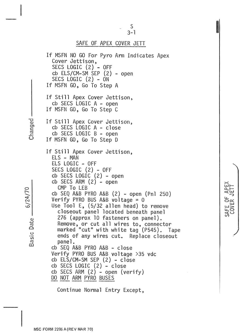 - 2-06 Sub-checklist - Probe removal (continued), Drogue removal, Crew transfer to LM (suited)