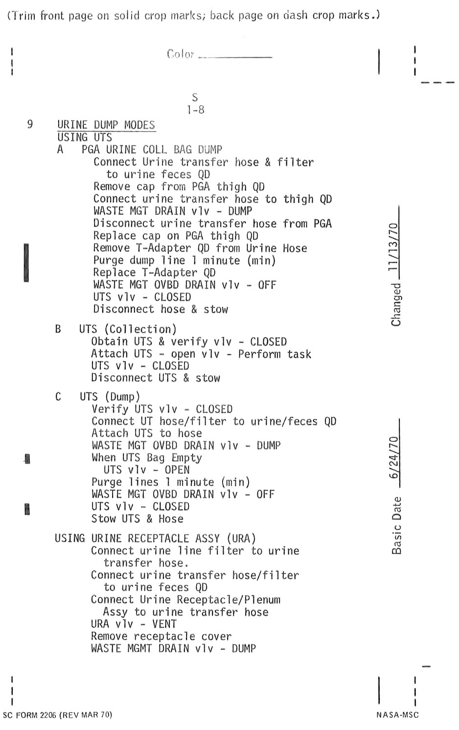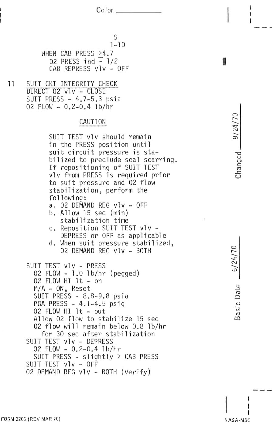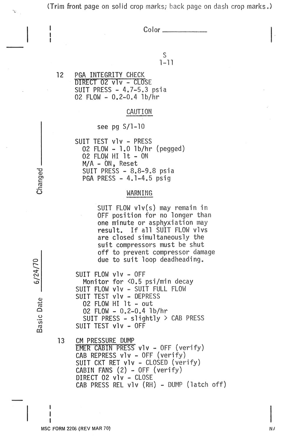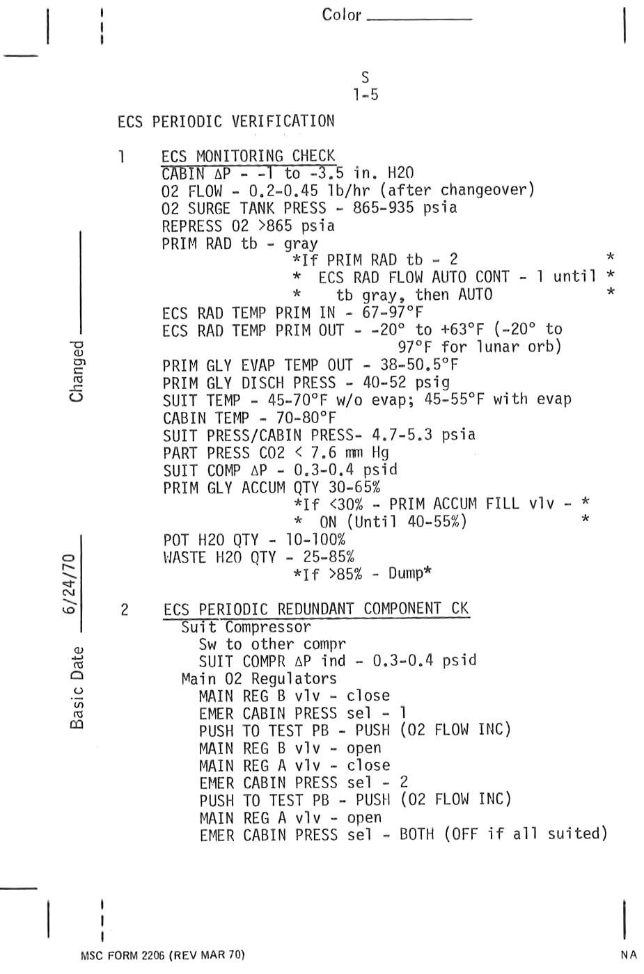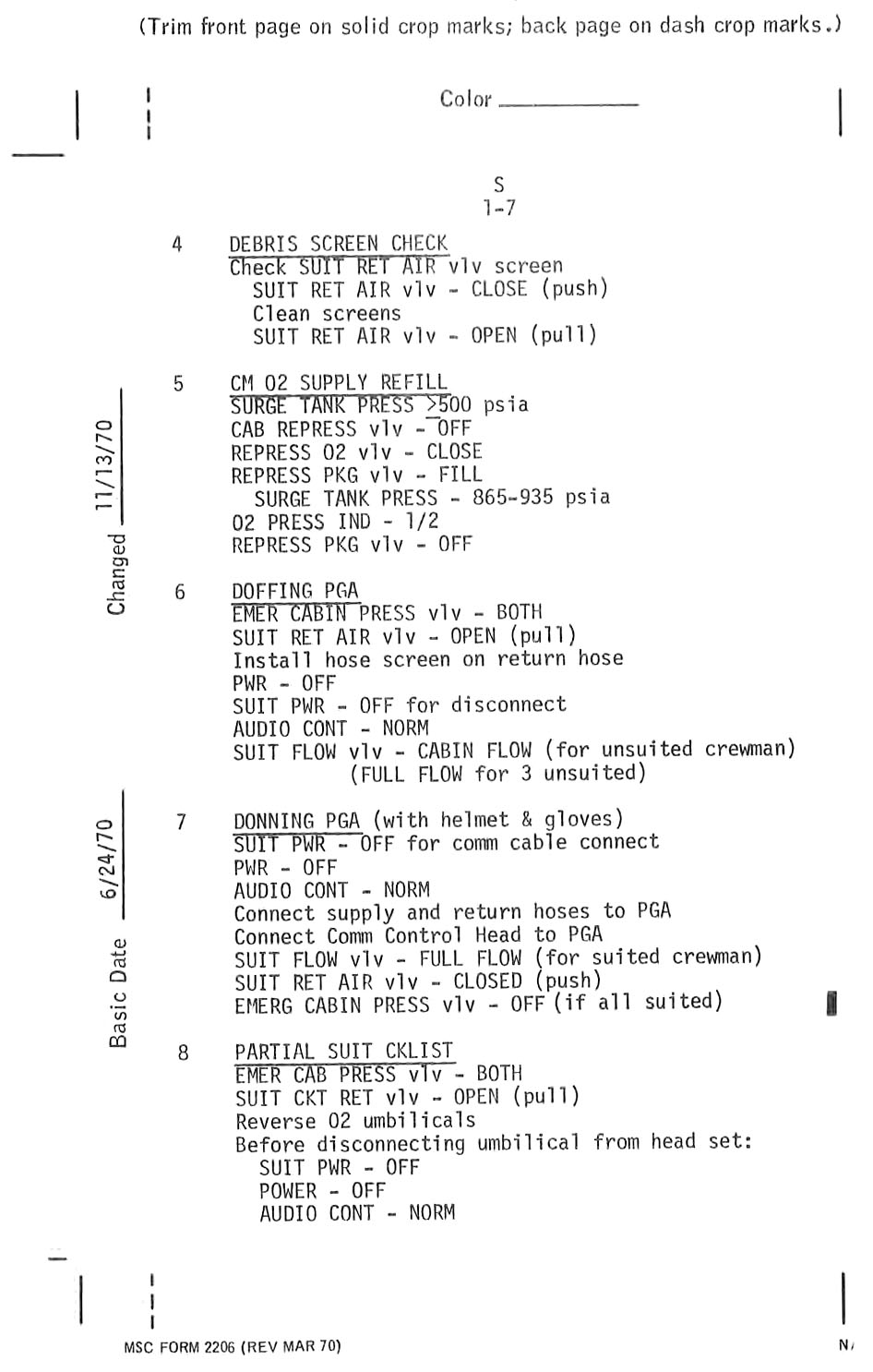- 1-07 ECS - Debris screen check, CM O2 supply refill, Doff & don PGA, Partial suit checklist