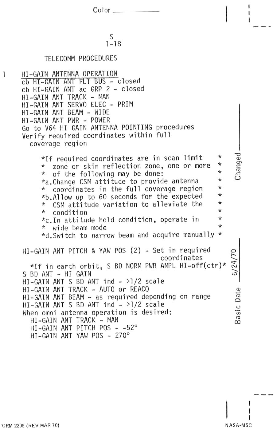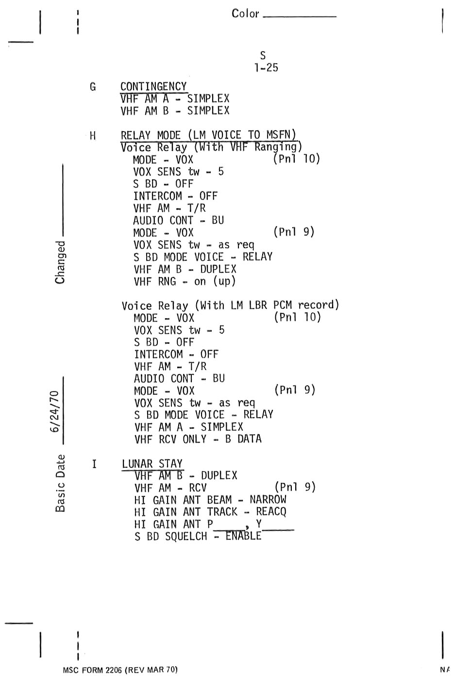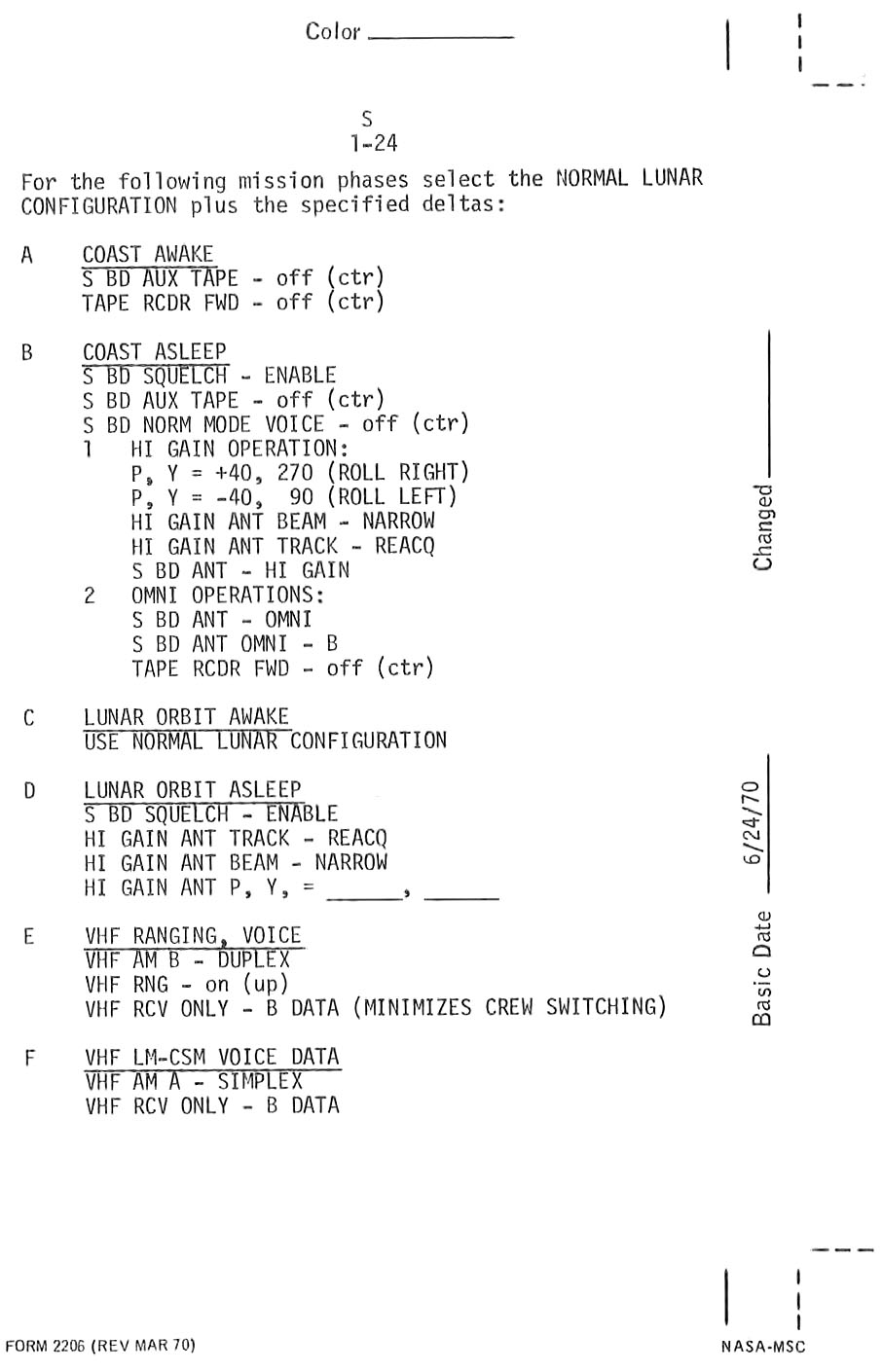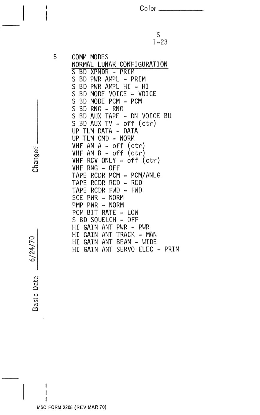 - 1-24 Telecomm - Mods to normal lunar configuration