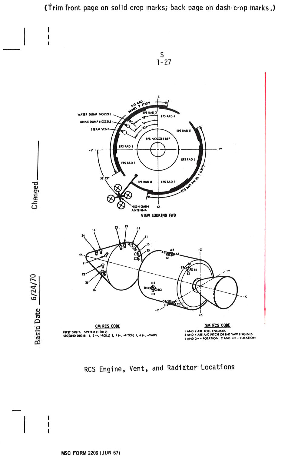 - 1-27 Diagram - RCS engine, vent and radiator locations