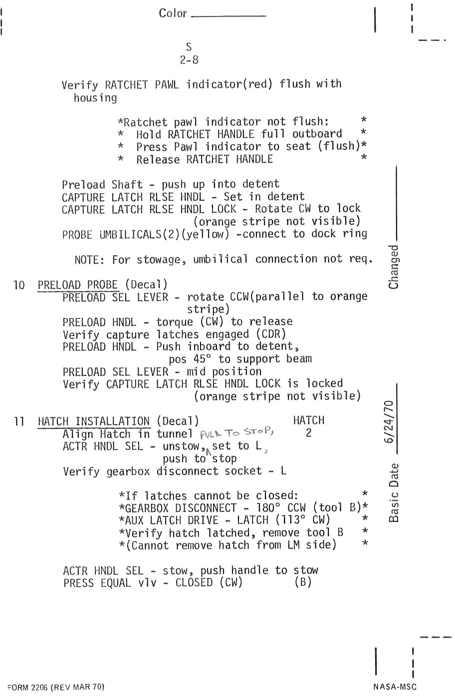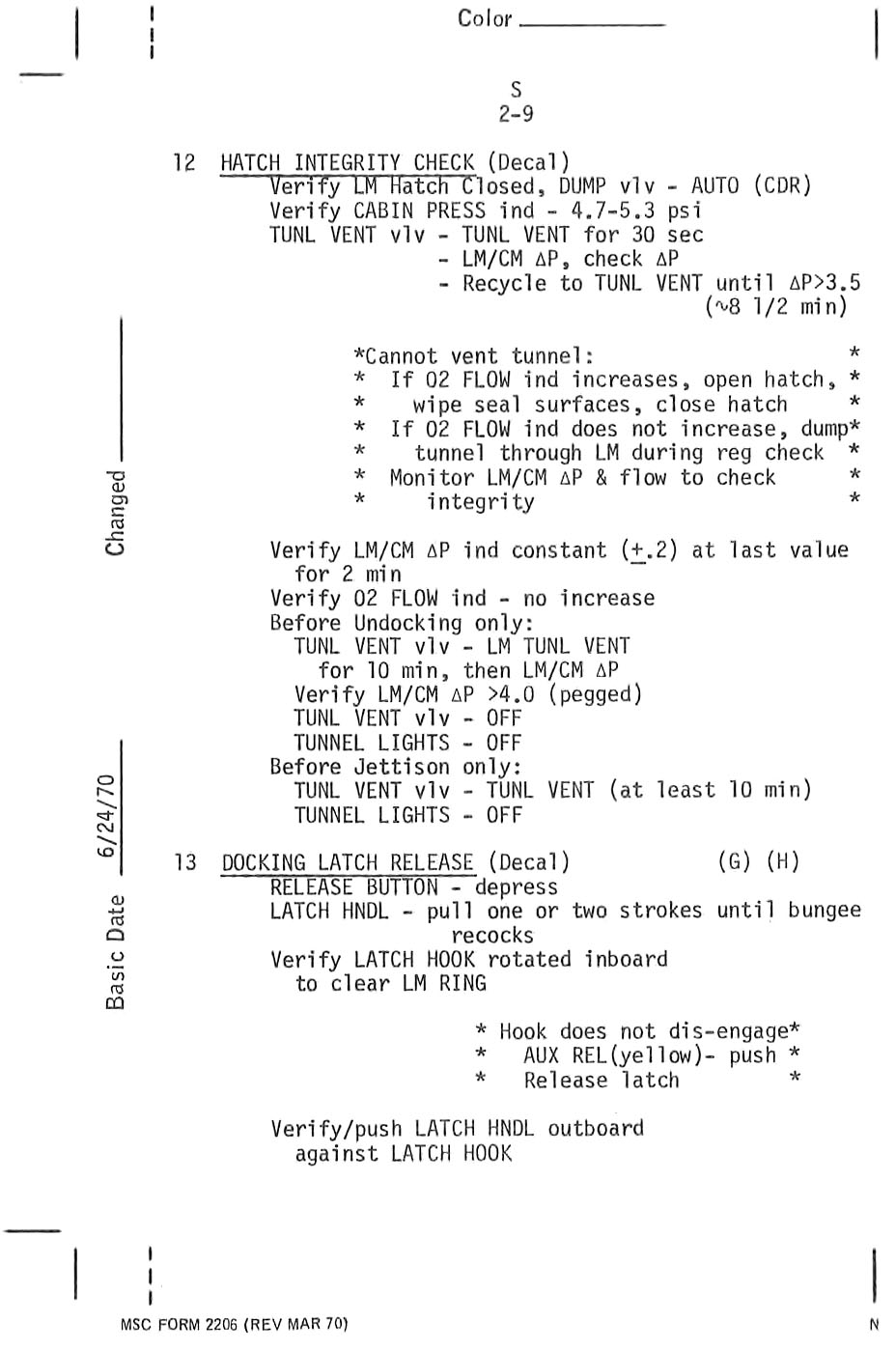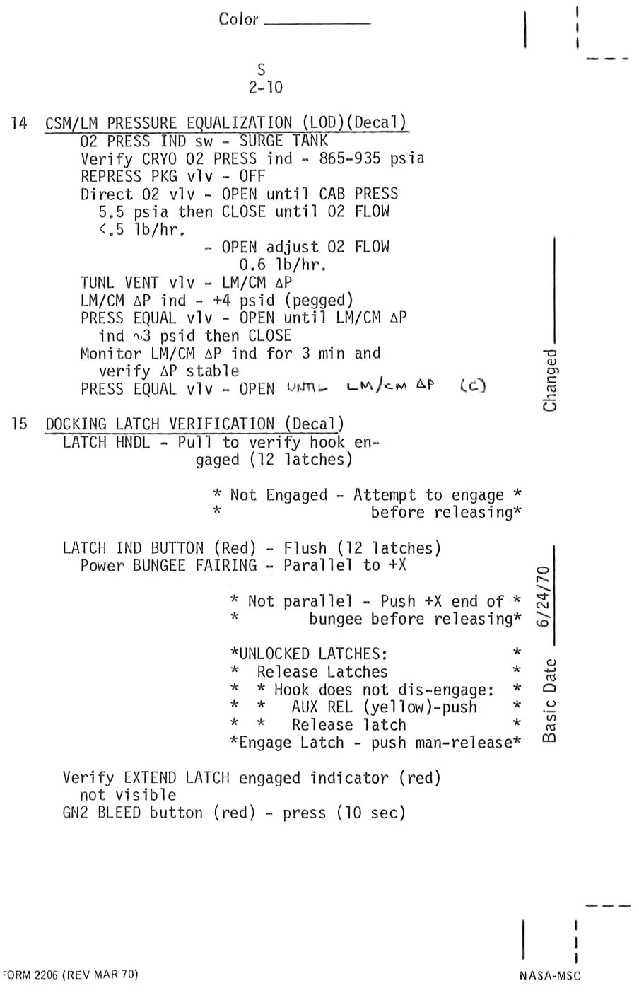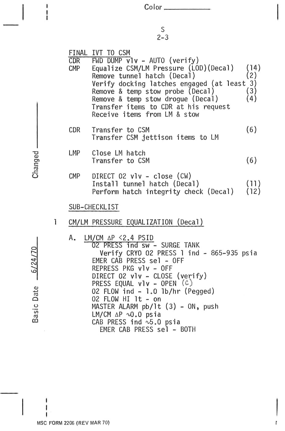 - 2-10 Sub-checklist - CSM/LM pressure equalisation (LOD), Docking hatch verification