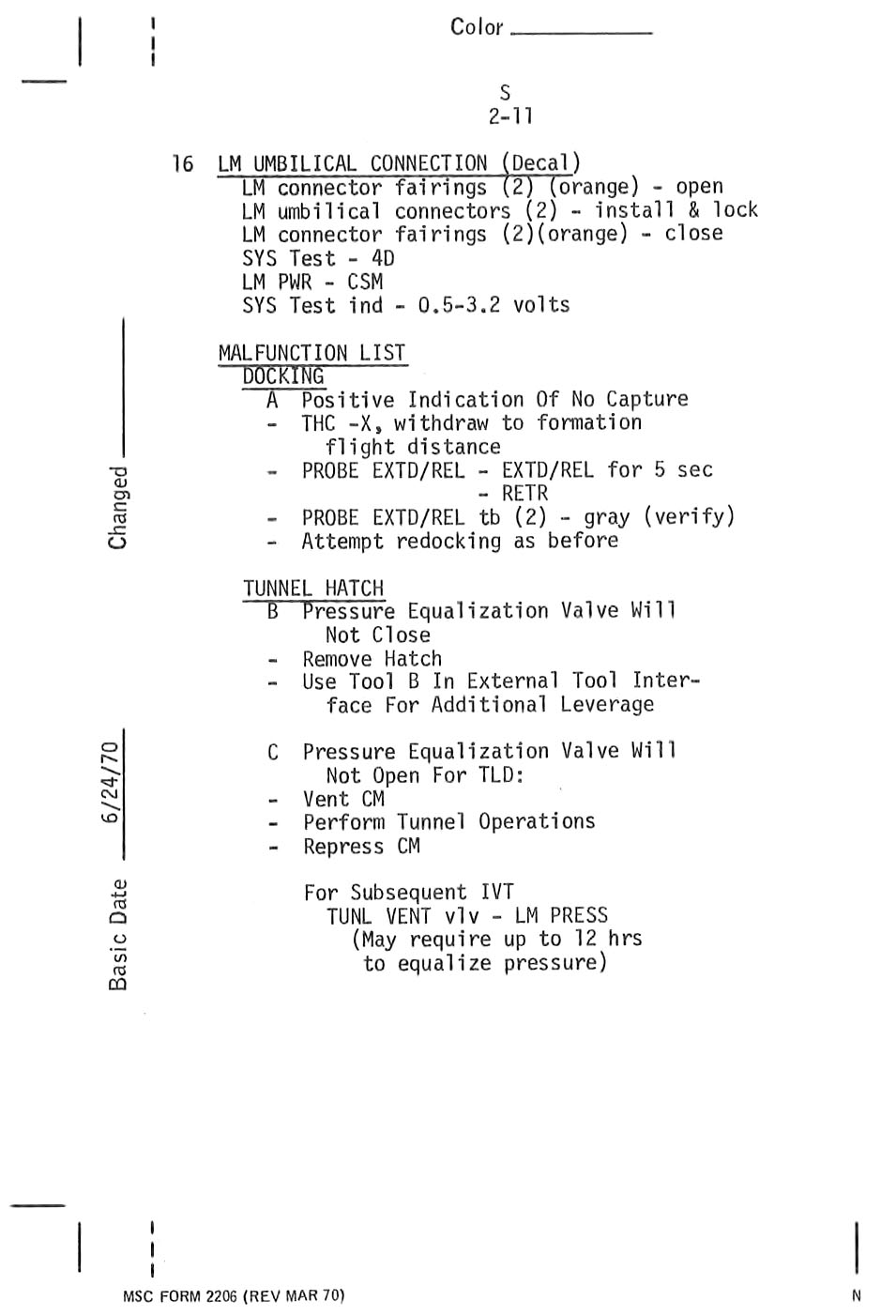 - 2-11 Sub-checklist - LM umbilical connection, Malfunction list