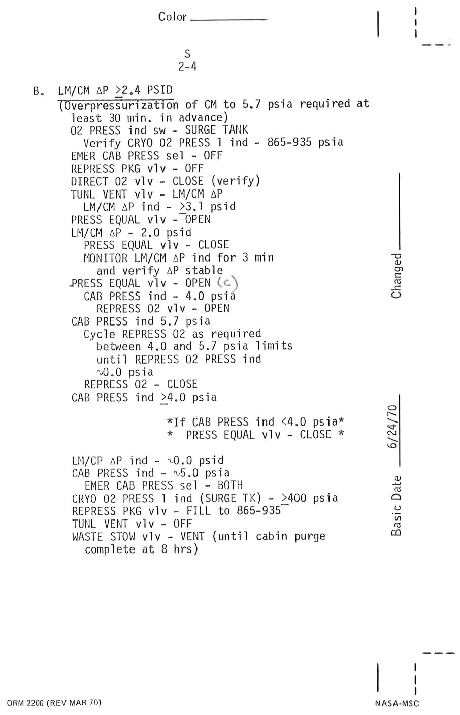 - 2-03 LM interface - Final IVT to CSM. Sub-checklist - CM/LM Pressure Equalisation