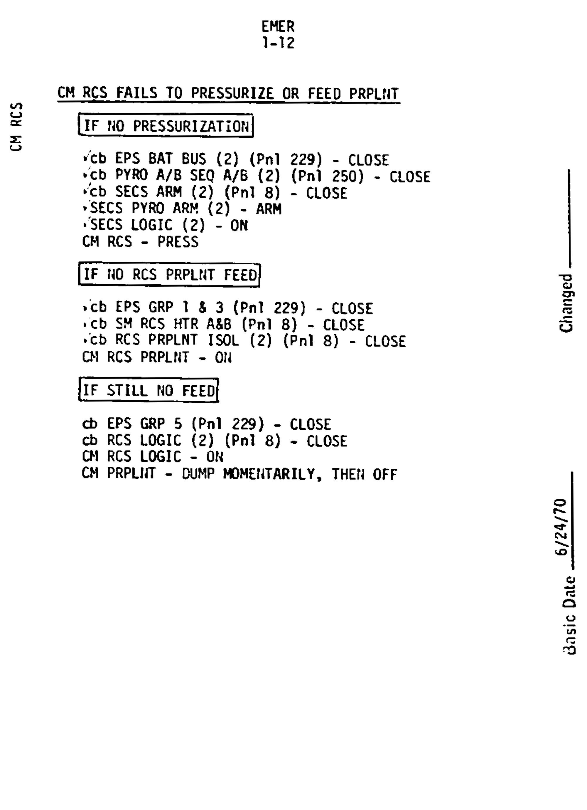- emer1-12 CM RCS fails to pressurise or feed propellant