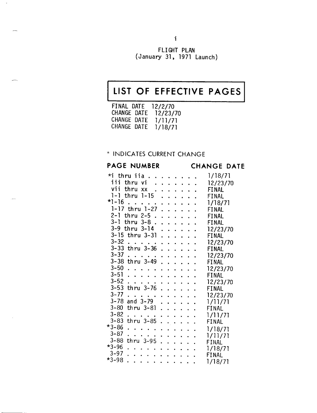 Flight Plan Index