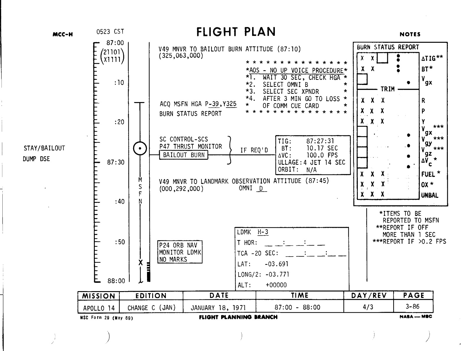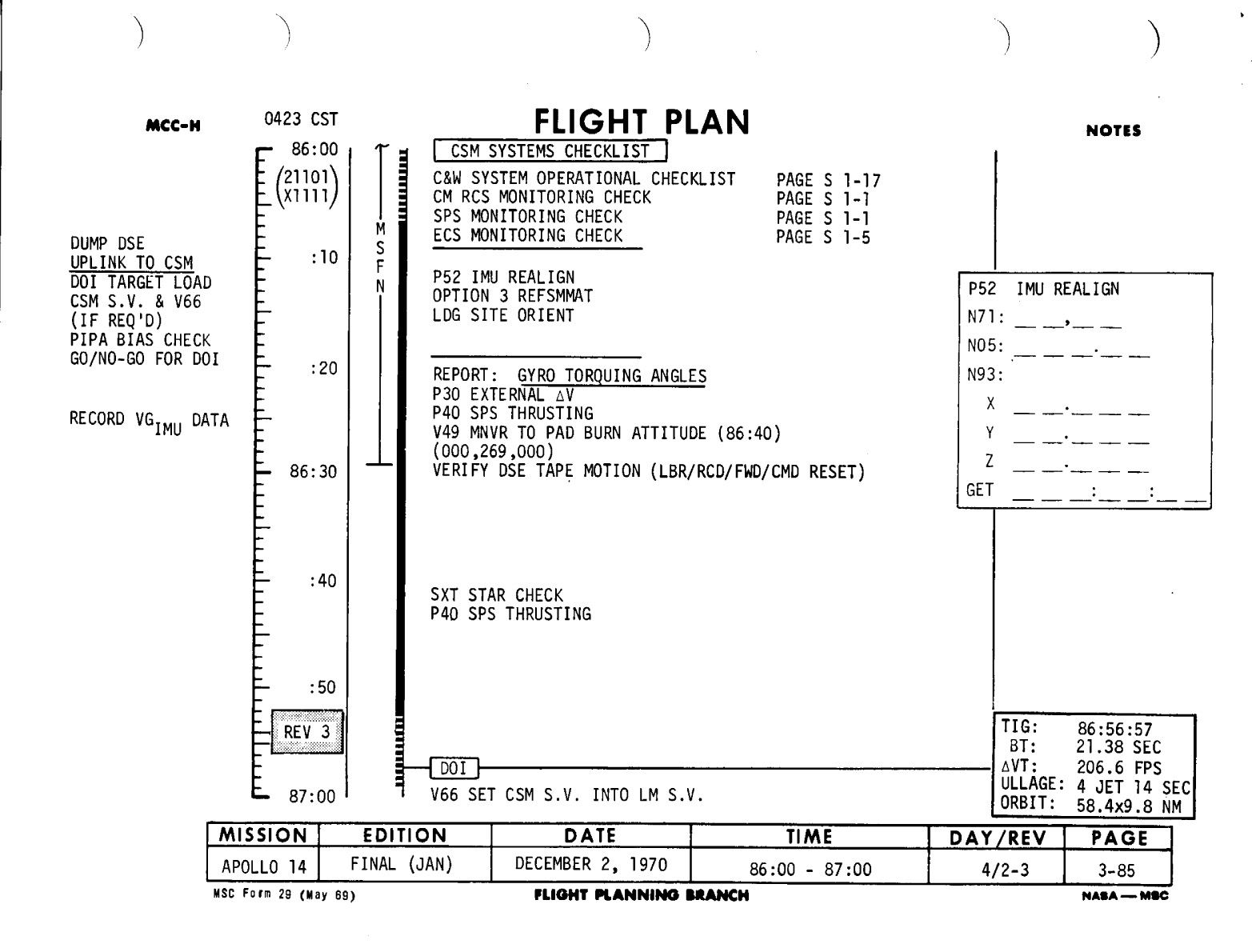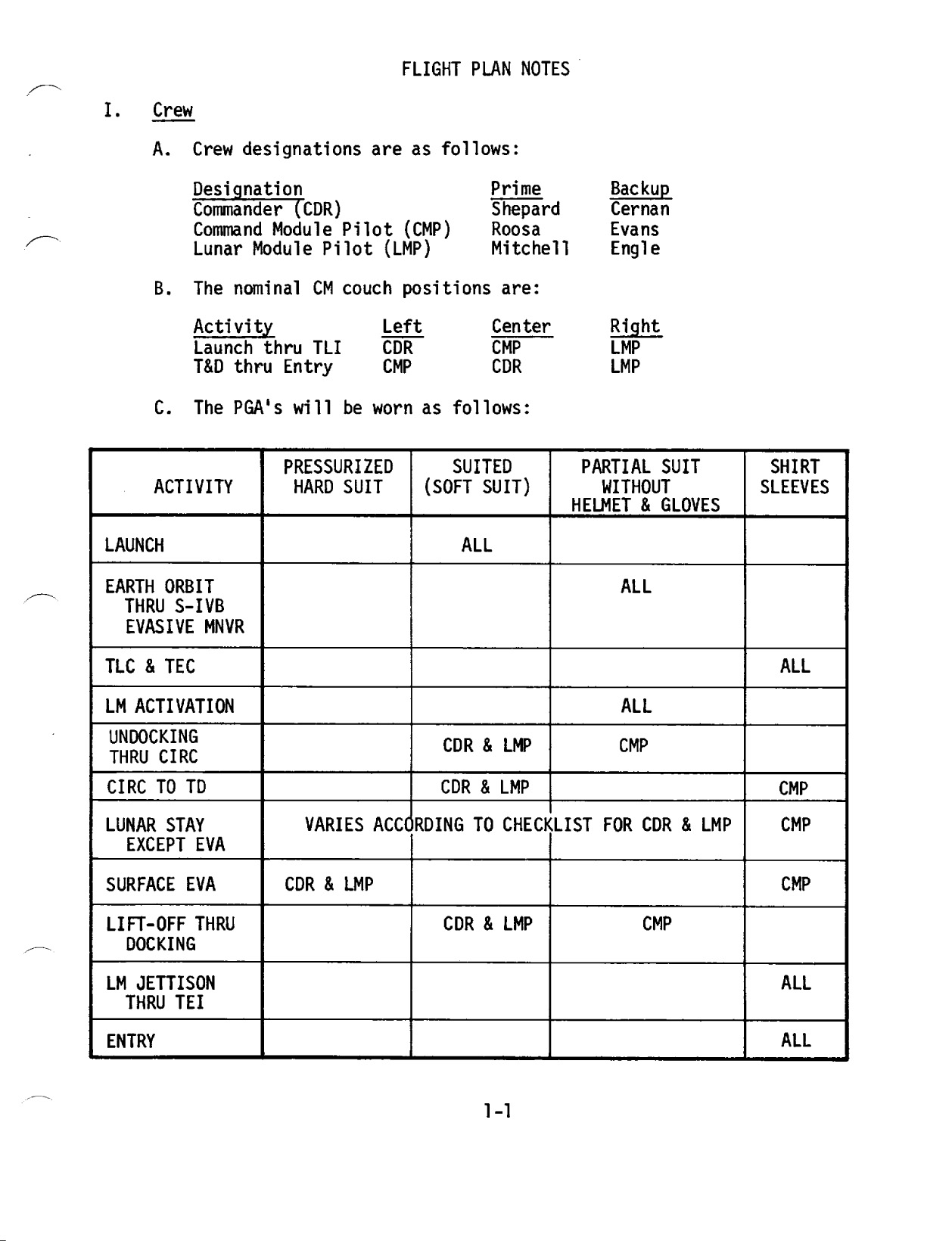Section 1 - Flight Plan Notes