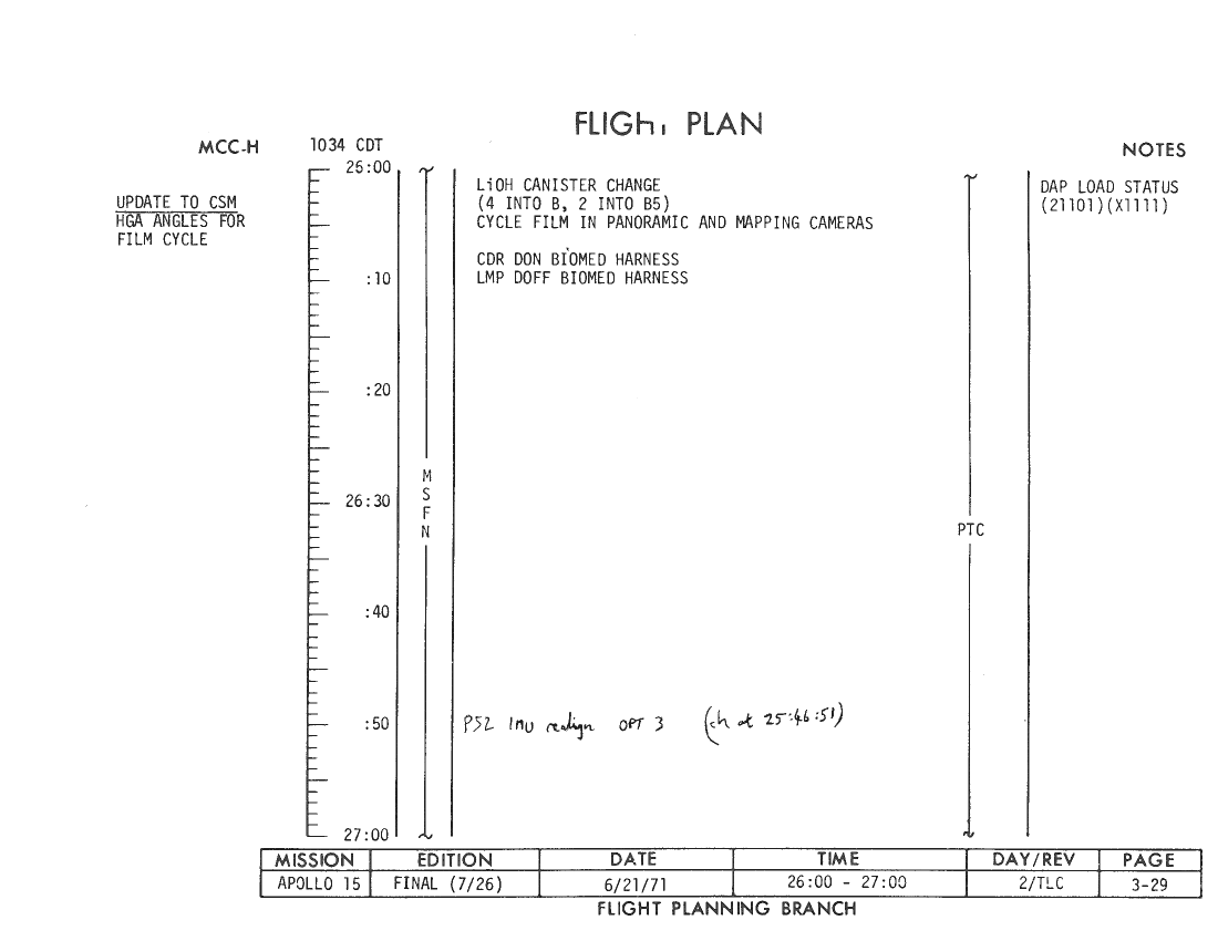 025:46:51 Allen: Rog. Okay. [Pause.] Okay. We're going to start at 25:05, and we've already deleted the charge-Bat-A line. Then moving on to 26:50, add P52 IMU realign, option 3. [Pause.] Moving to 27...