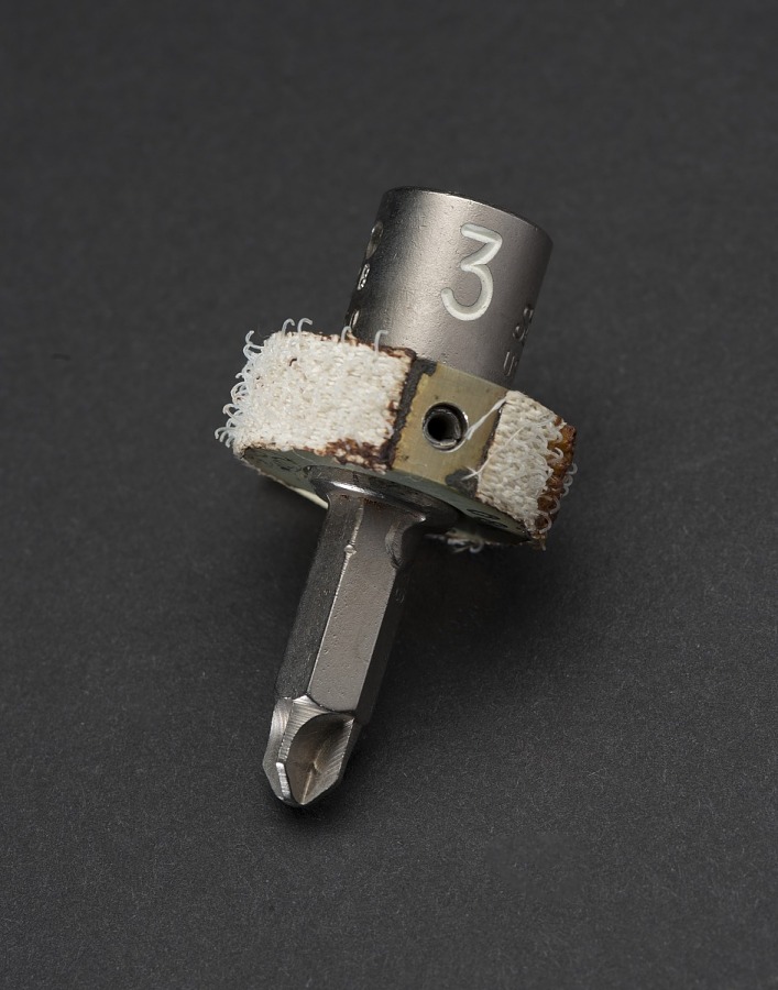 This is Apollo Control at 61 hours, 41 minutes. That in-flight repair of the chlorination port on the water tank was accomplished with 2 tools in the onboard toolkit. Tool 3 that you heard reference to is a hexagonal Allen wrench. Tool W is a ratchet that fits on to provide leverage for the wrench.