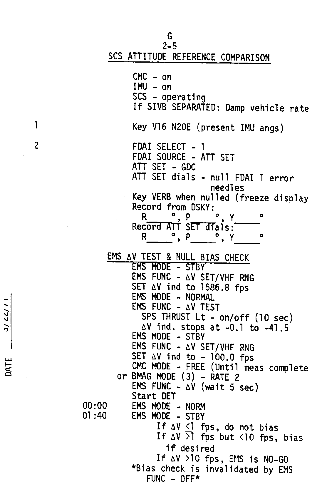 The Contingency Checklist carries a wide range of procedures which the crew can fall back on in an emergency situation. Some of these seem to be based on experience gained during Apollo 13 when the LM had to be powered up in a hurry and used as a lifeboat. A few examples of procedures covered are; a 30-minute activation of the LM, use of the AGS (Abort Guidance System) to set up a PTC, powering the CSM from the LM.