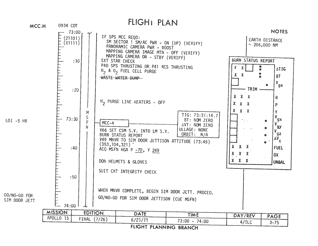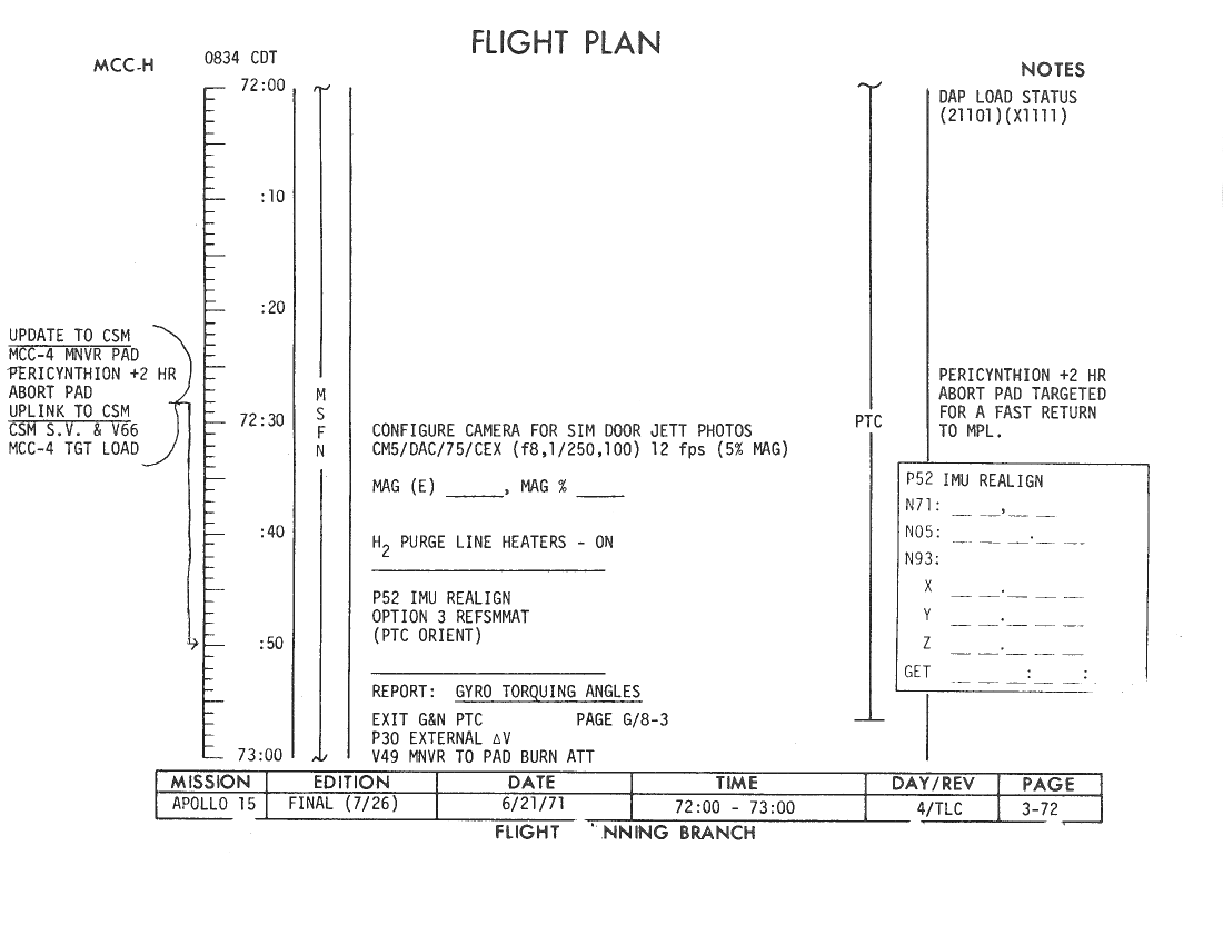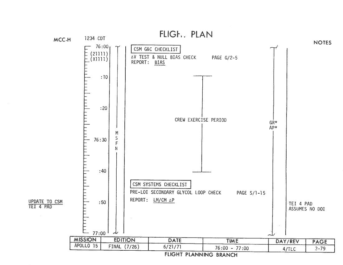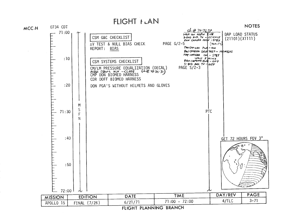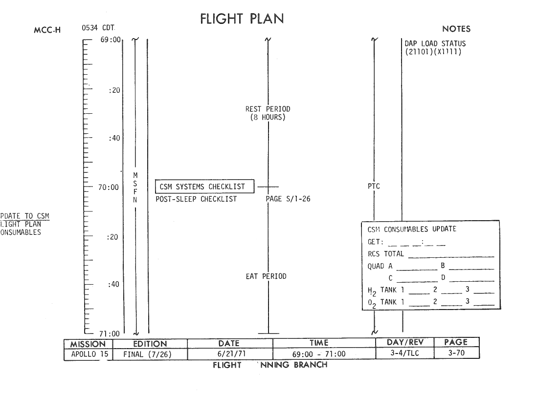 070:31:54 Parker: ...drag out your Flight Plan. [Long pause.]
