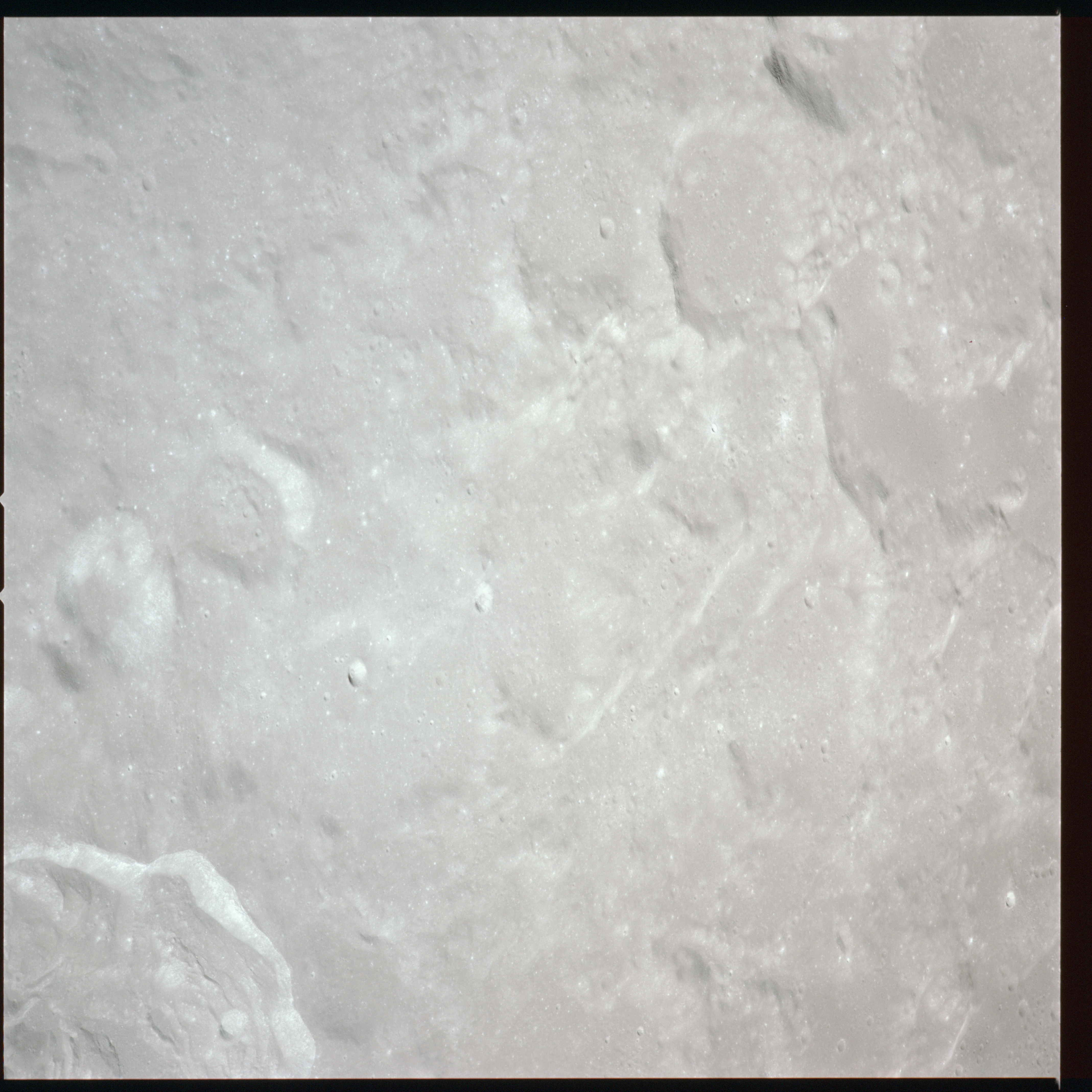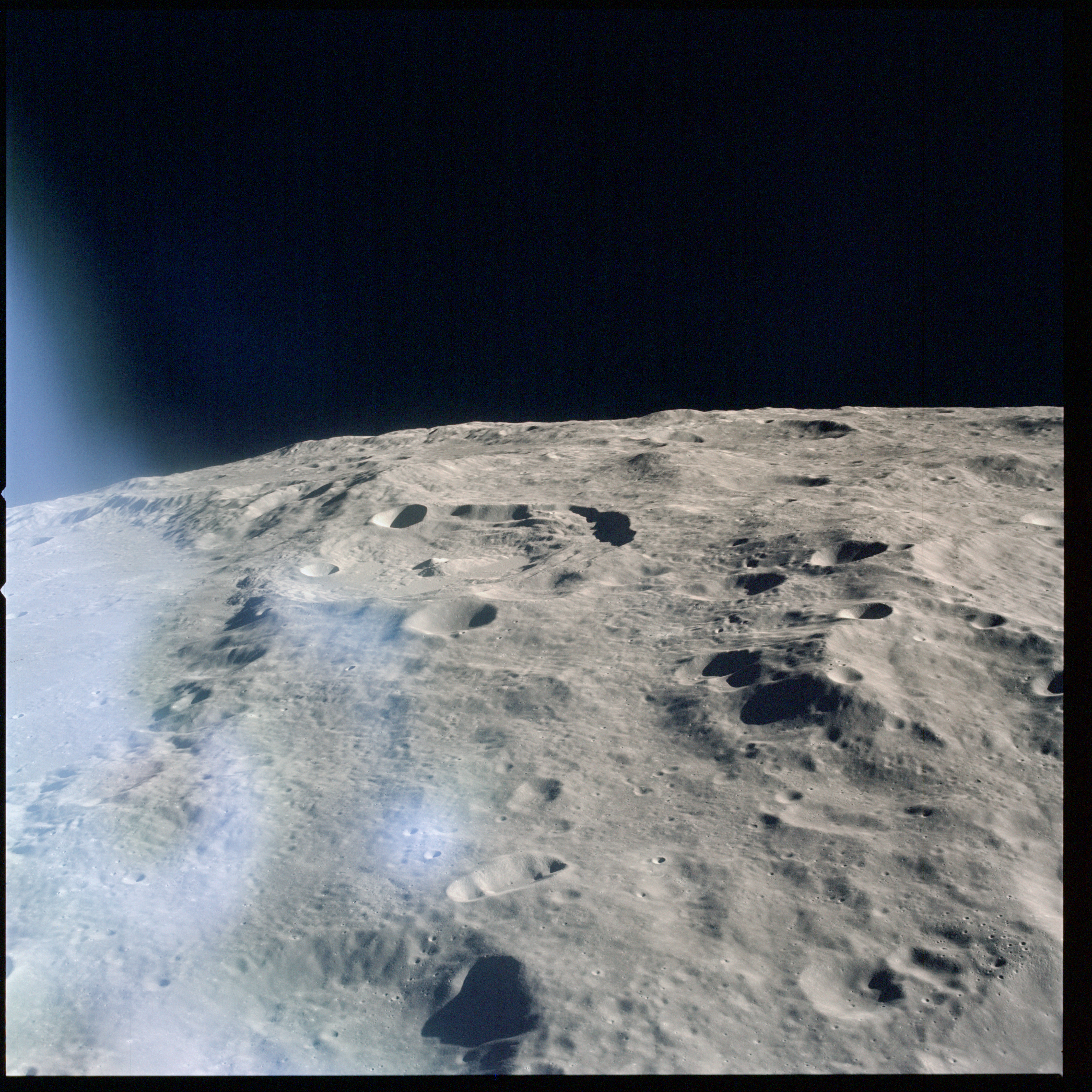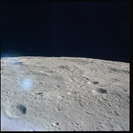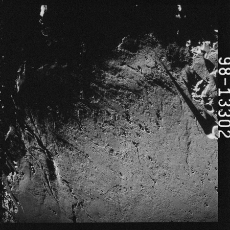 Relief, especially craters and hills, appears jagged and extreme, suggesting that excessive study of the terminator from Earth-based telescopes is responsible for the mistaken, pre-Apollo notion that the Moon would be a very rough place to explore.