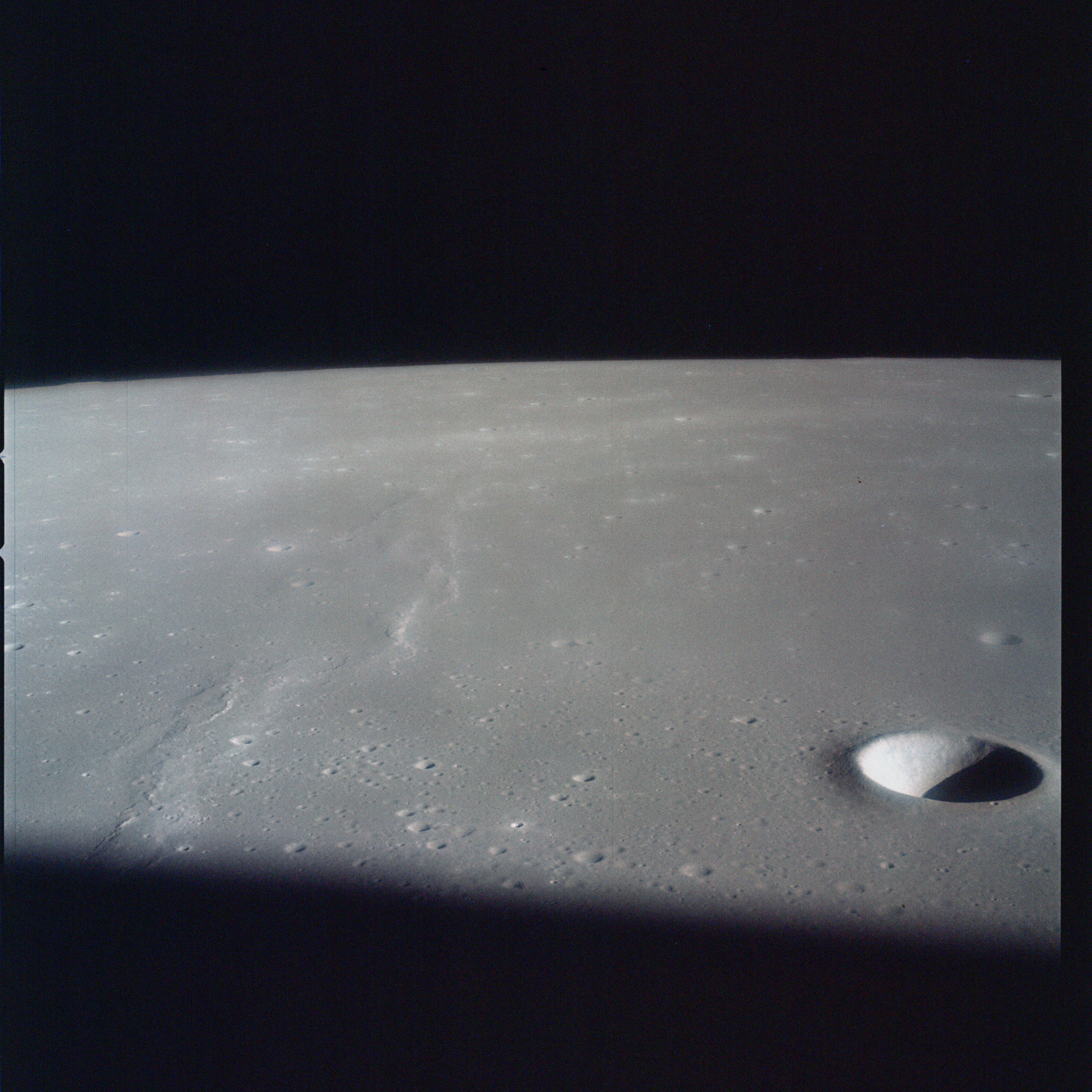 085:39:05 Irwin: And, Karl, speaking of shadows, there seems to be enough light being reflected off the sides of the mountains around to supply some light down on the landing site. And the rille is quite distinctive as we pass right over it.