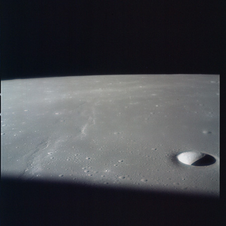 Apollo 15 is nearing the Hadley landing site within the Apennine range. These mountains are experiencing lunar dawn.