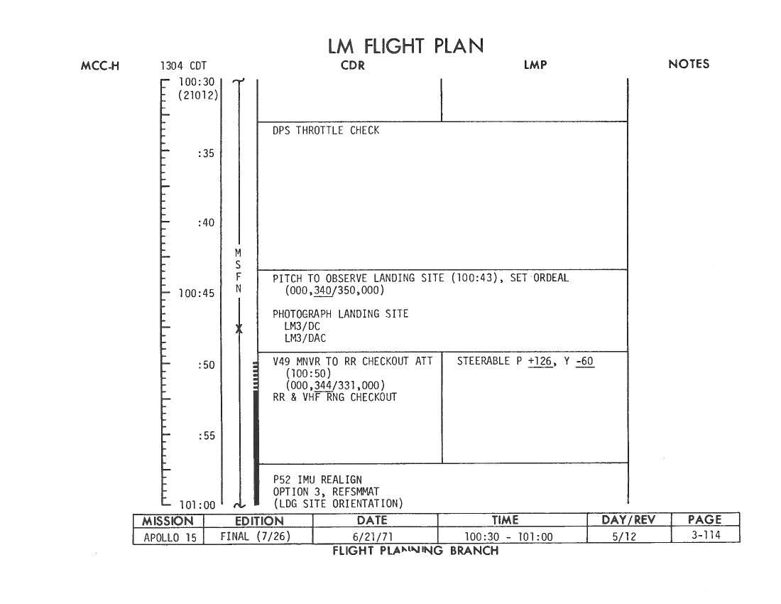 100:52:58 Scott: Stand by. Let's run the LMP check here. [Pause.]