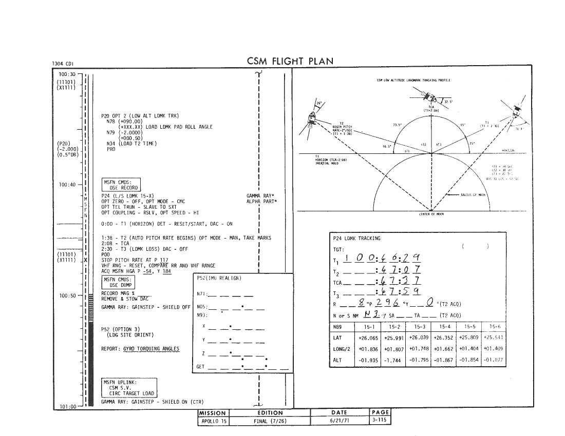 That was Al Worden confirming to Dave Scott and Jim Irwin aboard Falcon that they have 4 good looking landing gears. The principal effect of the late undocking is, as I mentioned, going to be to delete the possibility of doing the program 24 landmark tracking on this revolution. We do have another opportunity on the next revolution to do that landmark tracking, although, we would prefer to have two revolutions of the tracking prior to the powered descent, we can get by with a single revolution of the landmark tracking.