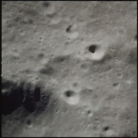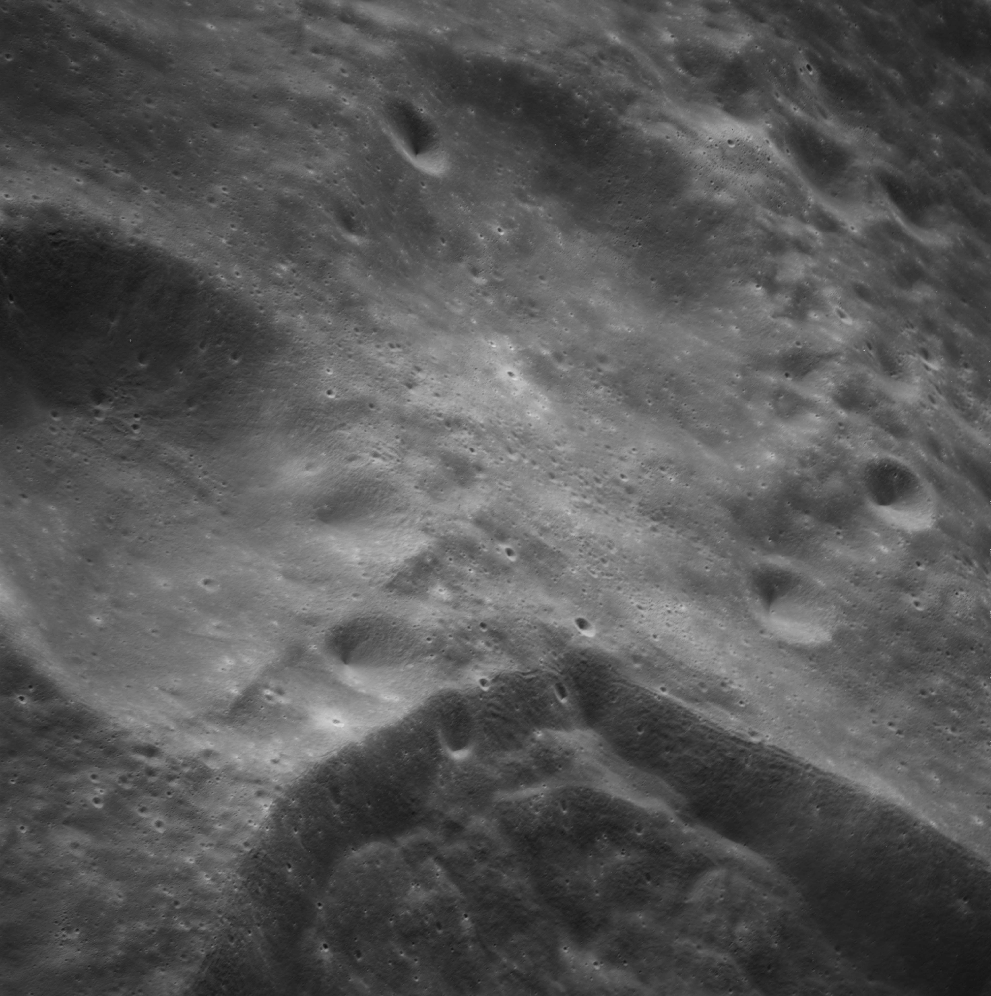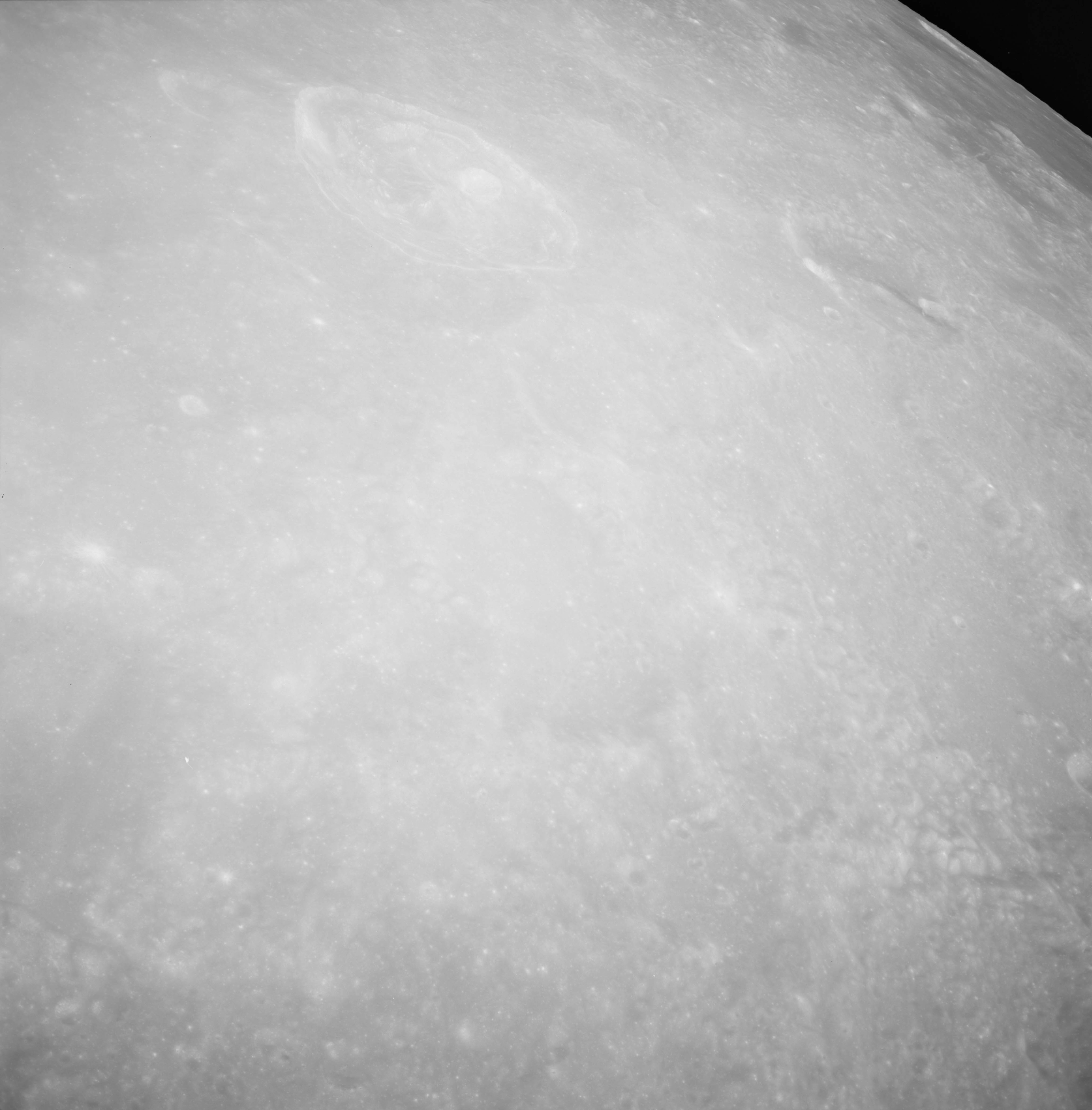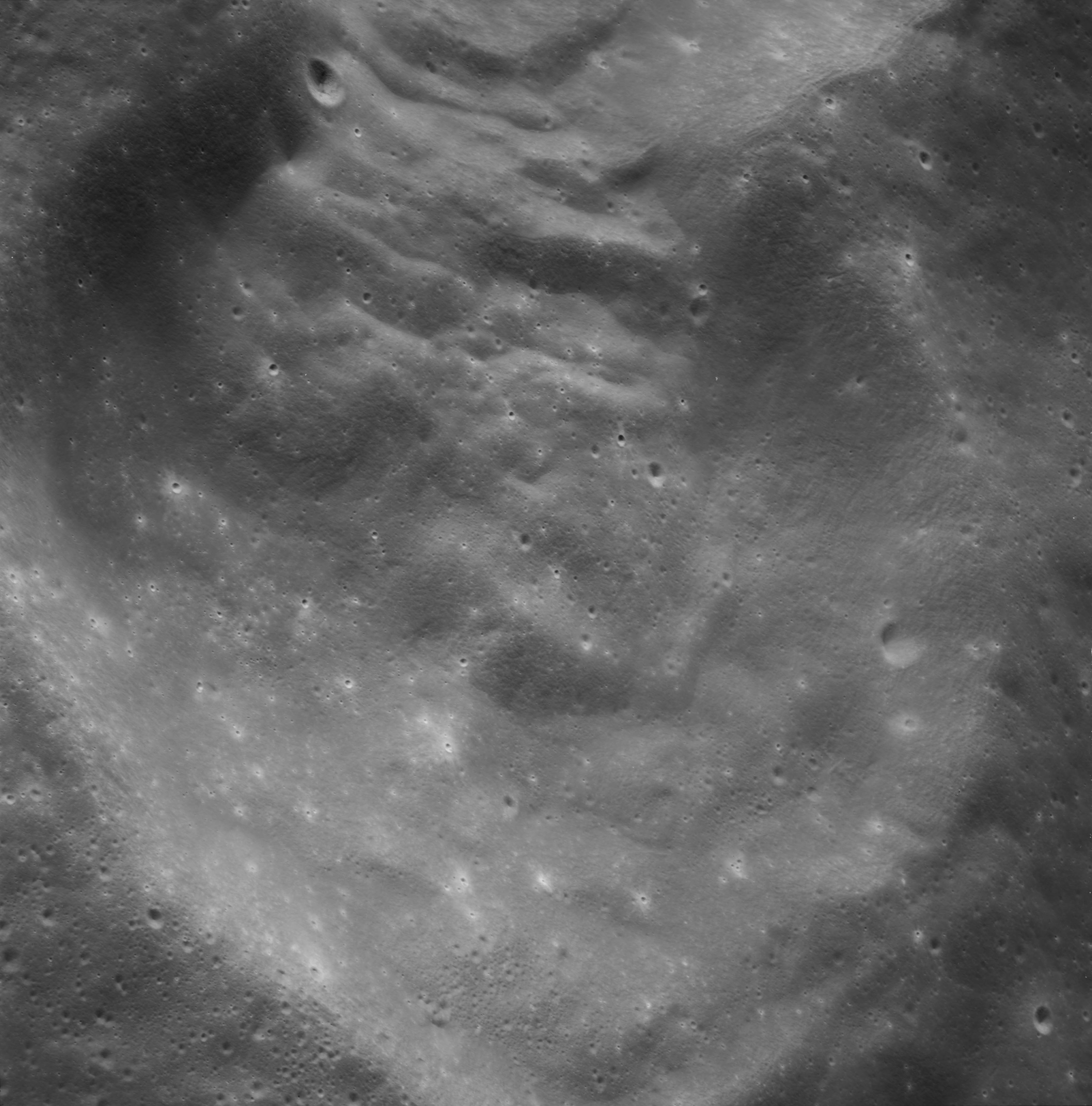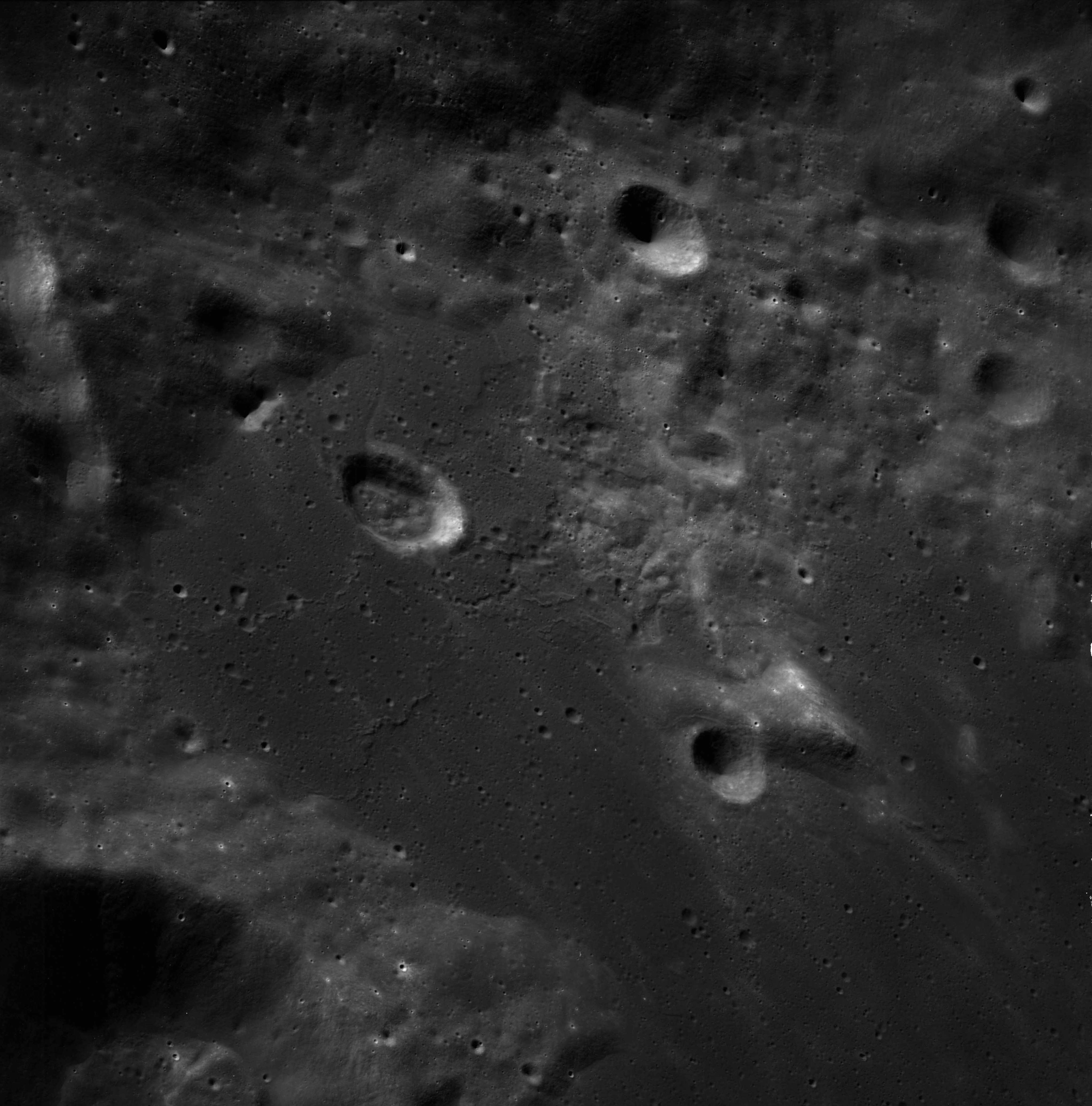 Of particular note in the last four images is the radial "sculpture"; evidence of the outrushing sheet of ejecta from the impact which carved long furrows in the ground. These are smaller scale examples of similar landforms seen around the Imbrium basin on the front side, particularly around Mare Vaporum, which are traces of the tremendous effect the formation of the Imbrium Basin had on the Moon's surface. The correct interpretation of the origin of sculpture would prove to be crucial to understanding the history of the Moon's features. For vertical context, this is a more recent image from the Lunar Reconnaissance Orbiter.