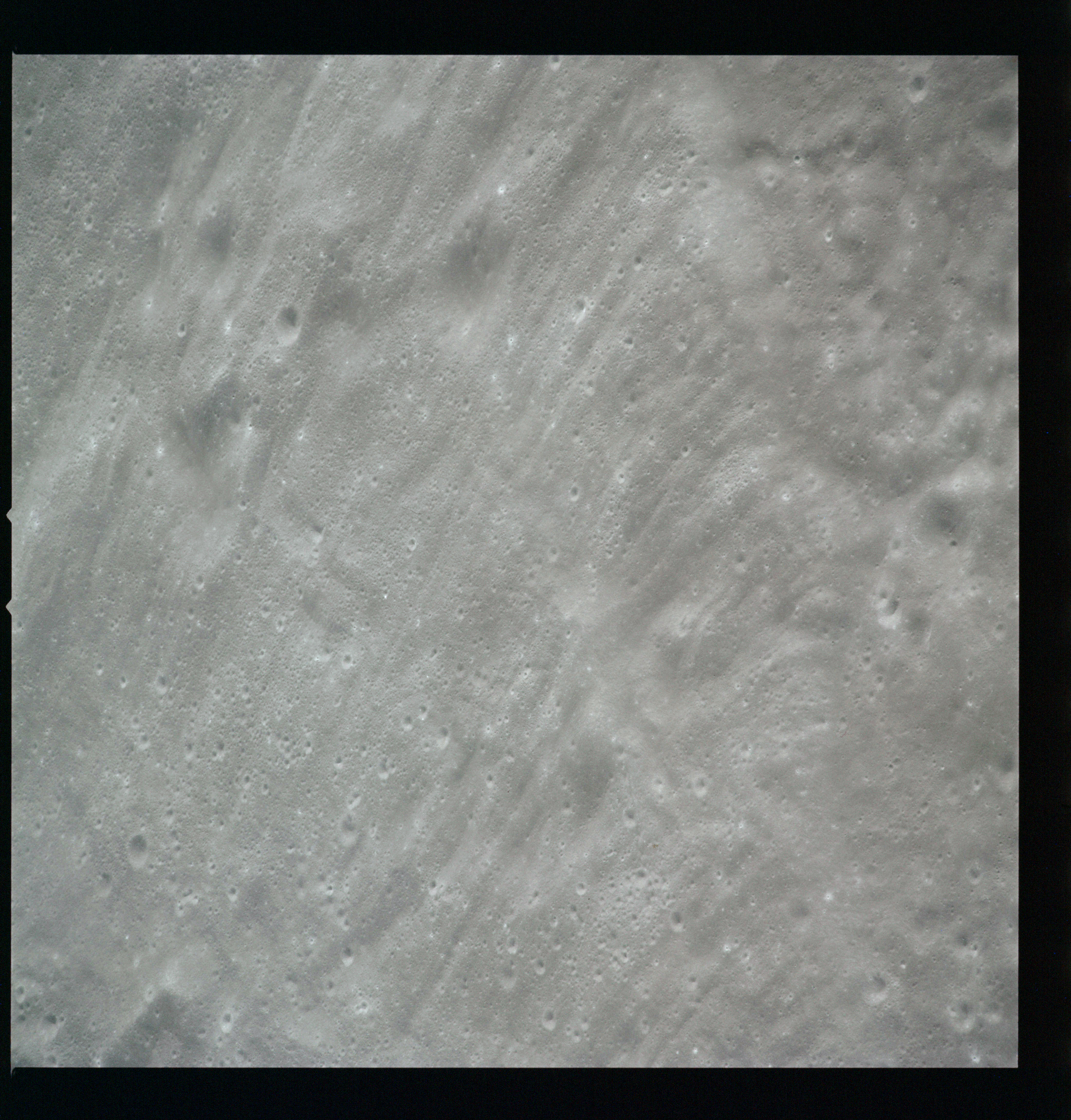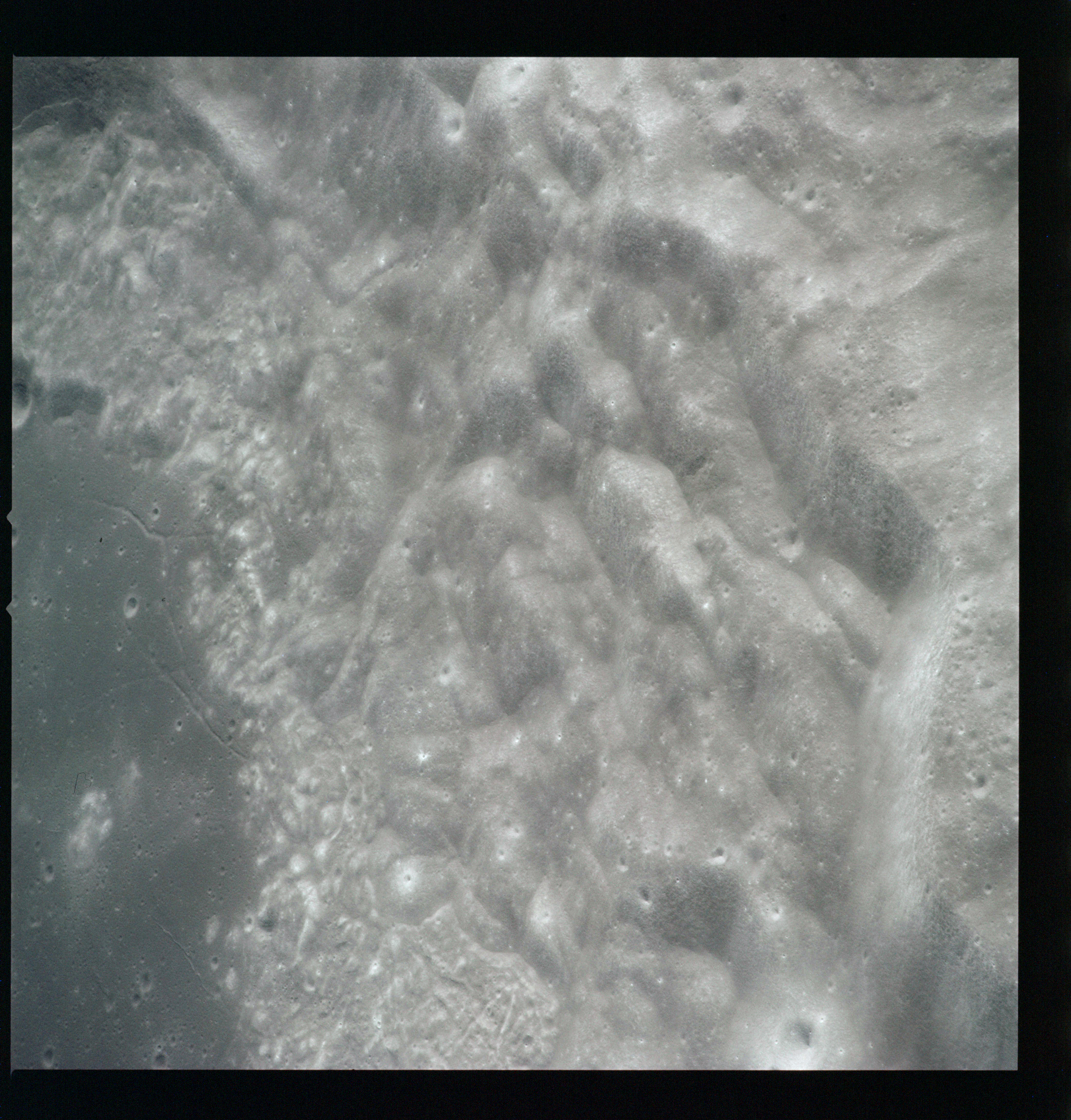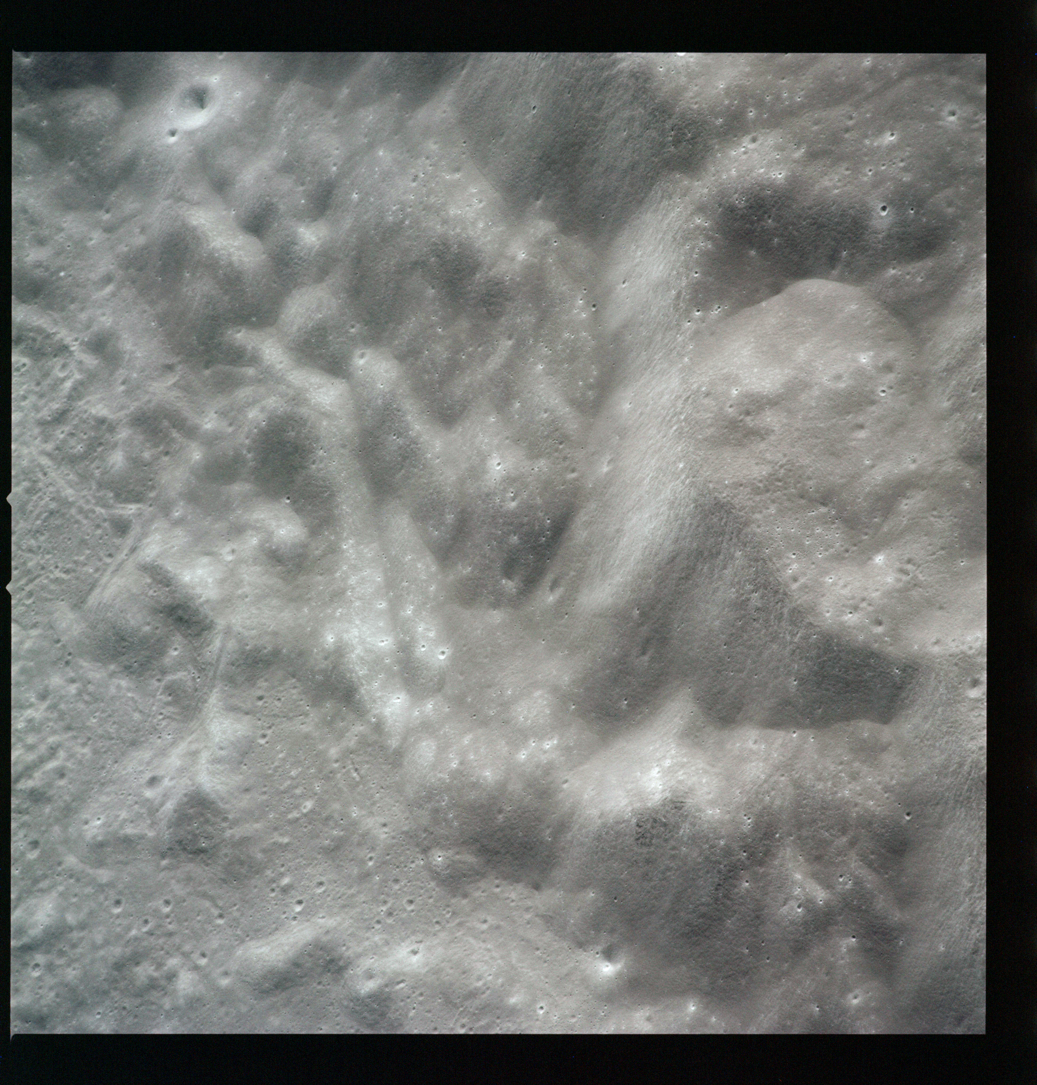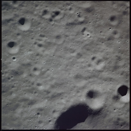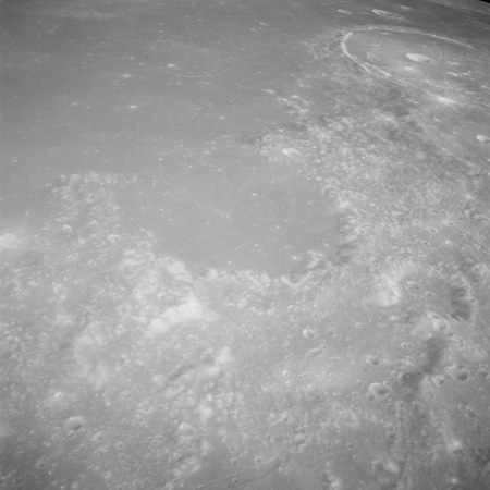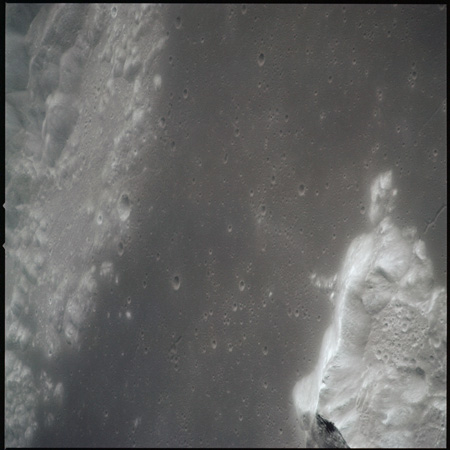 Compensation for the motion of the spacecraft is provided by the V over H sensor which detects the rate at which surface detail moves across the camera's field of view, generating a signal that controls the compensating movement of the film. This allows the camera to achieve a resolution of better than 2 metres from the nominal orbital height of 110 km. On this, its first flight to the Moon, this sensor will not operate properly, degrading the quality of the imaging by introducing a small degree of smearing. The camera is used during 11 orbits and 1,529 usable photographs are obtained on the 2-km roll of Kodak EK-3414 film contained in a cassette of 25-kilograms mass which Al will retrieve later in the mission. Journal Contributor Brian Lawrence has more to add on the camera's pedigree.