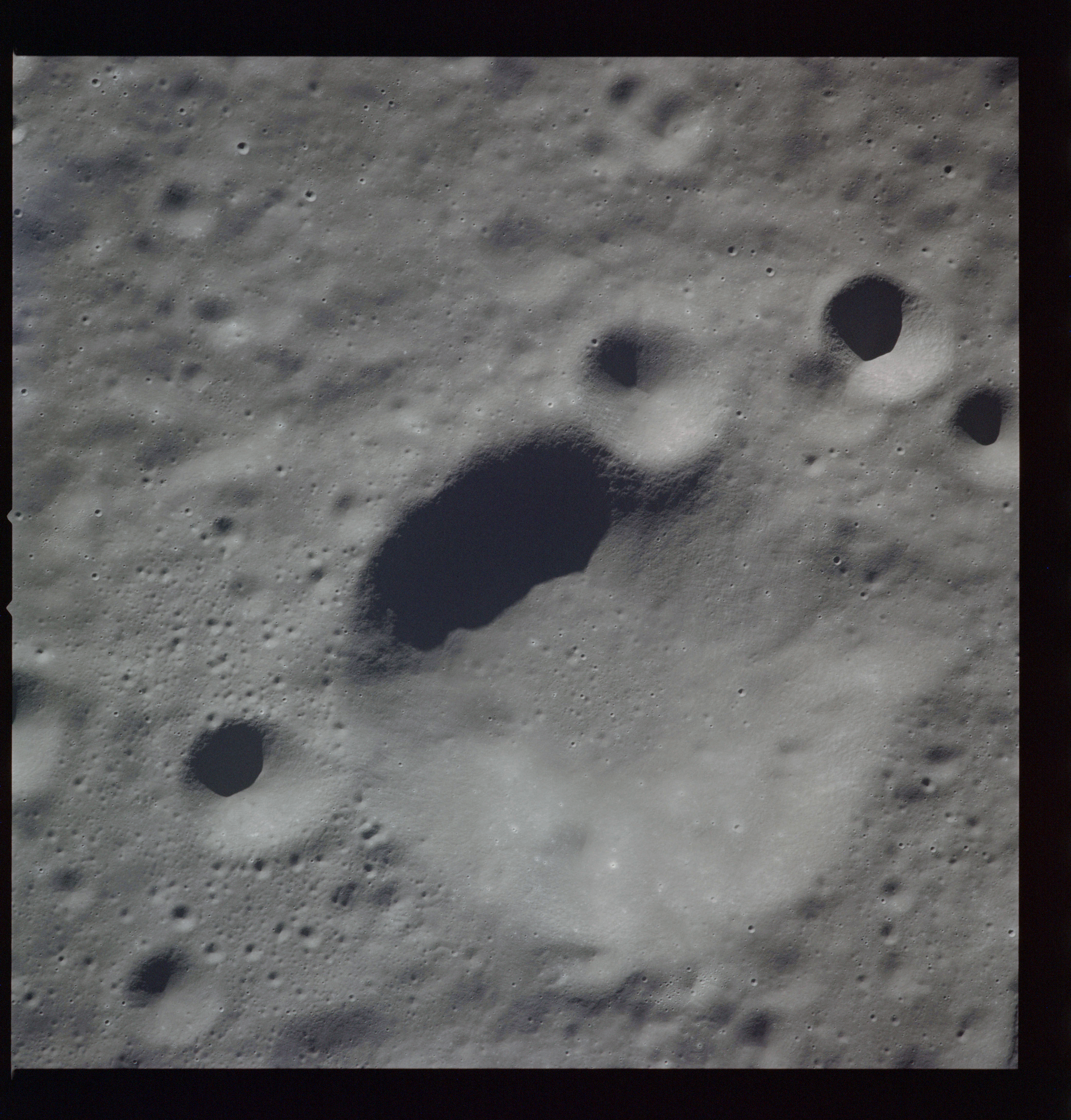 AS15-97-13145 - Floor of Crater Gagarin. Crater Gagarin G is at bottom of frame and the east rim of Crater Kosberg is at top of frame - Image by NASA/Johnson Space Center.