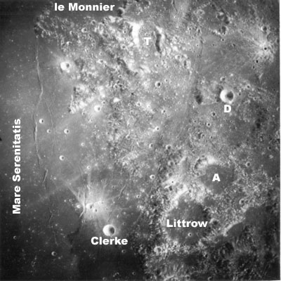 The next photo in Al's sequence has the camera aimed slightly north to a bright crater just outside the west rim of Gagarin.