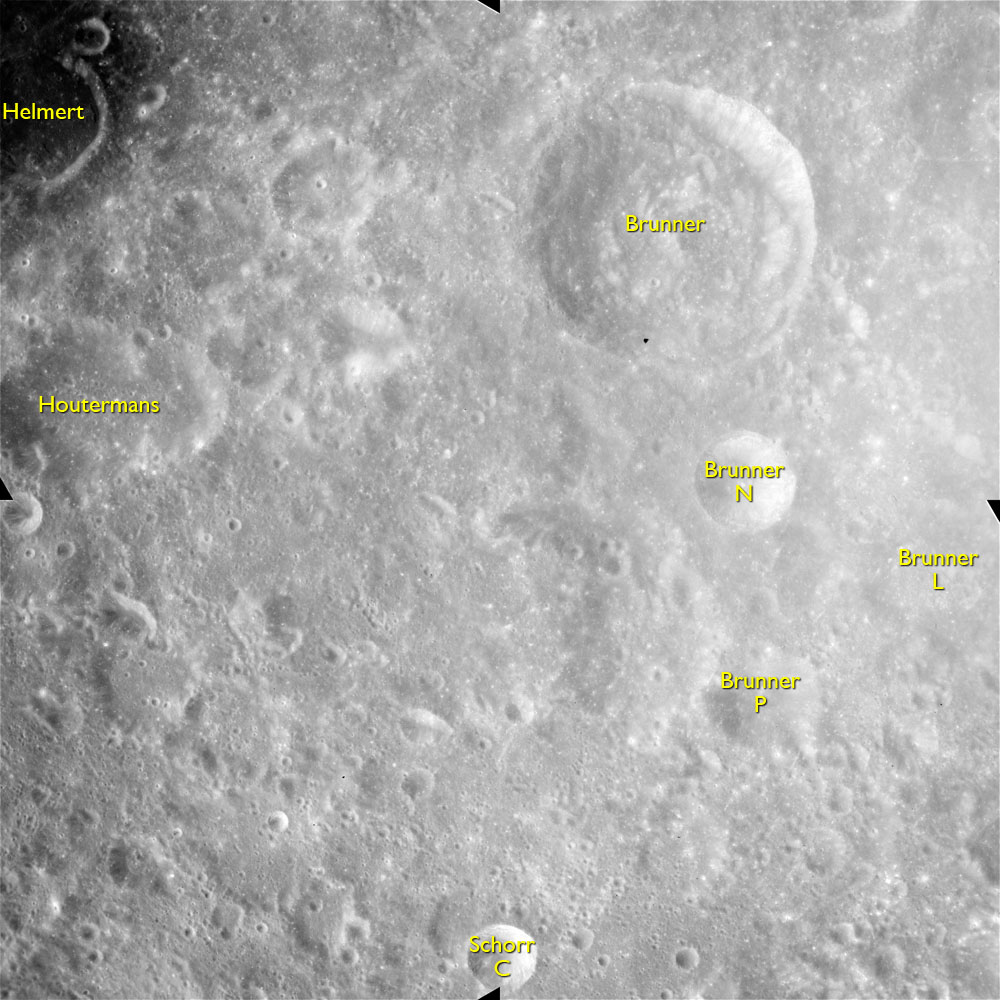 AS15-M-1745 - Metric Camera image of craters Brunner, Houtermans and Helmert. Image taken at about 163:16. (250 megapixel version), (labelled version) - Image by NASA/ASU.
