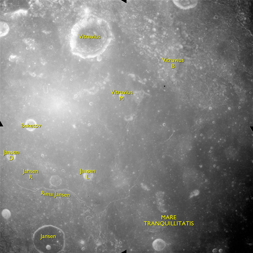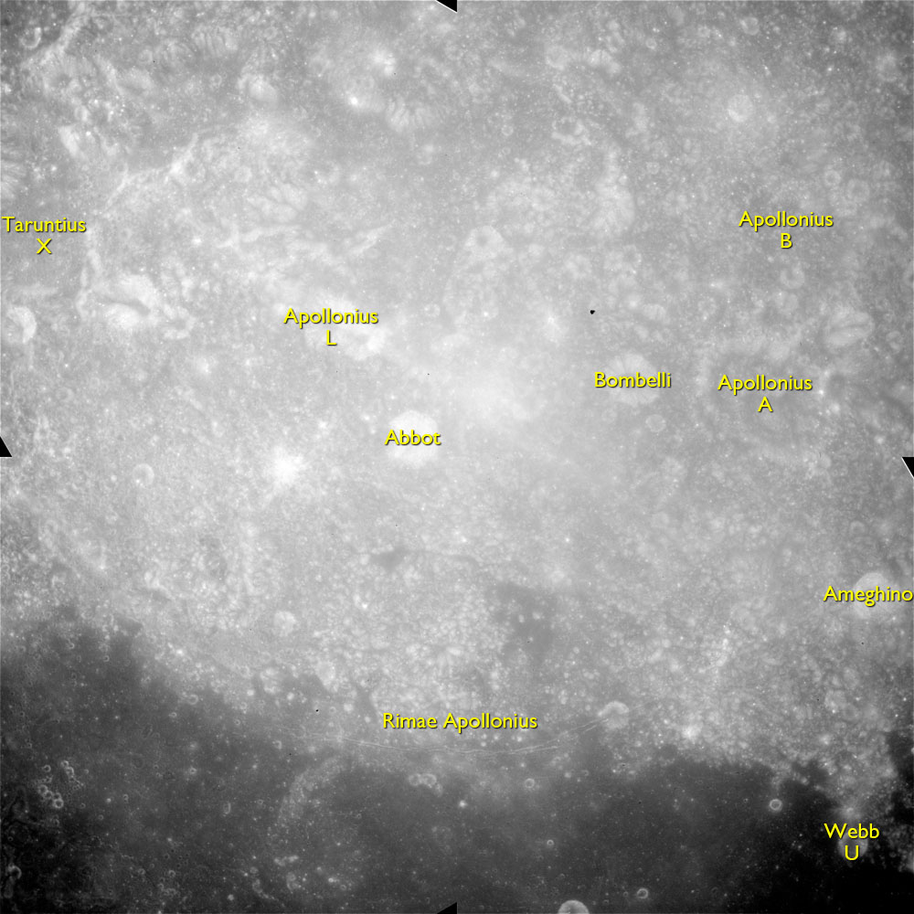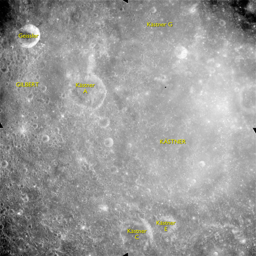 AS15-M-1725 - Metric Camera image of craters Hilberg E, G and Alden B. Image taken at about 163:08. (250 megapixel version), (labelled version) - Image by NASA/ASU.
