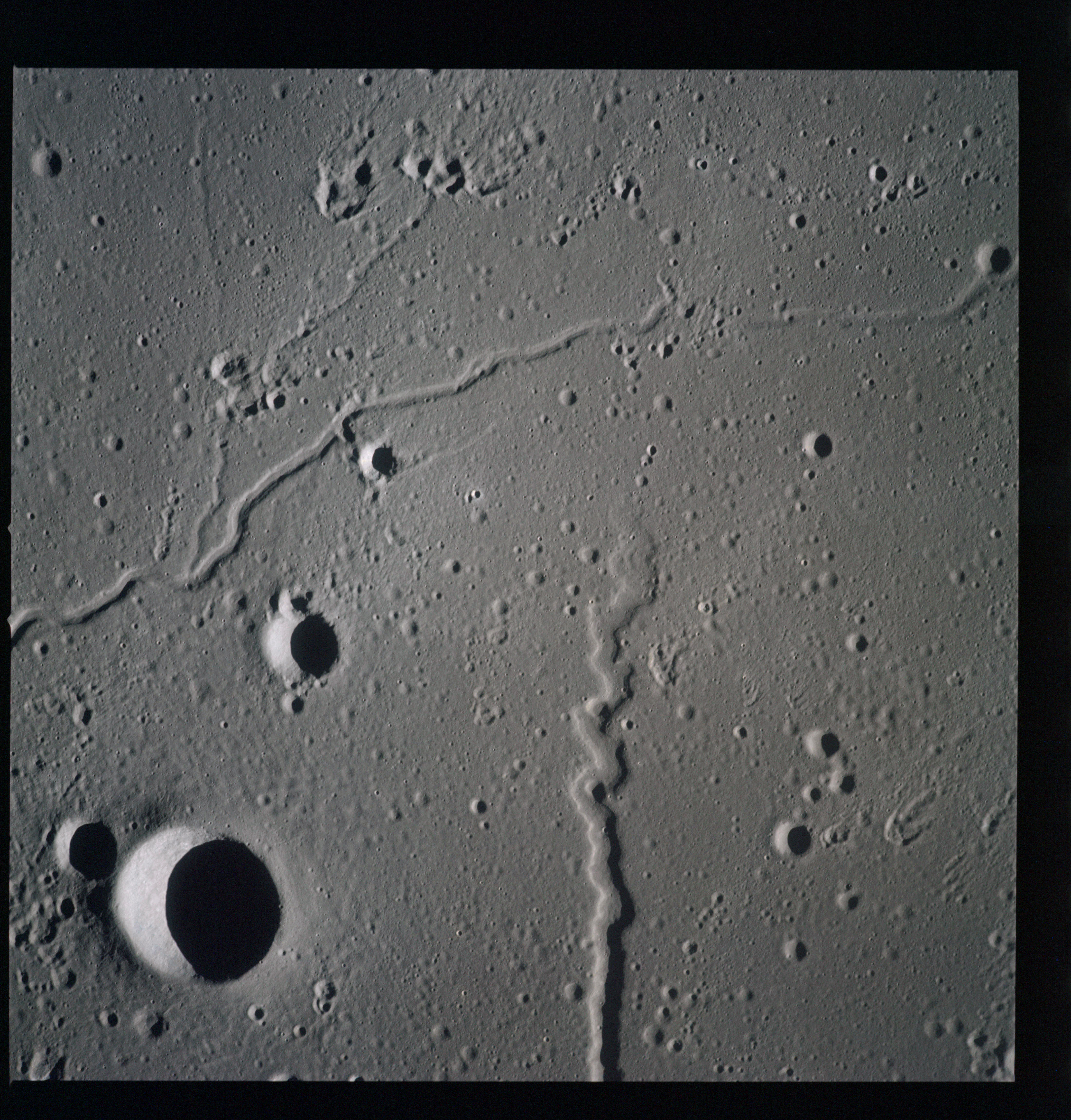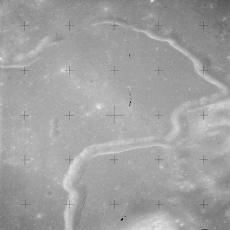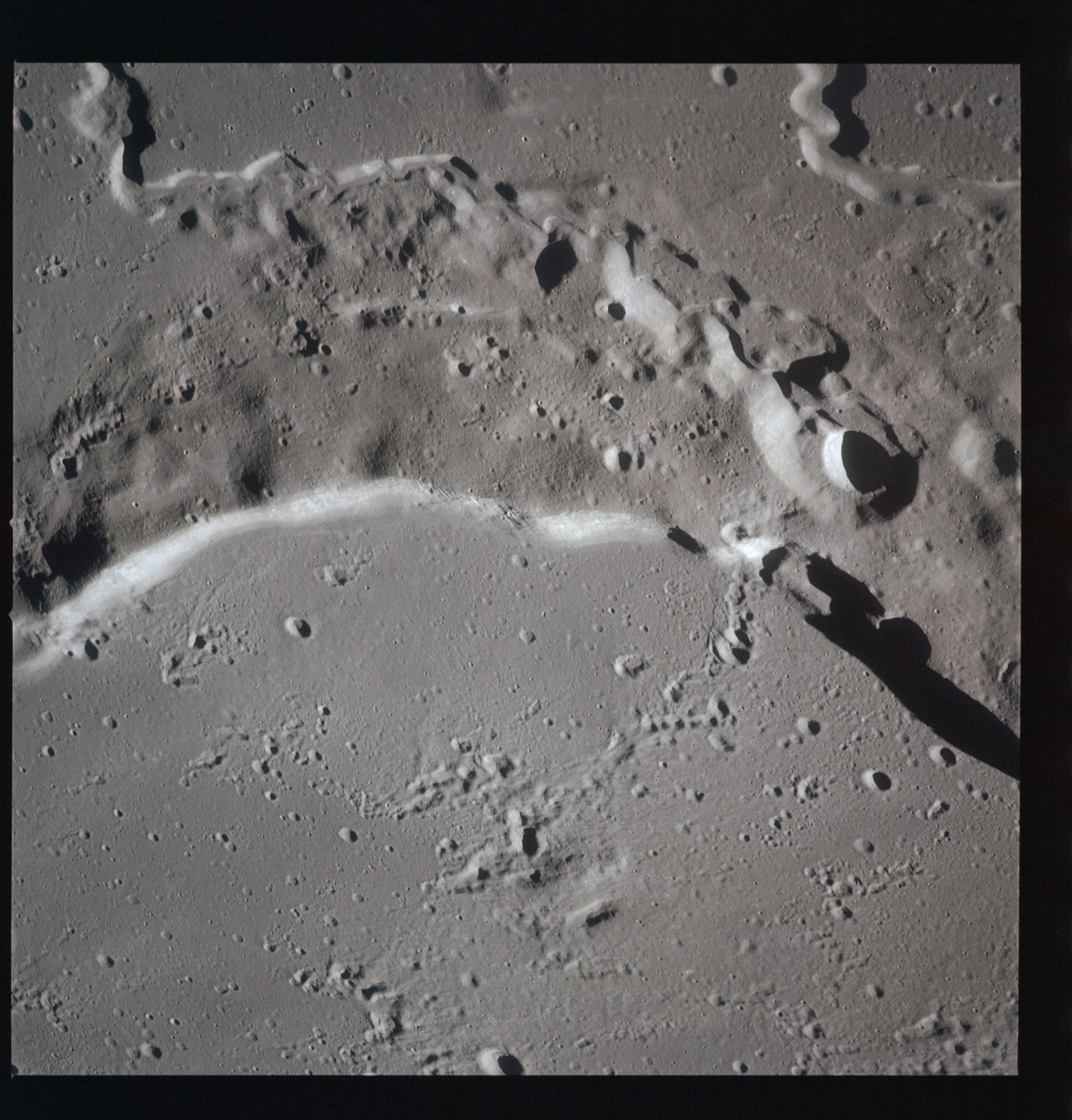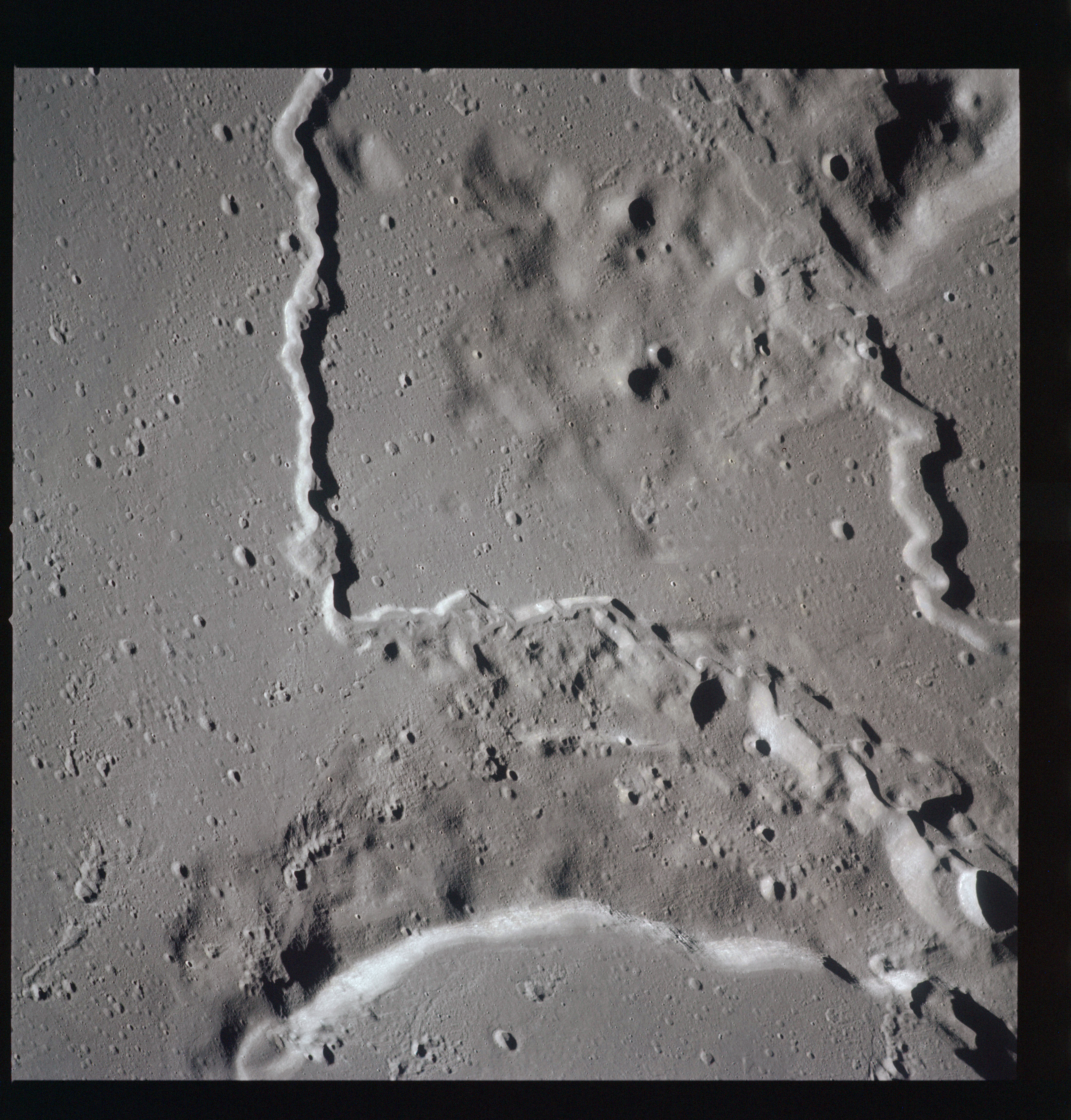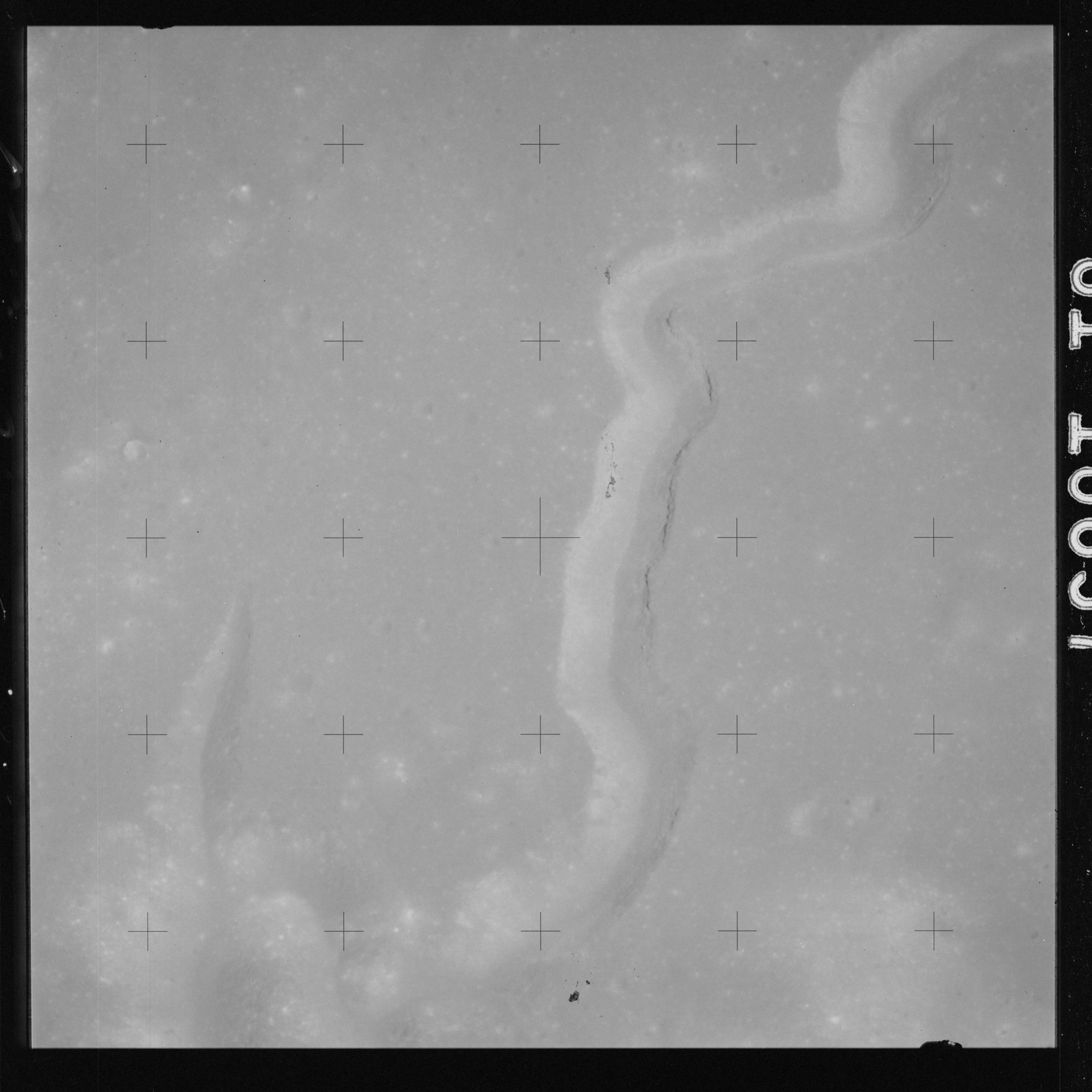A wider context of these features is shown in one of the frames, AS15-M-2195, taken by the Mapping Camera on the spacecraft's next orbit.