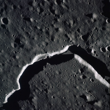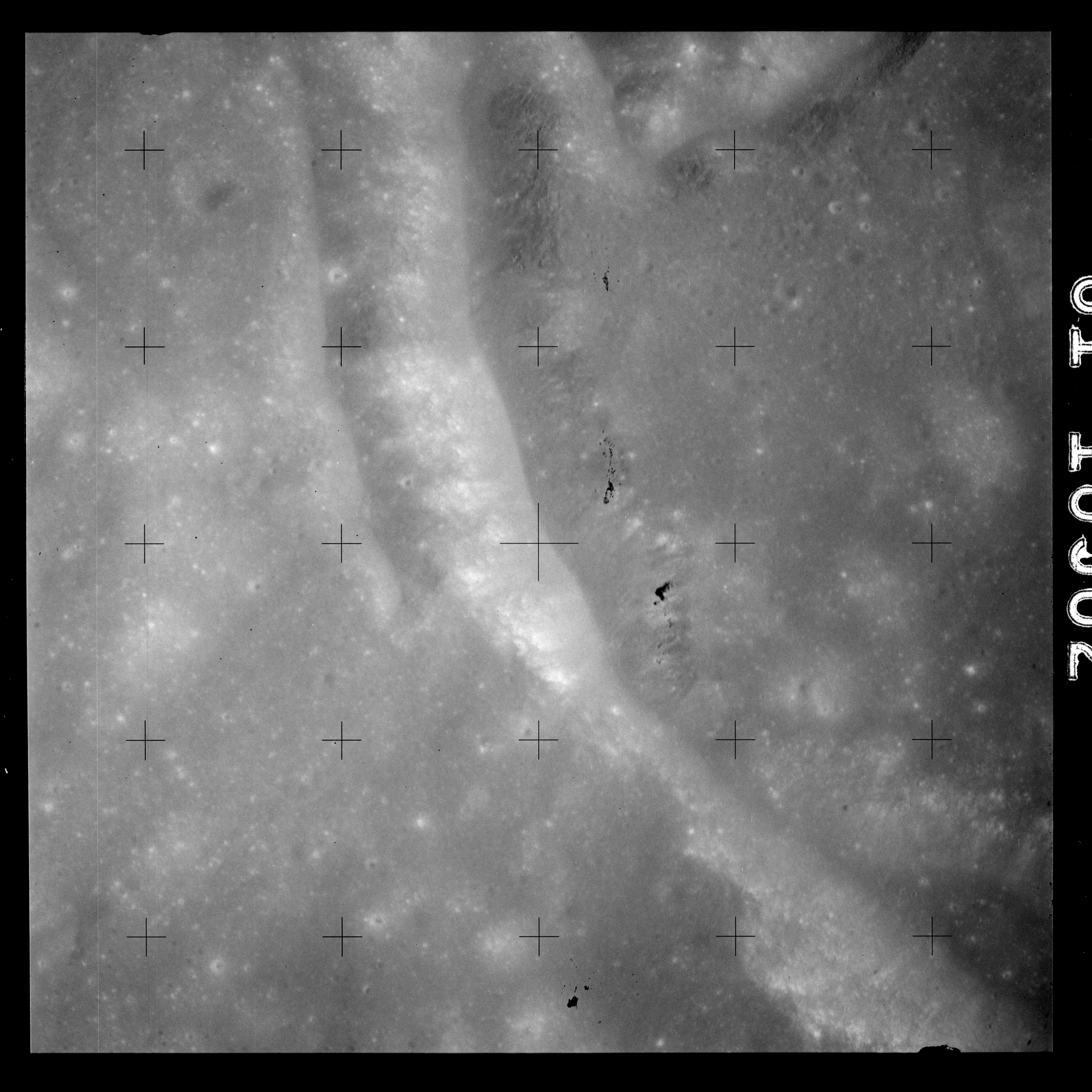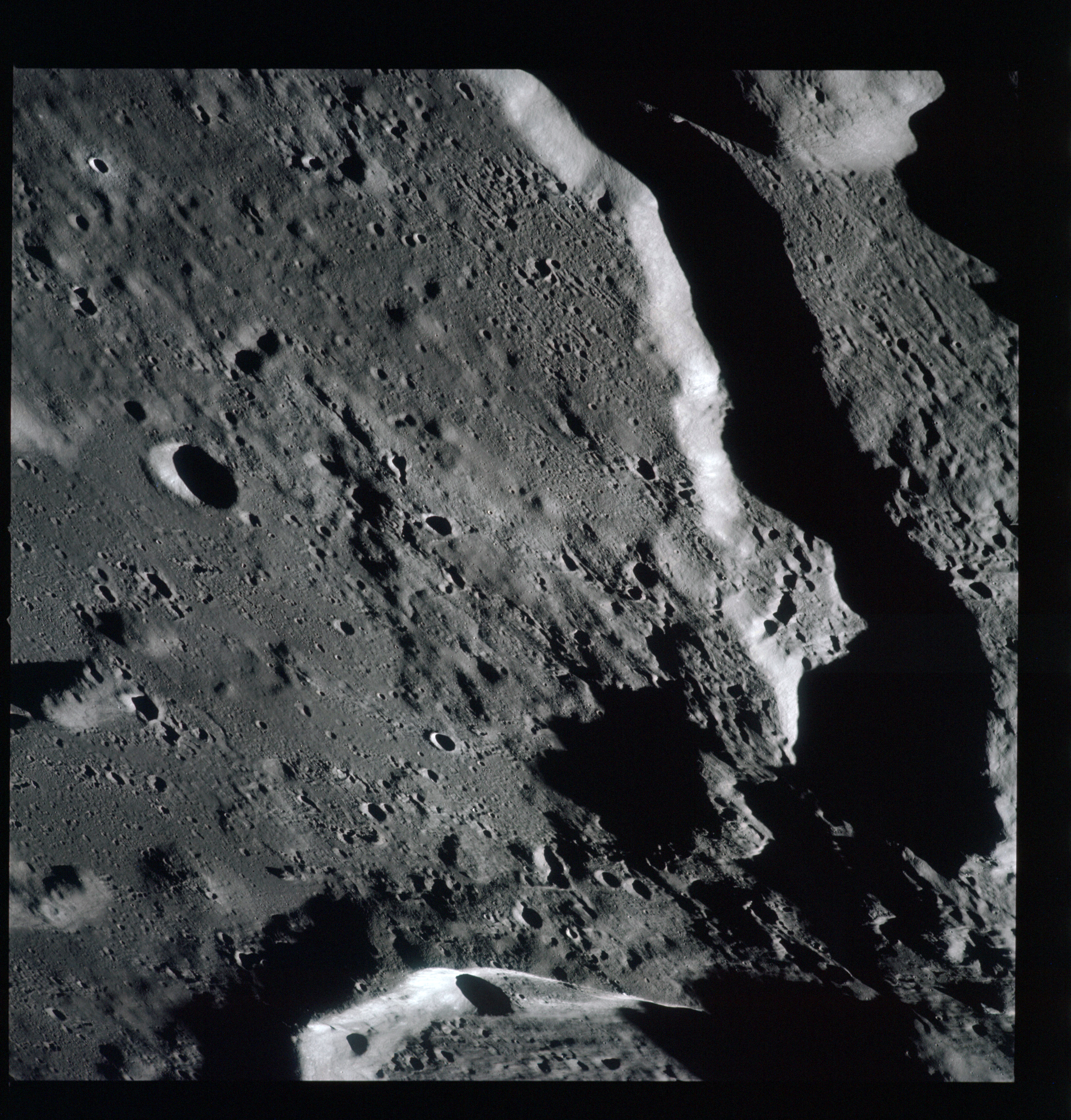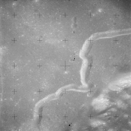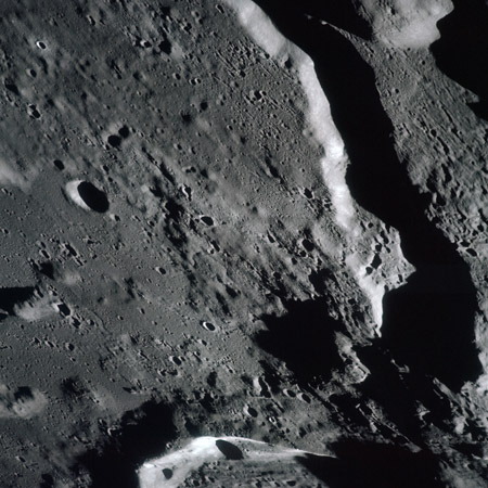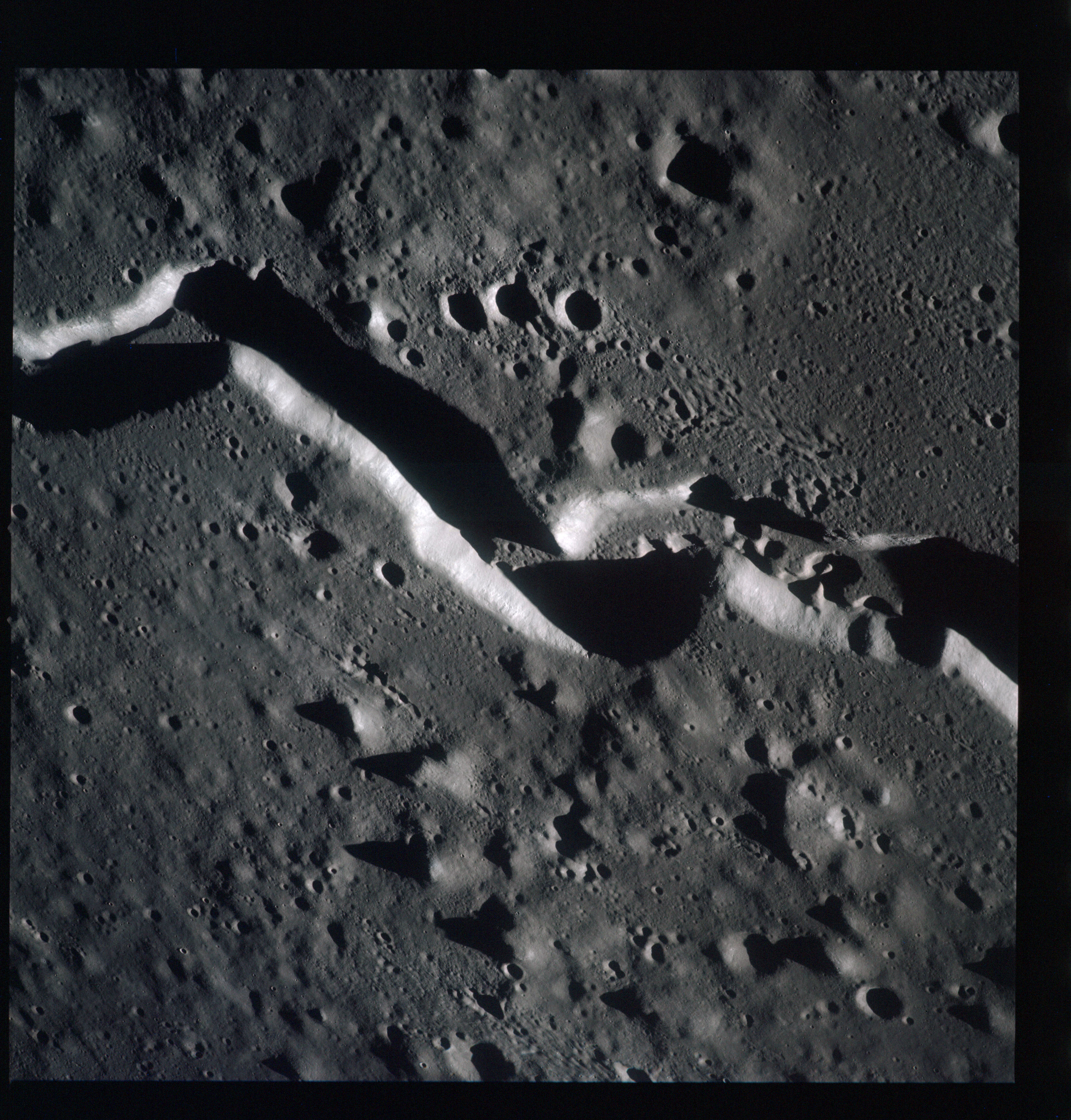 A wider context of these features is shown in one of the frames, AS15-M-2195, taken by the Mapping Camera on the spacecraft's next orbit.