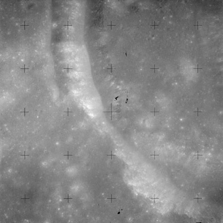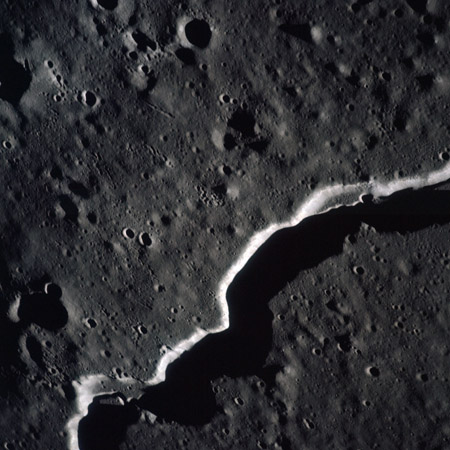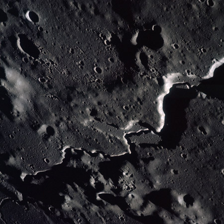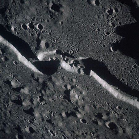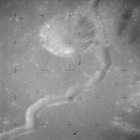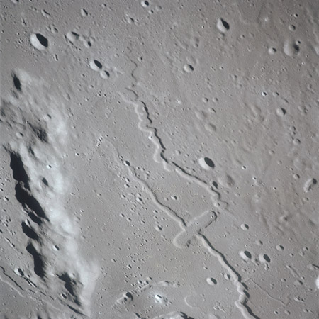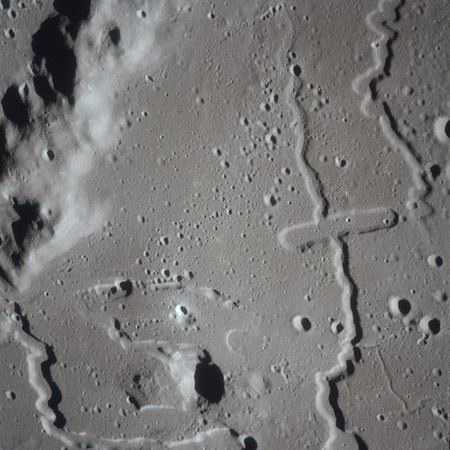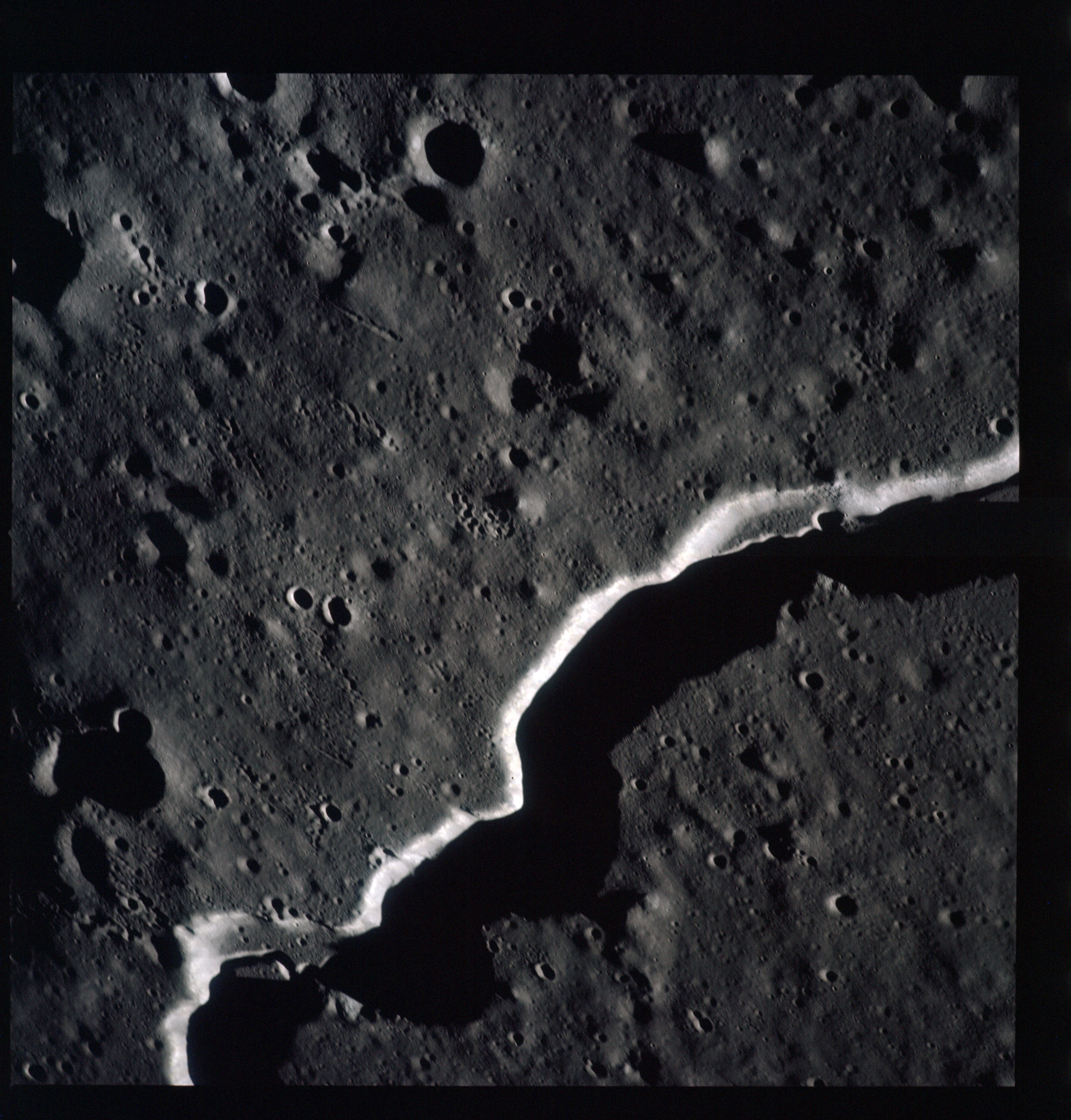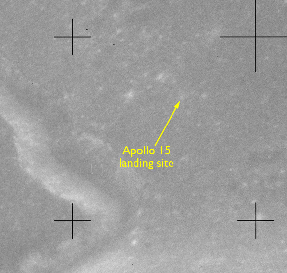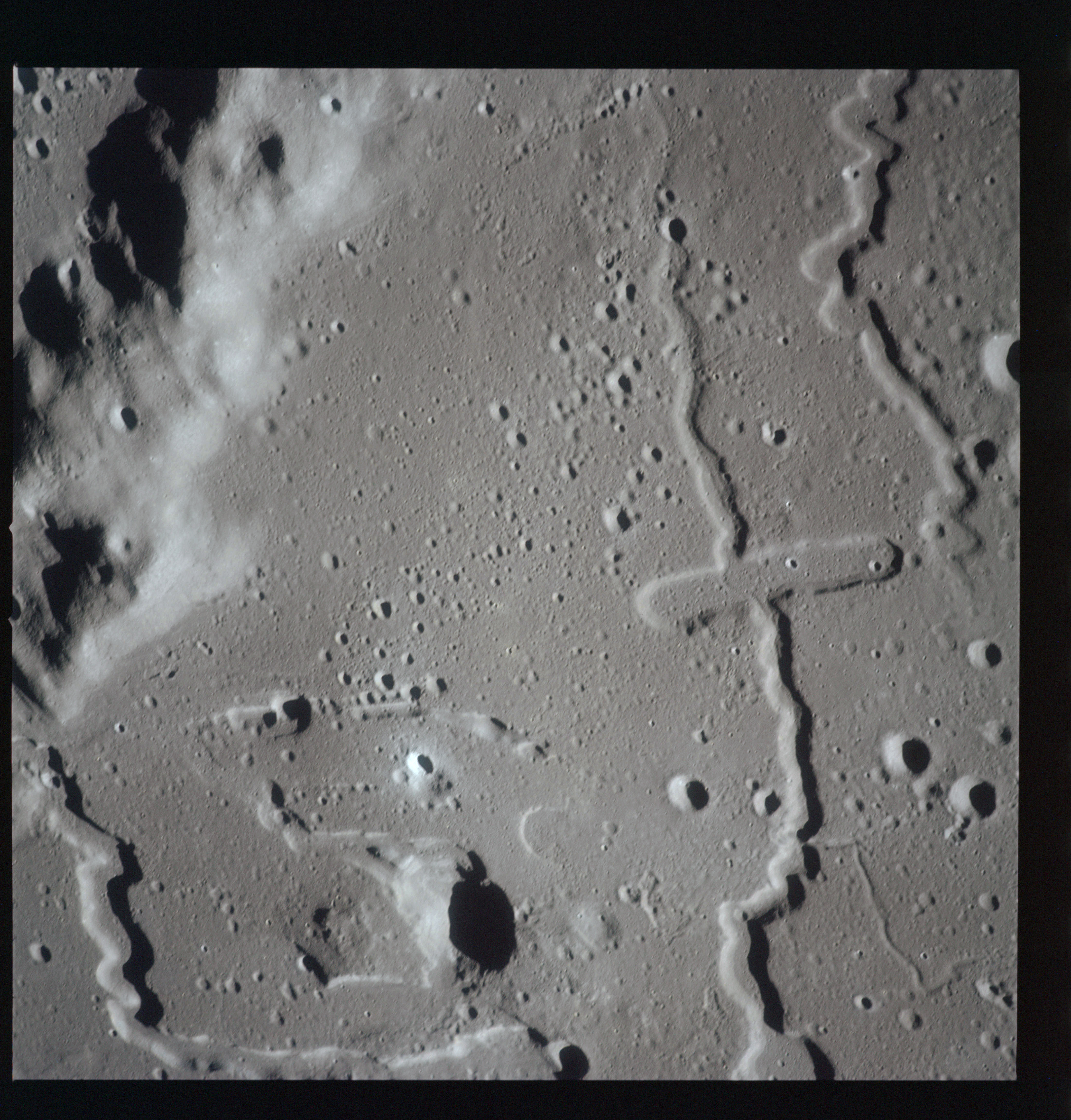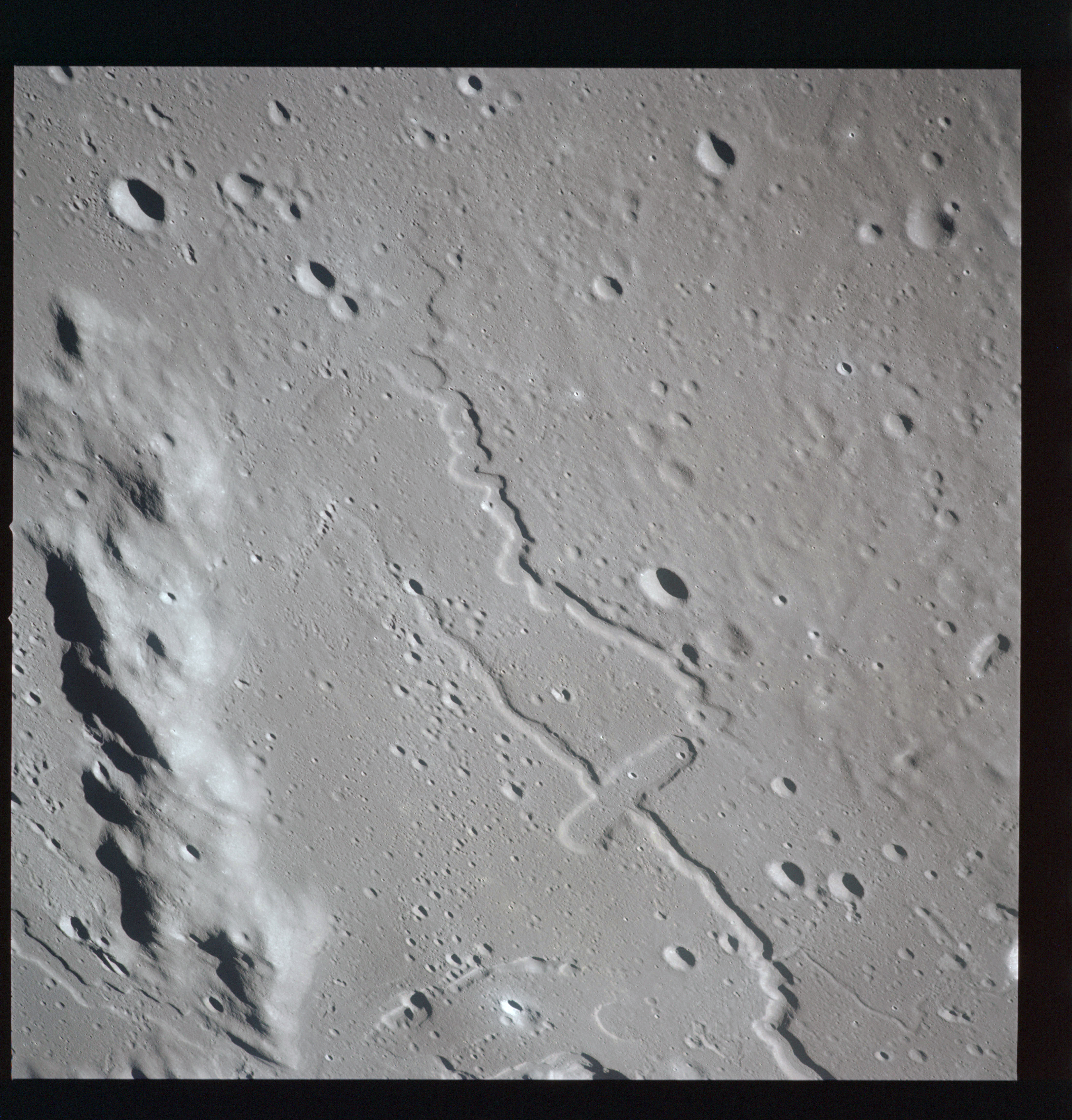 A wider context of these features is shown in one of the frames, AS15-M-2195, taken by the Mapping Camera on the spacecraft's next orbit.
