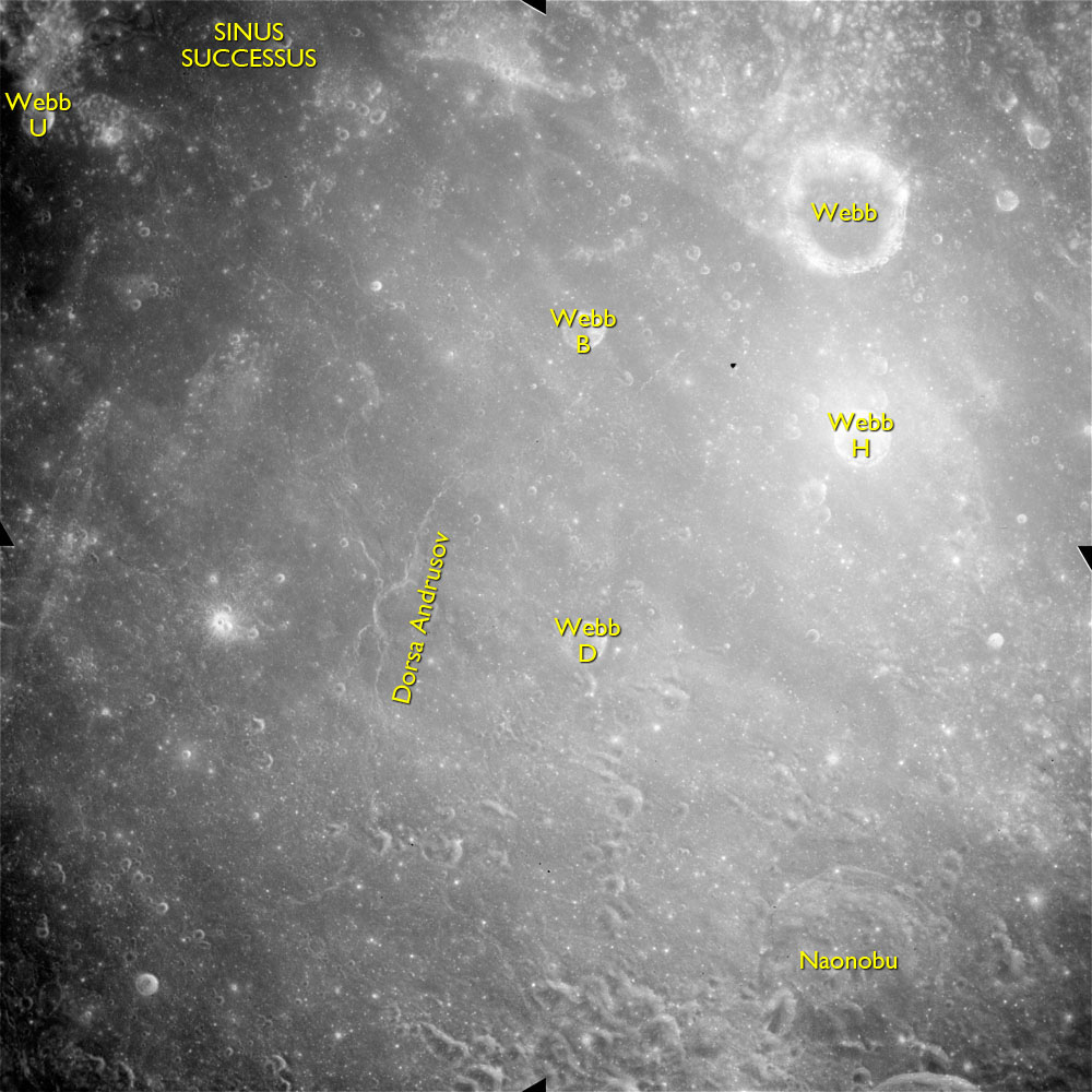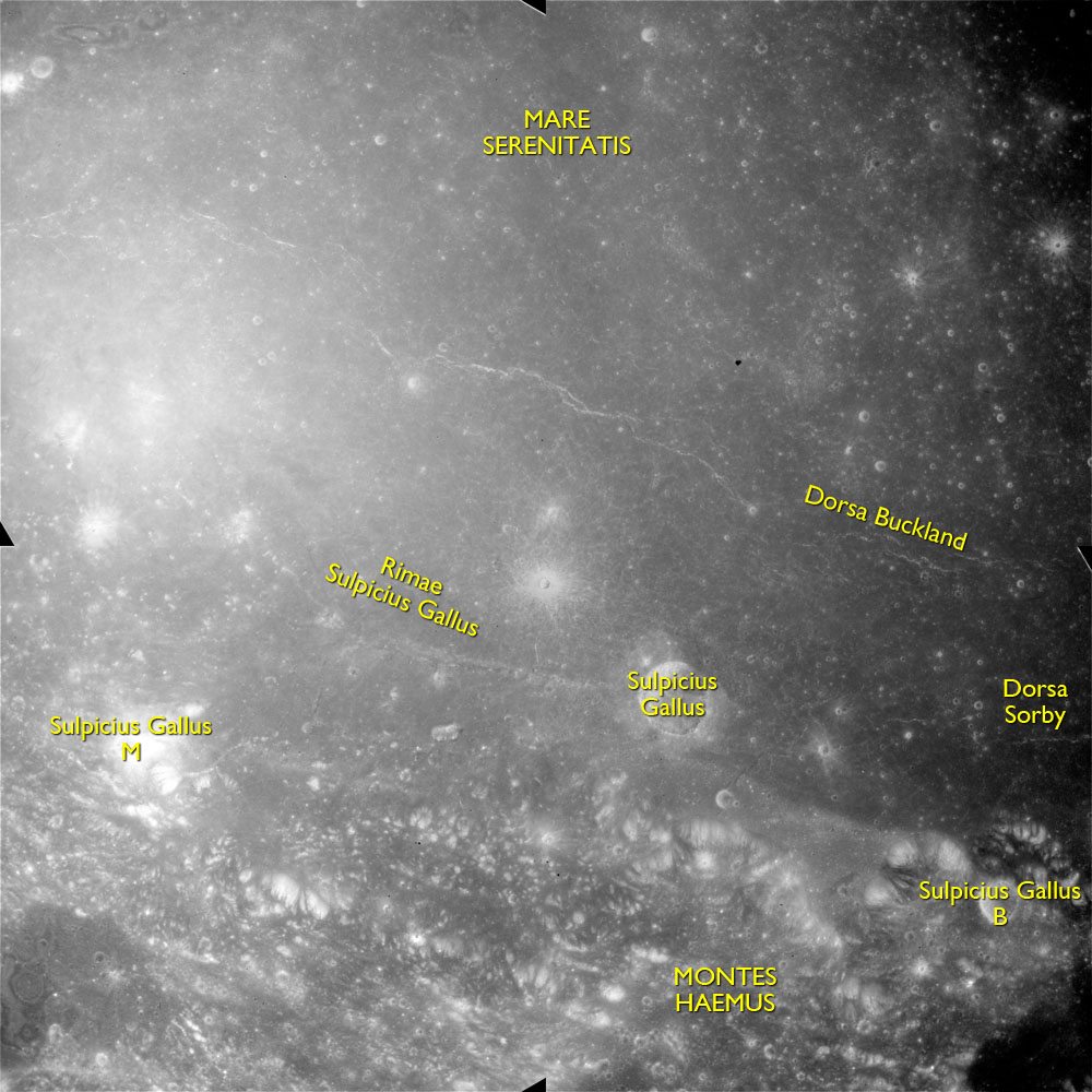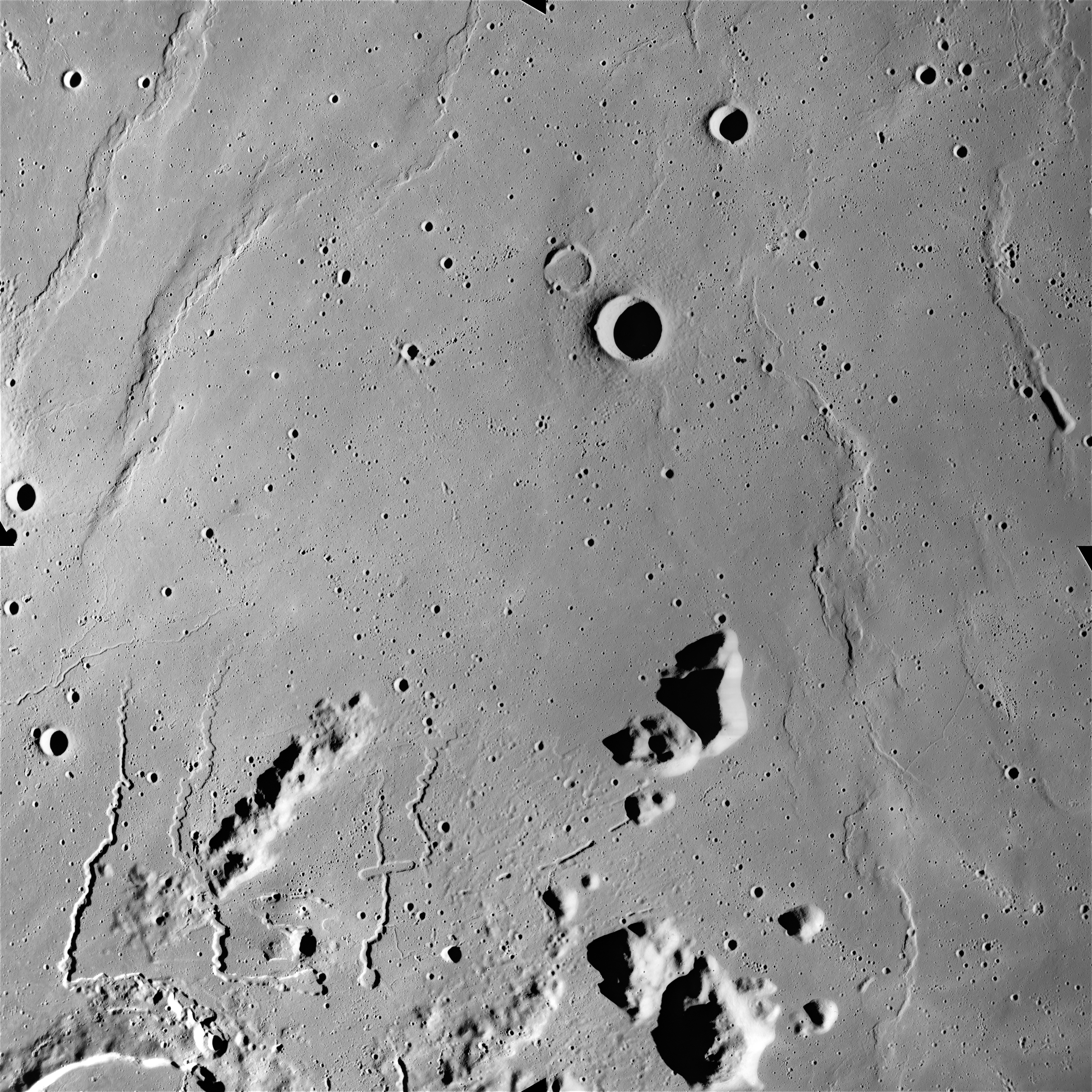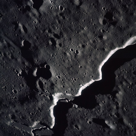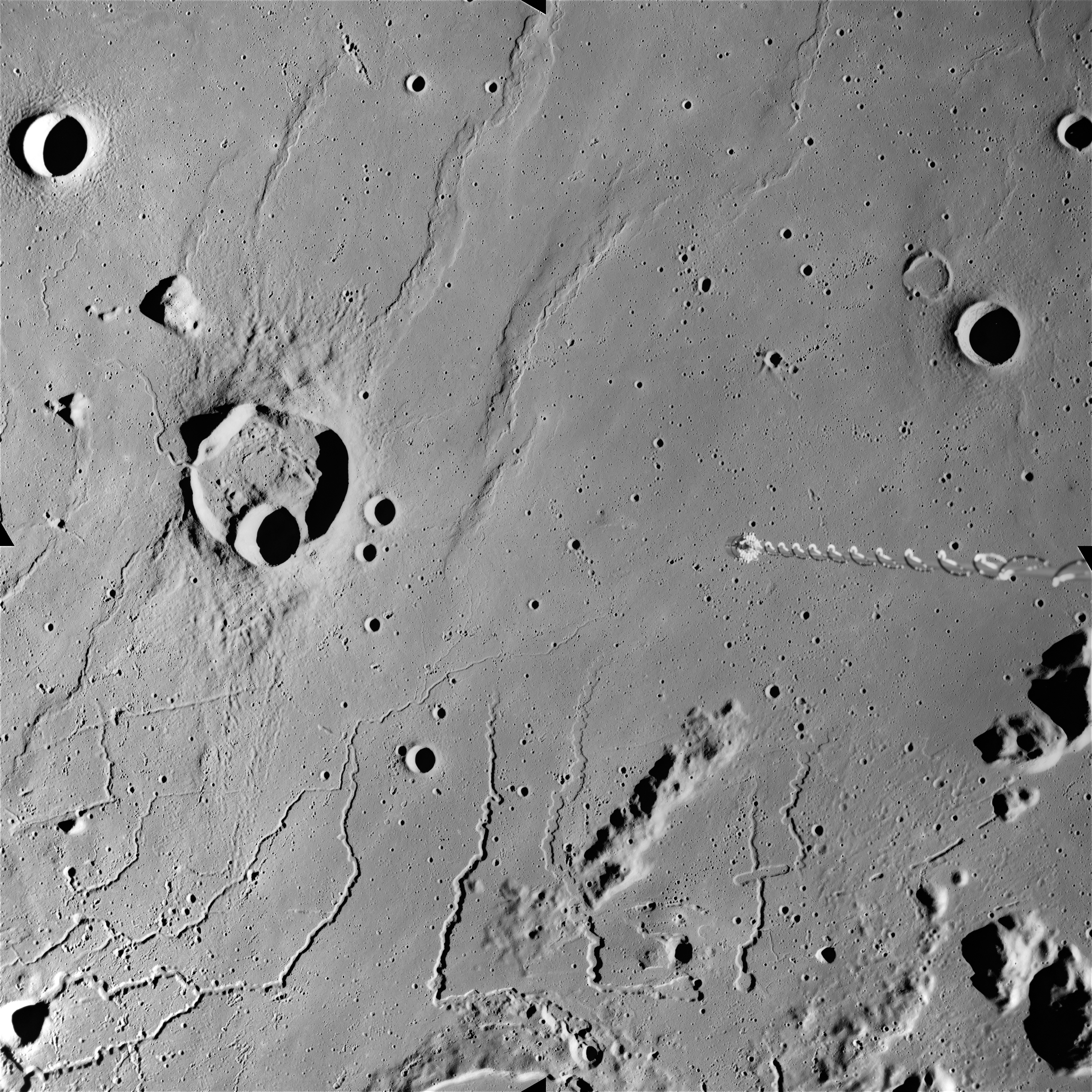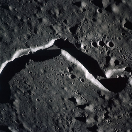 A wider context of these features is shown in one of the frames, AS15-M-2195, taken by the Mapping Camera on the spacecraft's next orbit.