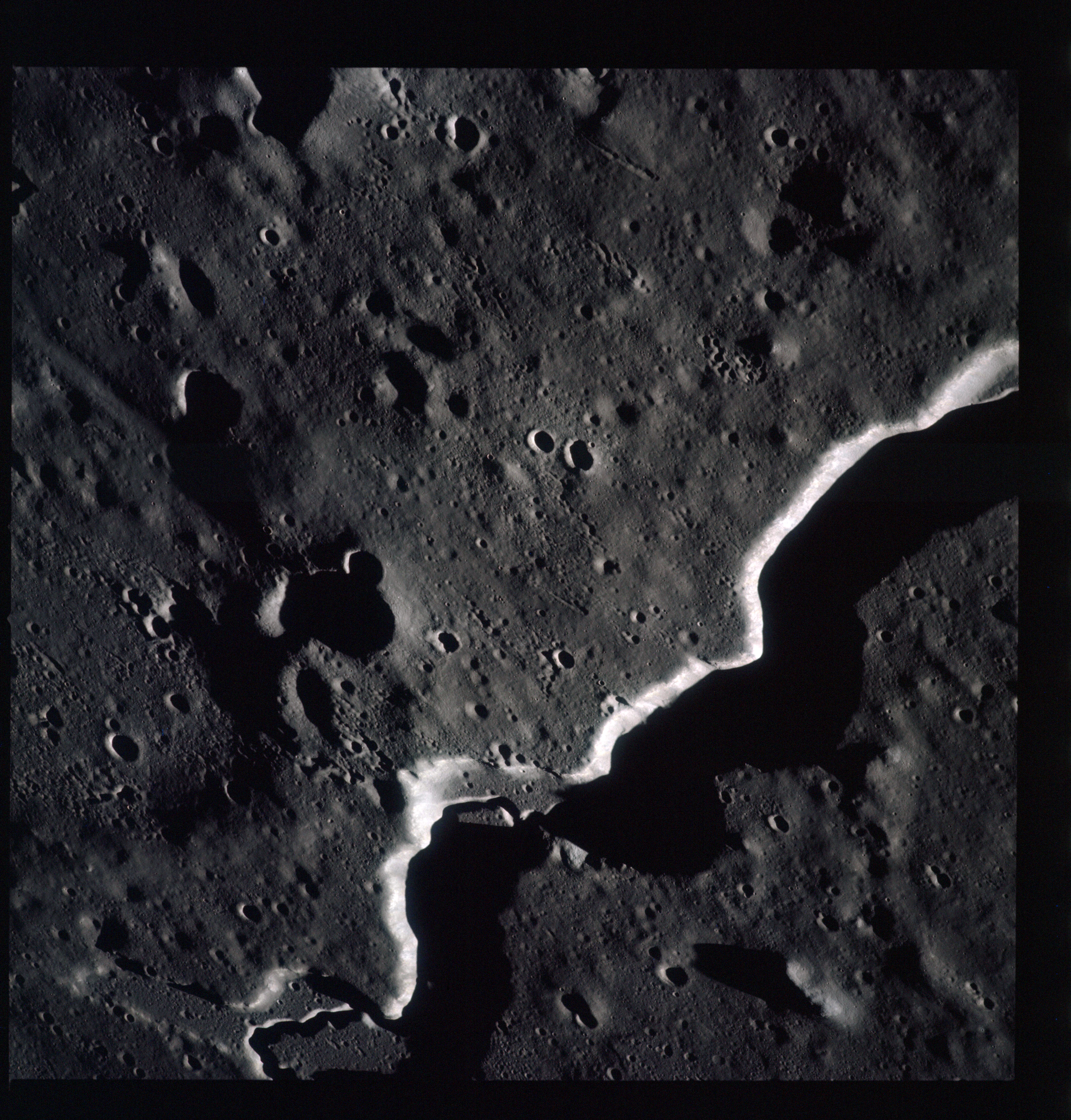 Scott, from the 1971 Technical debrief: "The terminator is the most interesting part, by far. You can see so much. It is just spectacular. I saw something at Hadley as we went over that was surprising. It's a continuation of the rille into the mountains. As you looked out, it was quite obvious that Hadley Rille was much longer than we had thought before the flight, from the Orbiter photos and the maps. It goes right into the mountains."