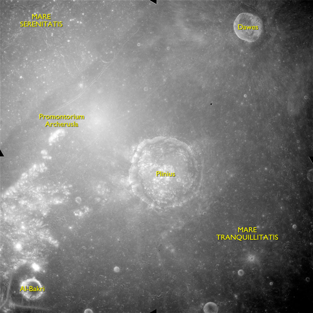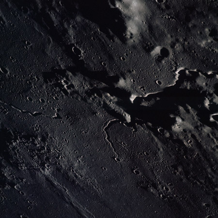 They have good reason to be concentrating on this region as it is one of the most spectacular on the Moon and one to which they will return later in the mission. Aristarchus itself is perhaps the brightest large crater on the near side and is visible with the naked eye, even in the gloom of Earthshine. It was formed about half a billion years ago on a large plateau that is the source of a great many sinuous rilles, large and small. These were cut by flowing lava in much the same way as Hadley Rille was formed, when they fed the expanse of Oceanus Procellarum surrounding the plateau. Often these rilles begin in crater-like bowl-shaped depressions, including the largest, Vallis Schröteri or Schröter's Valley. The landscape around Aristarchus is probably more than six times older than the crater itself.