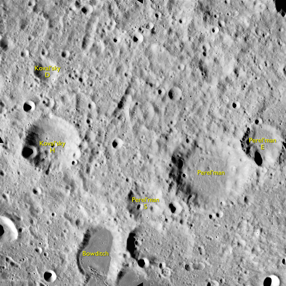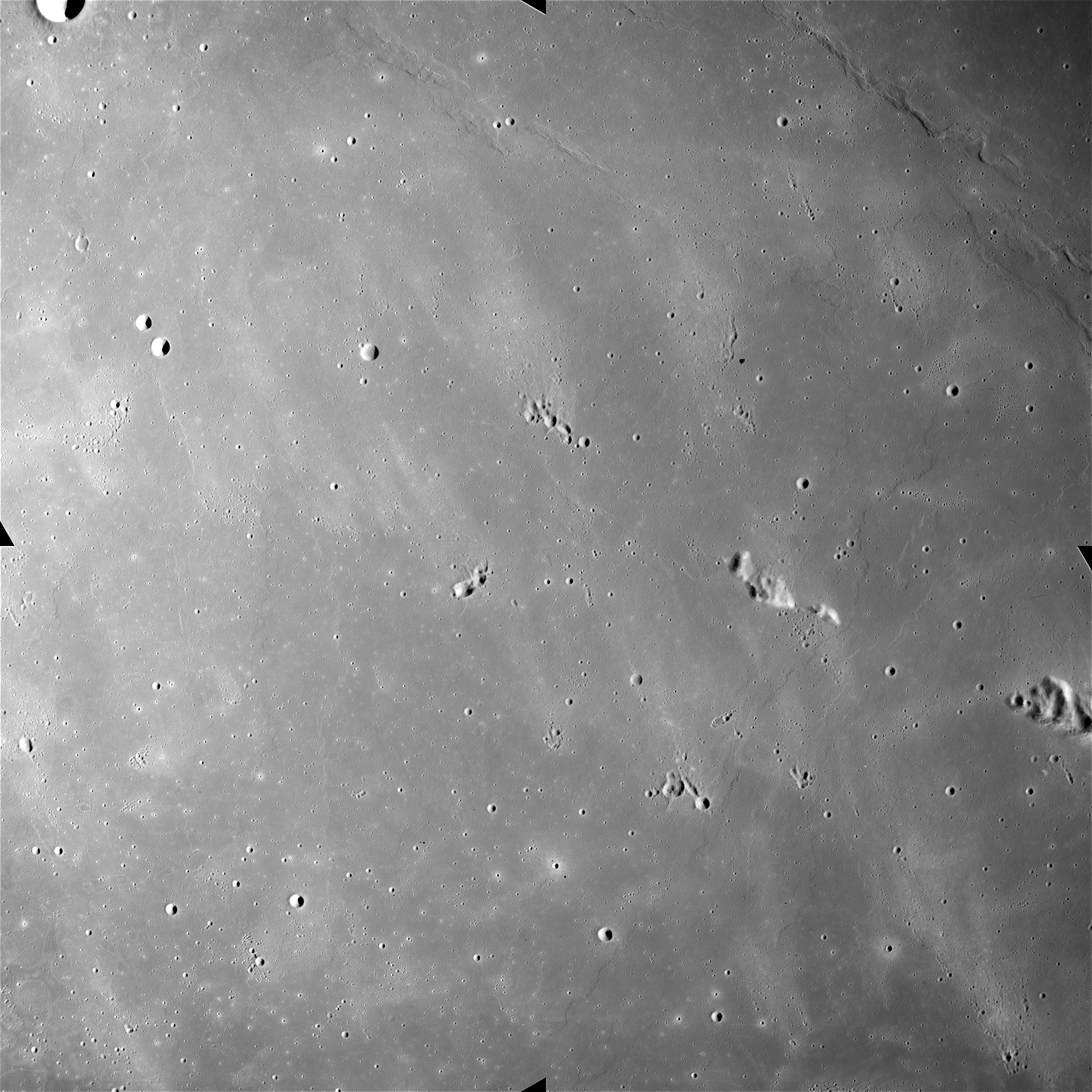 AS15-96-13042 and 13043 are of two rilles just east of the westernmost outcrop of Montes Harbinger. One of these rilles is bisected by an extraordinary depression somewhat like an elongated stadium. This may be a pre-existing crater chain which was inundated by the lavas that were delivered by the rille. 13043 includes a depression, Ivan, that is clearly the source of one of these rilles. Ivan is an example of the many small features on the Moon that have been assigned arbitrary male or female forenames rather than the more usual name of a deceased scientist.