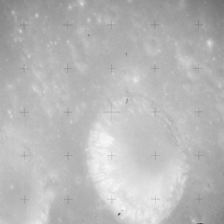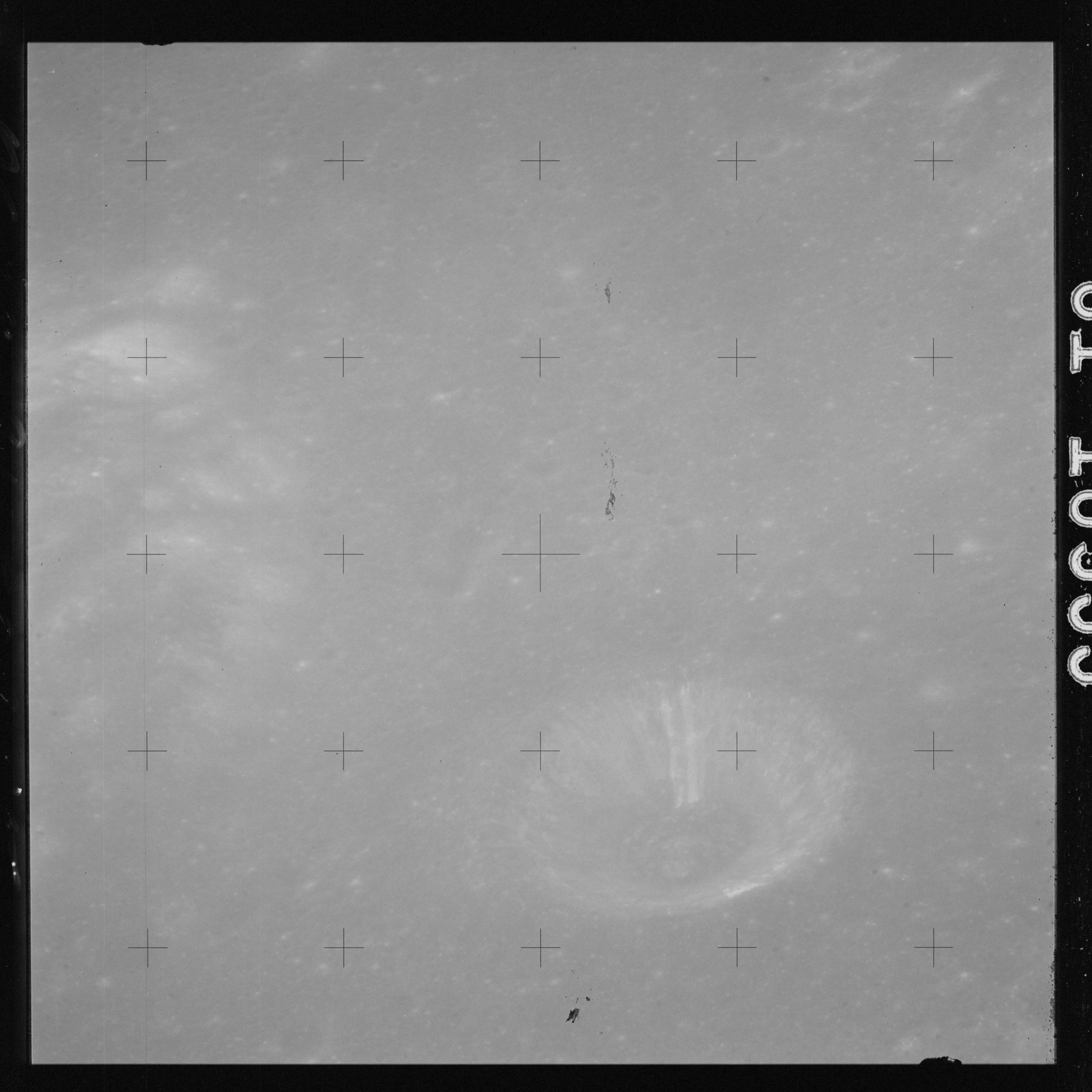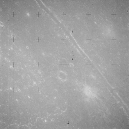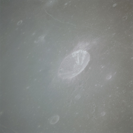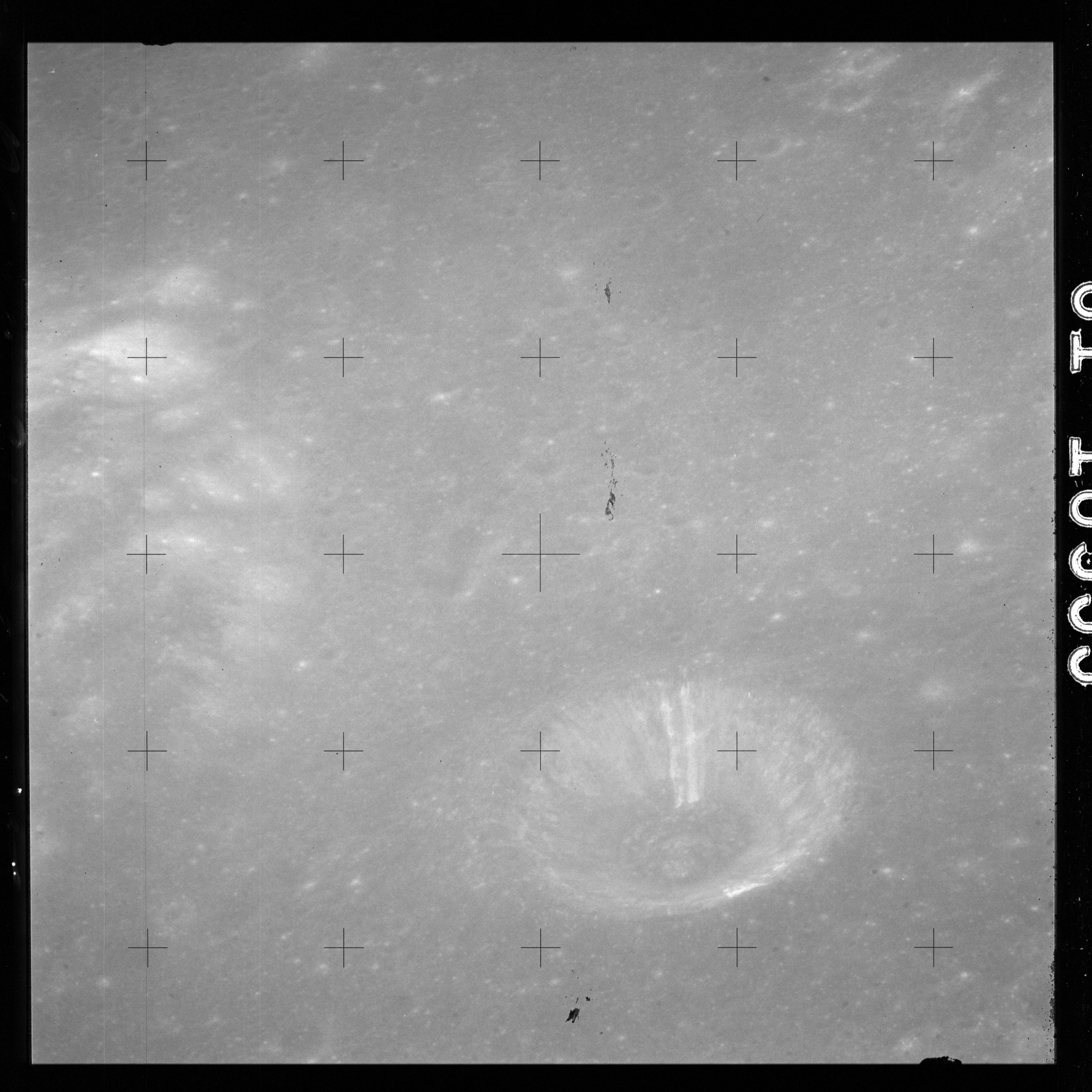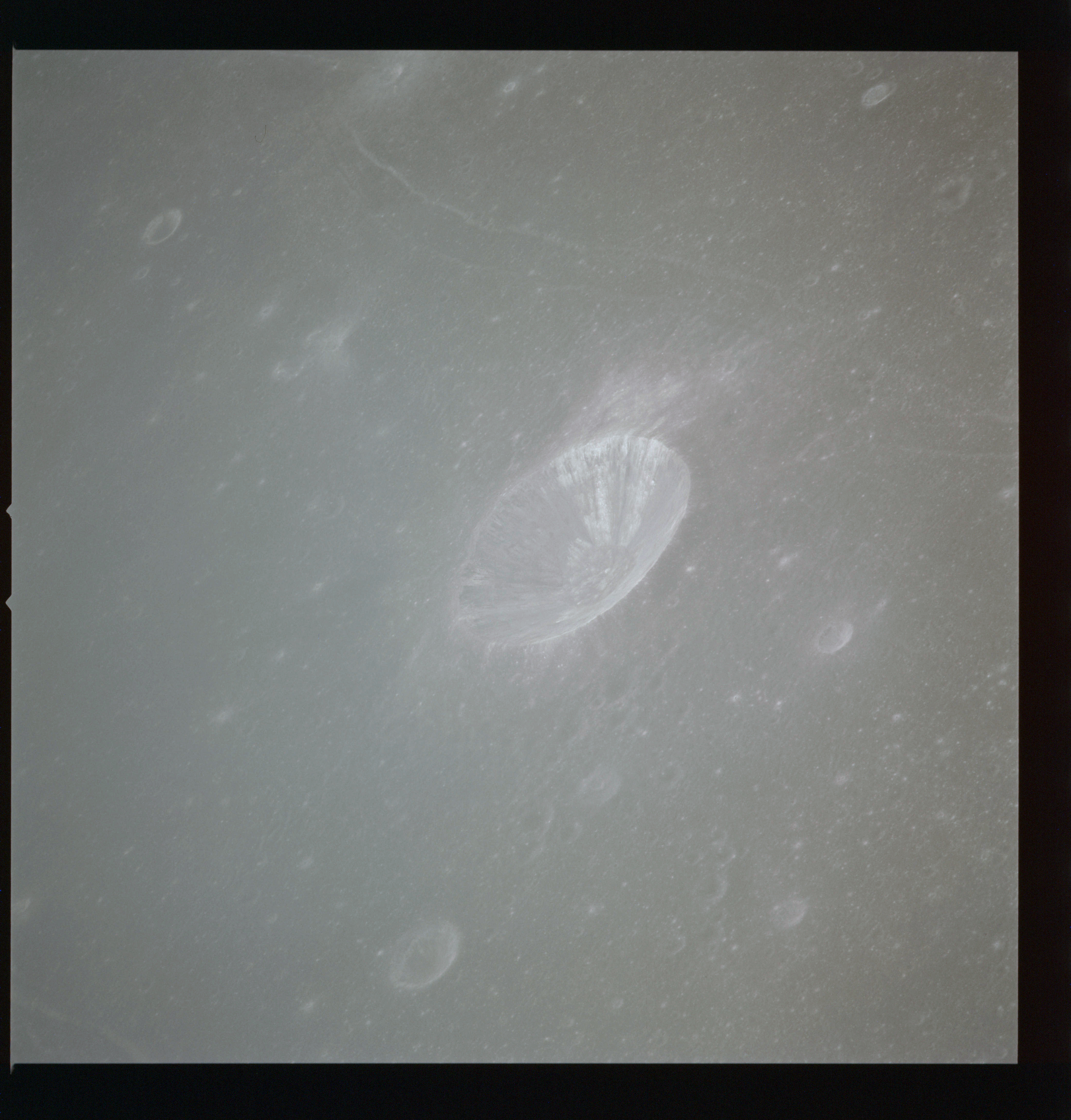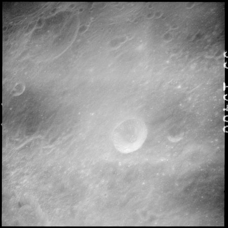 To the right of AS15-90-12283 is the exceptionally bright ray system of Censorinus, a small (3.8 kilometres) but highly visible crater which is considered by Earth observers as a useful landmark for timing the progress of lunar eclipses when Earth's shadow slowly moves across the Moon's disk. It is named after a Roman astronomer, circa 238 AD.