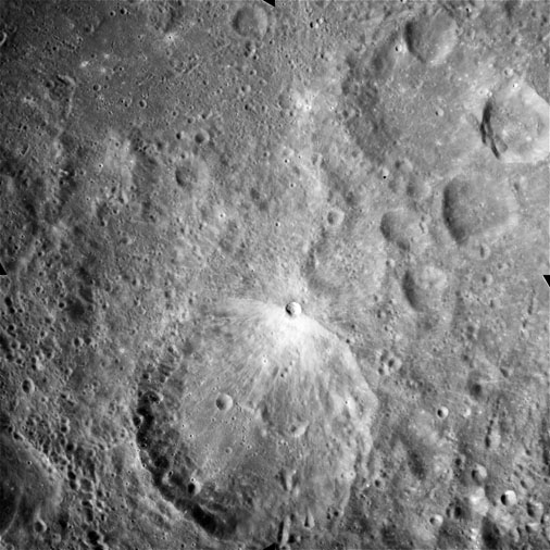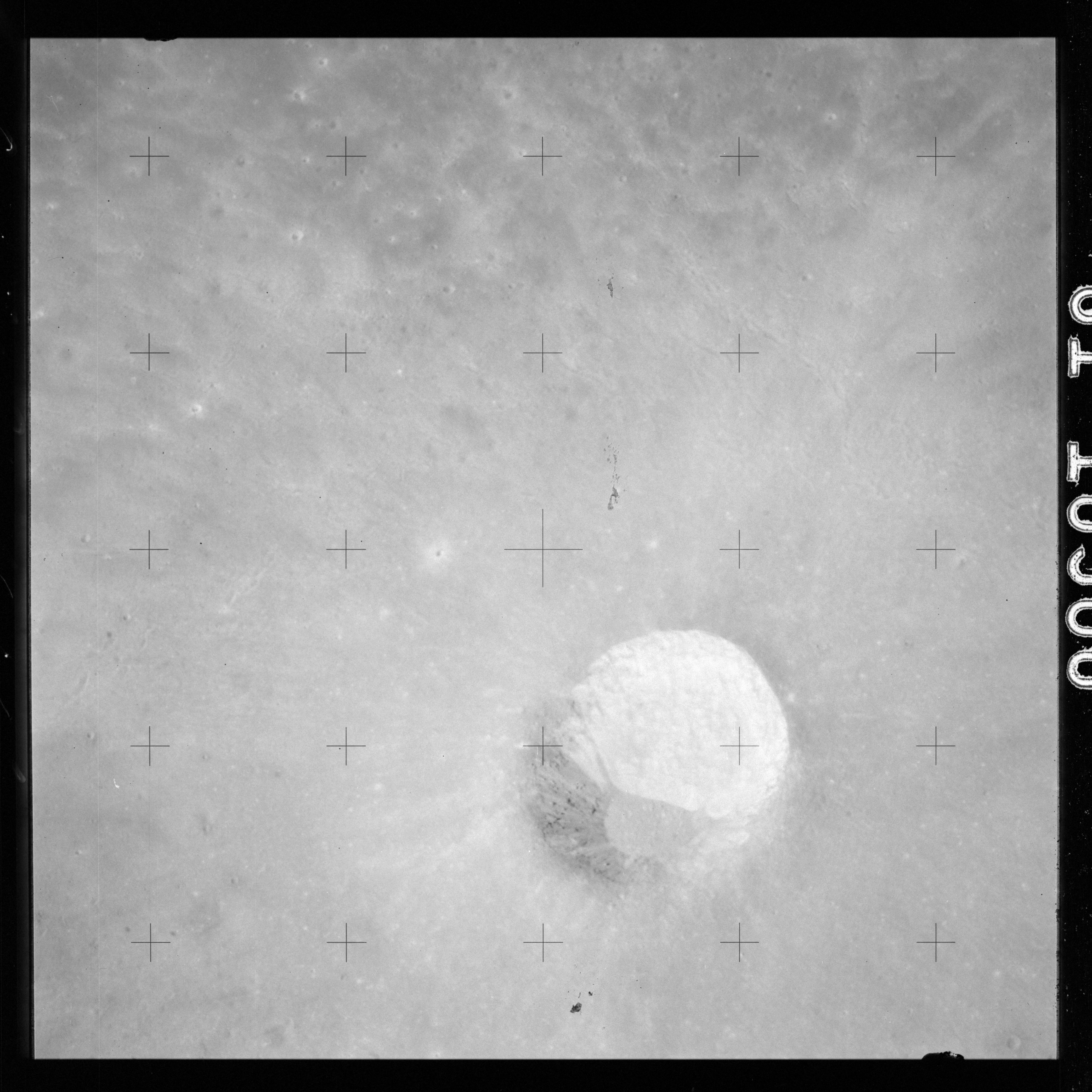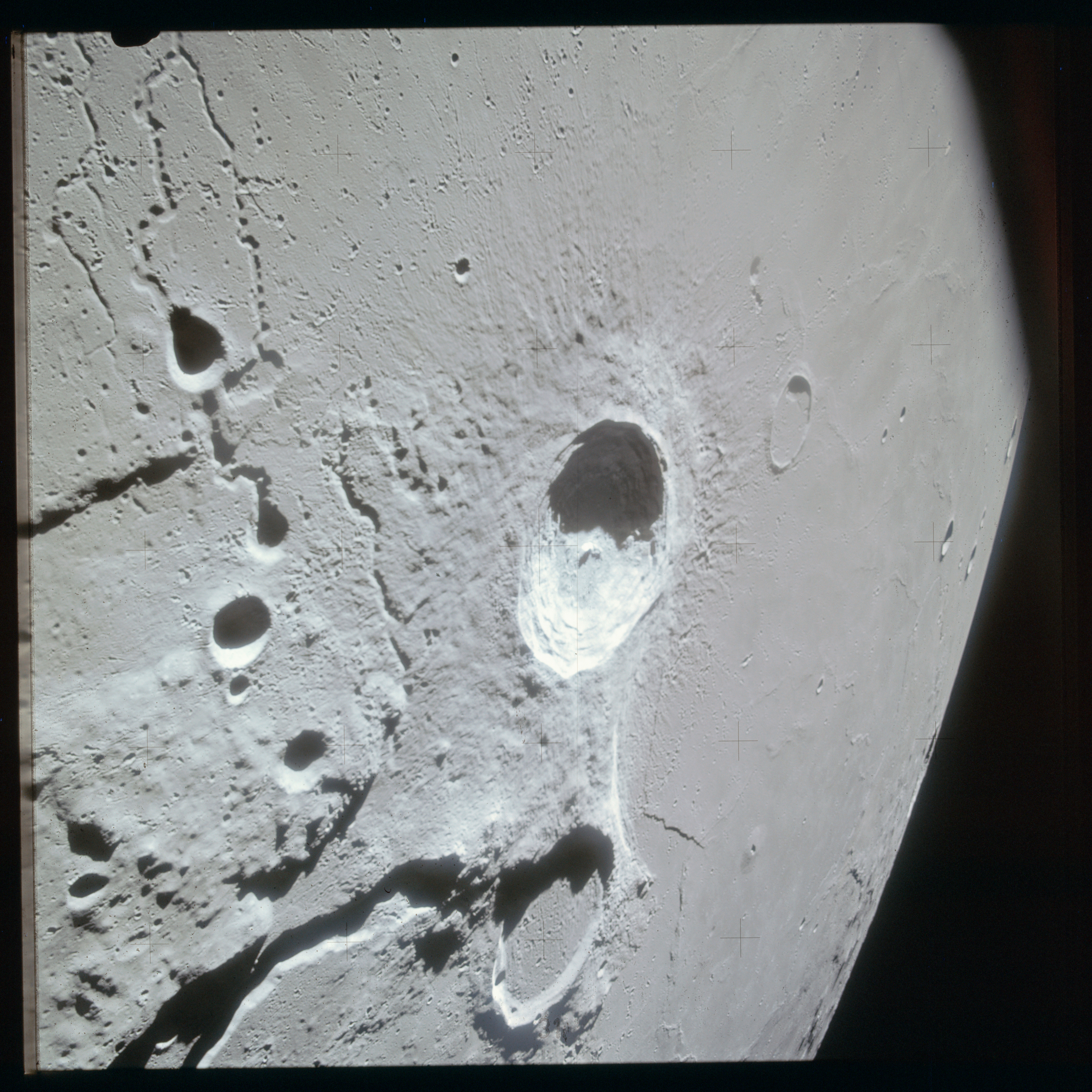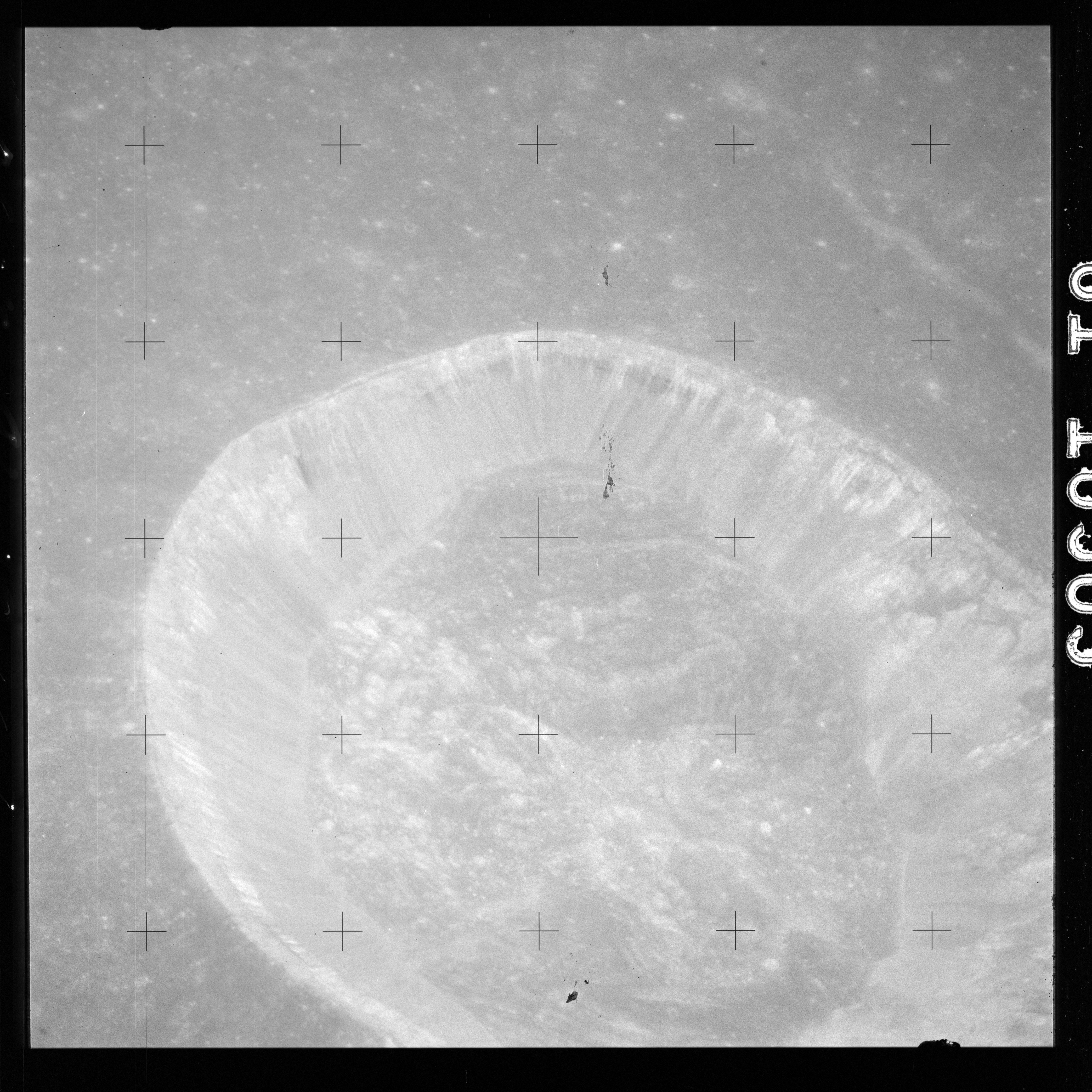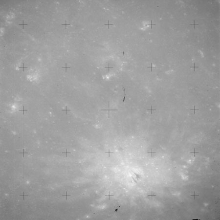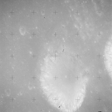 To the right of AS15-90-12283 is the exceptionally bright ray system of Censorinus, a small (3.8 kilometres) but highly visible crater which is considered by Earth observers as a useful landmark for timing the progress of lunar eclipses when Earth's shadow slowly moves across the Moon's disk. It is named after a Roman astronomer, circa 238 AD.