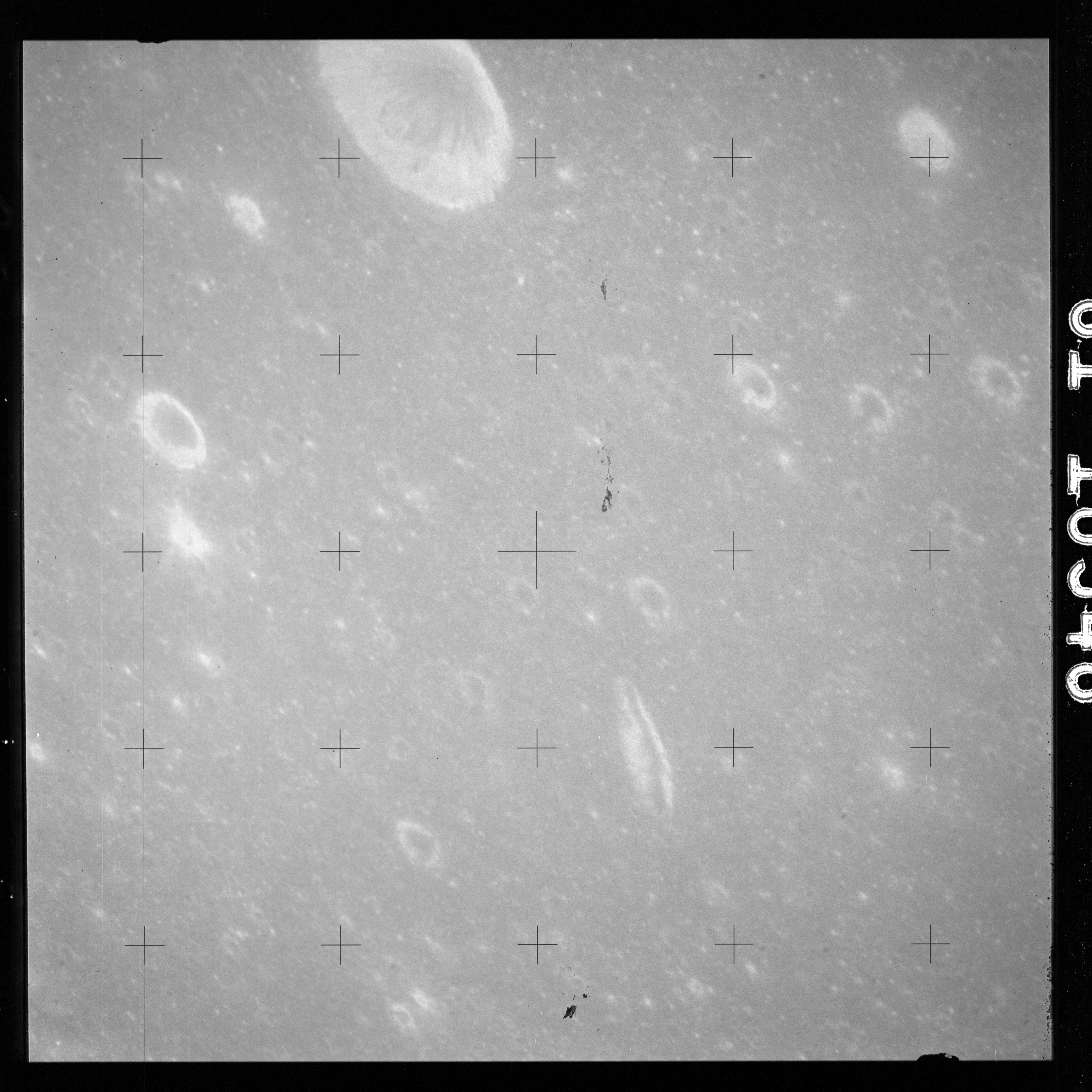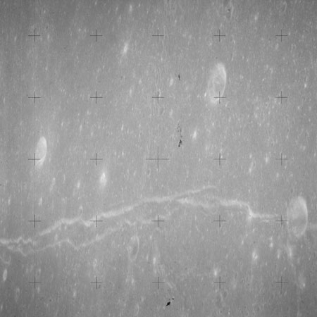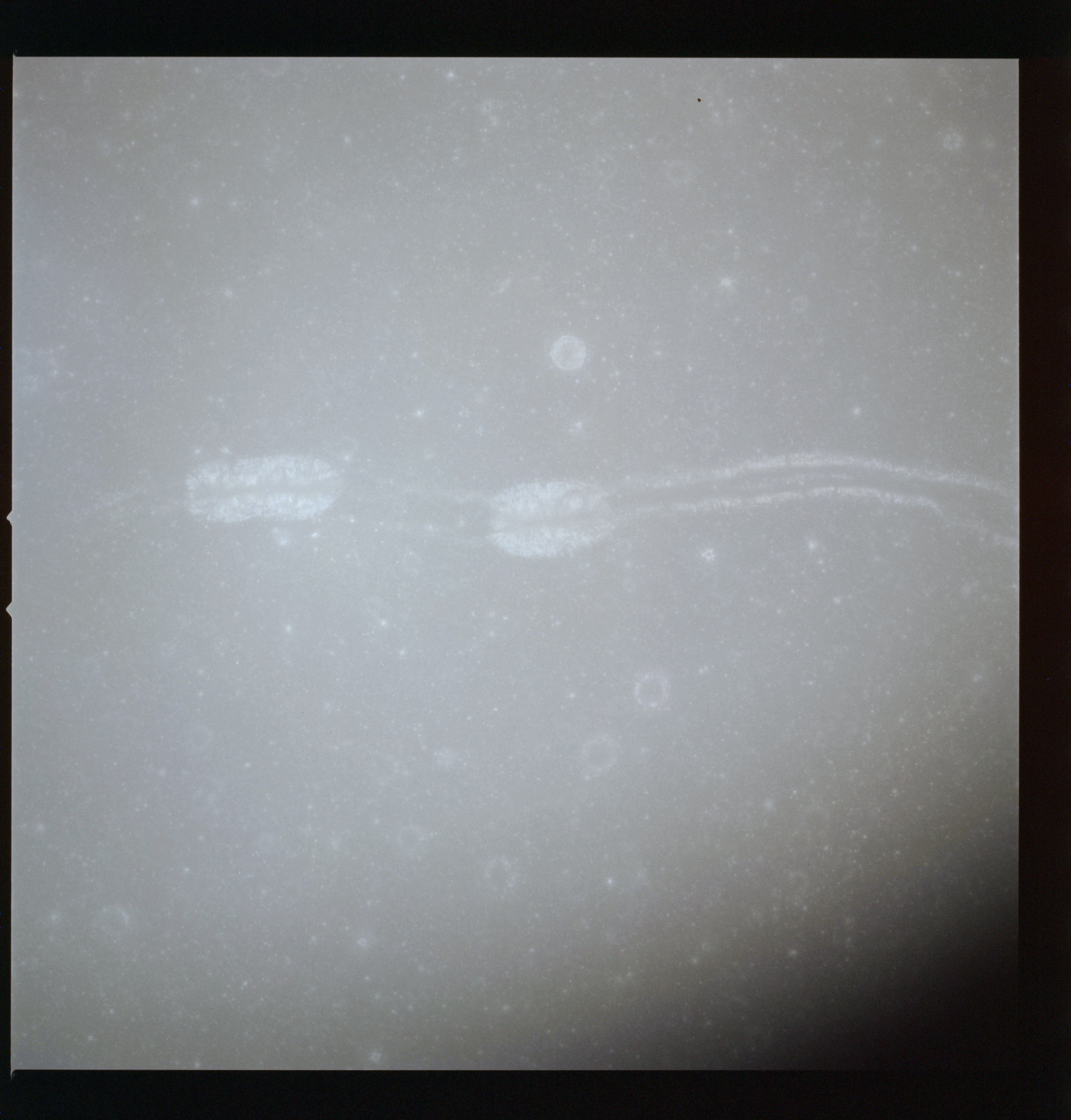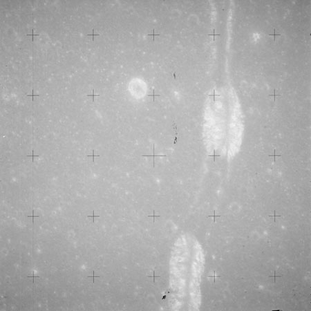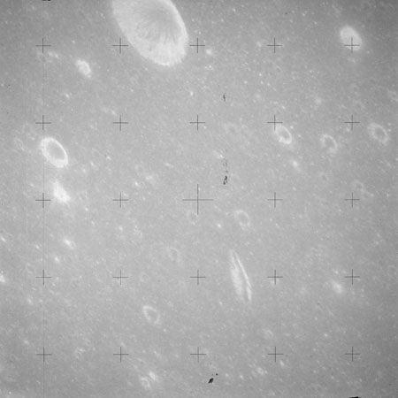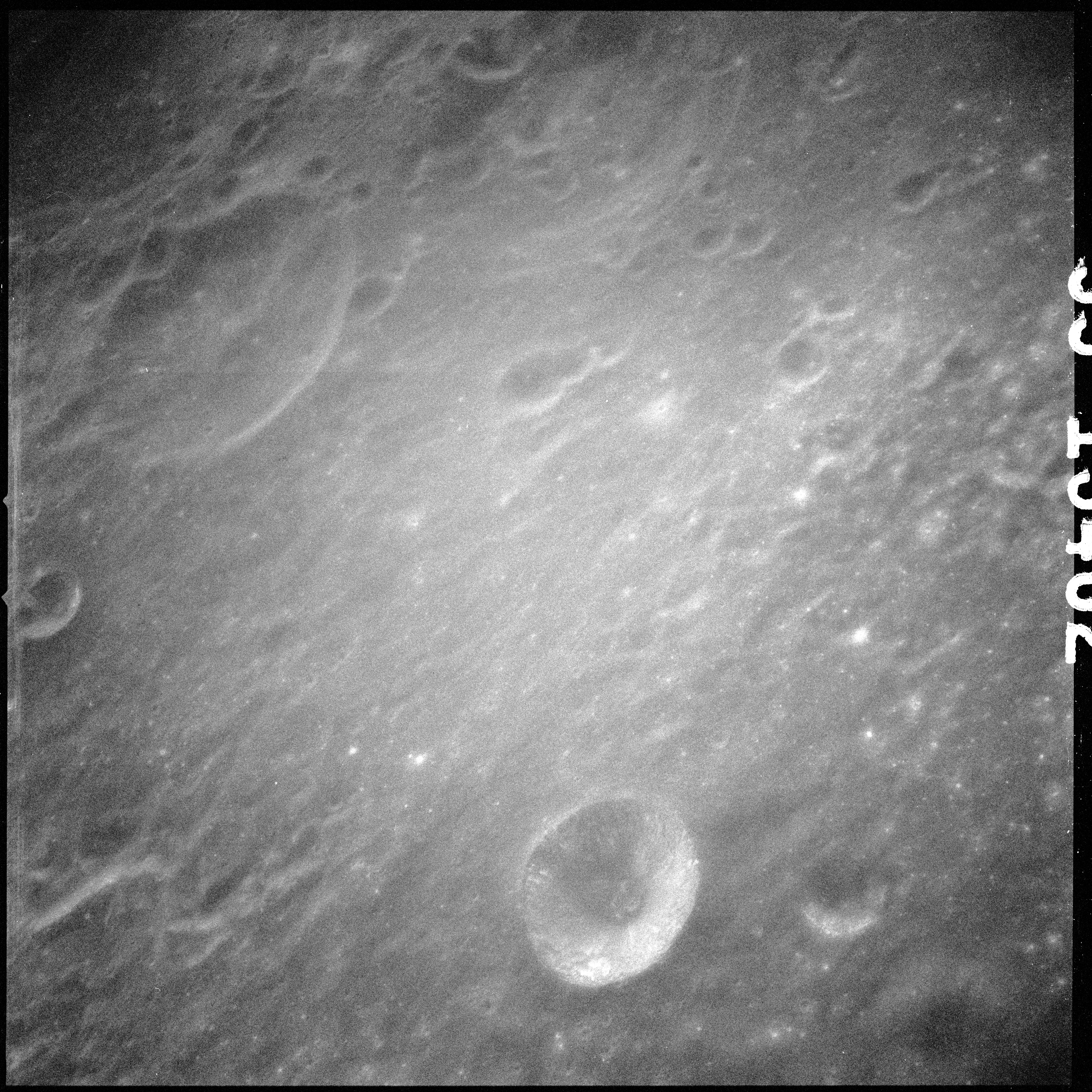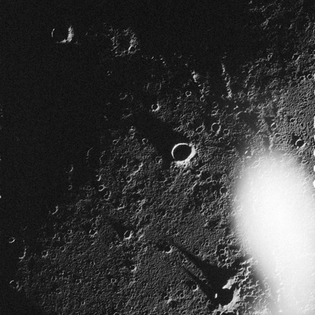 Two shots are taken on magazine PP as the spacecraft approaches Mare Fecunditatis. The Sun is very high and detail is hard to see.