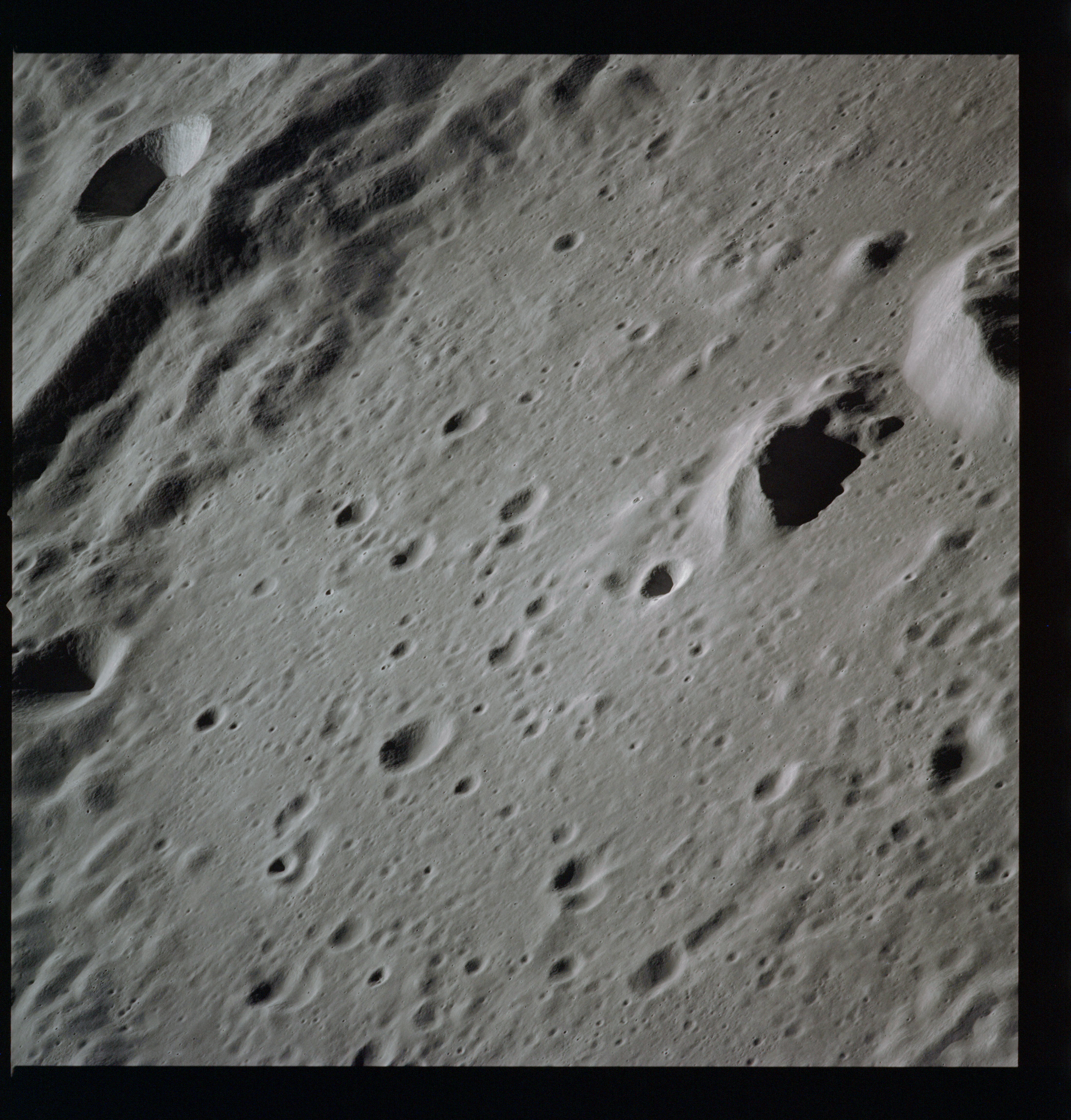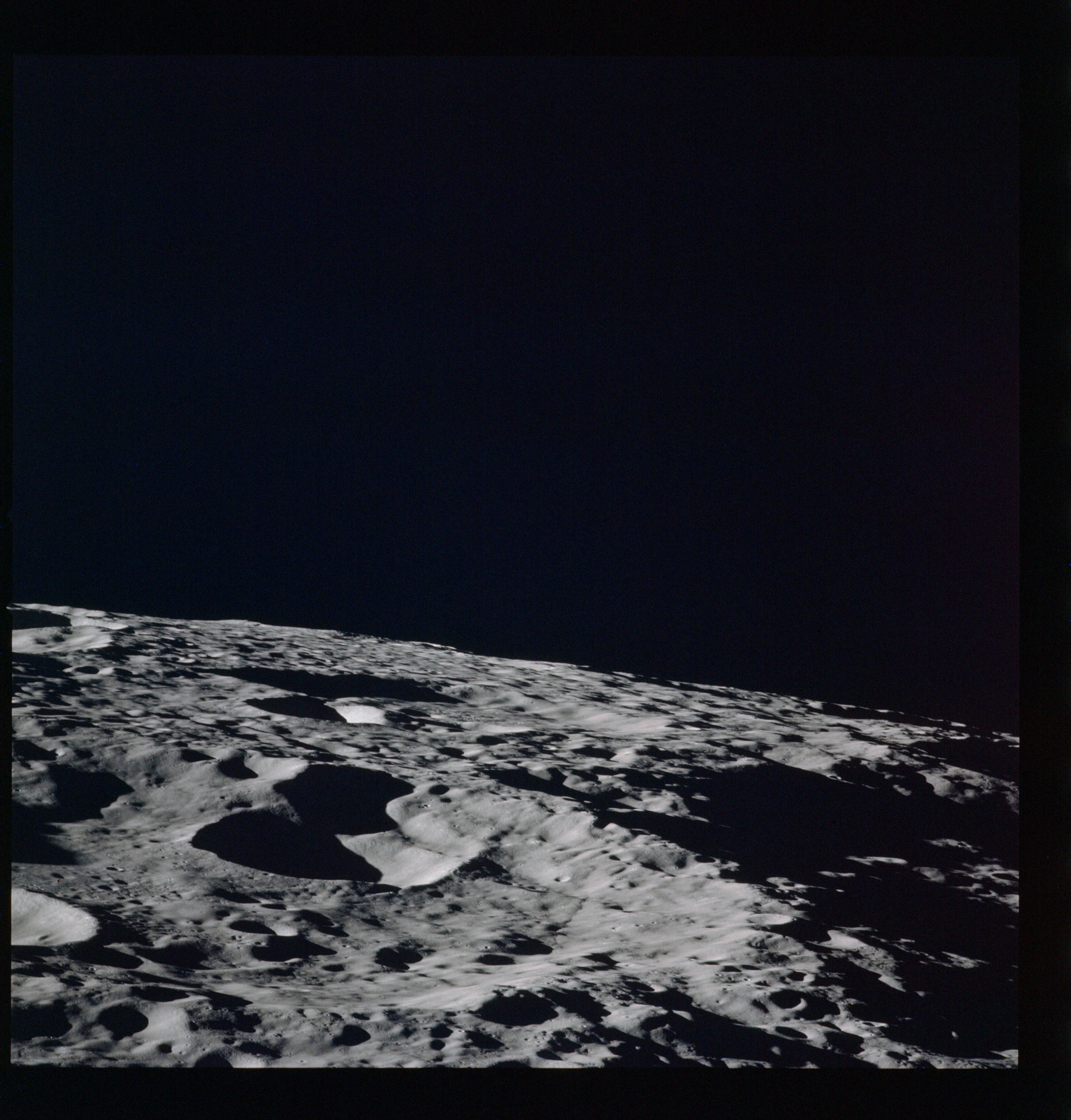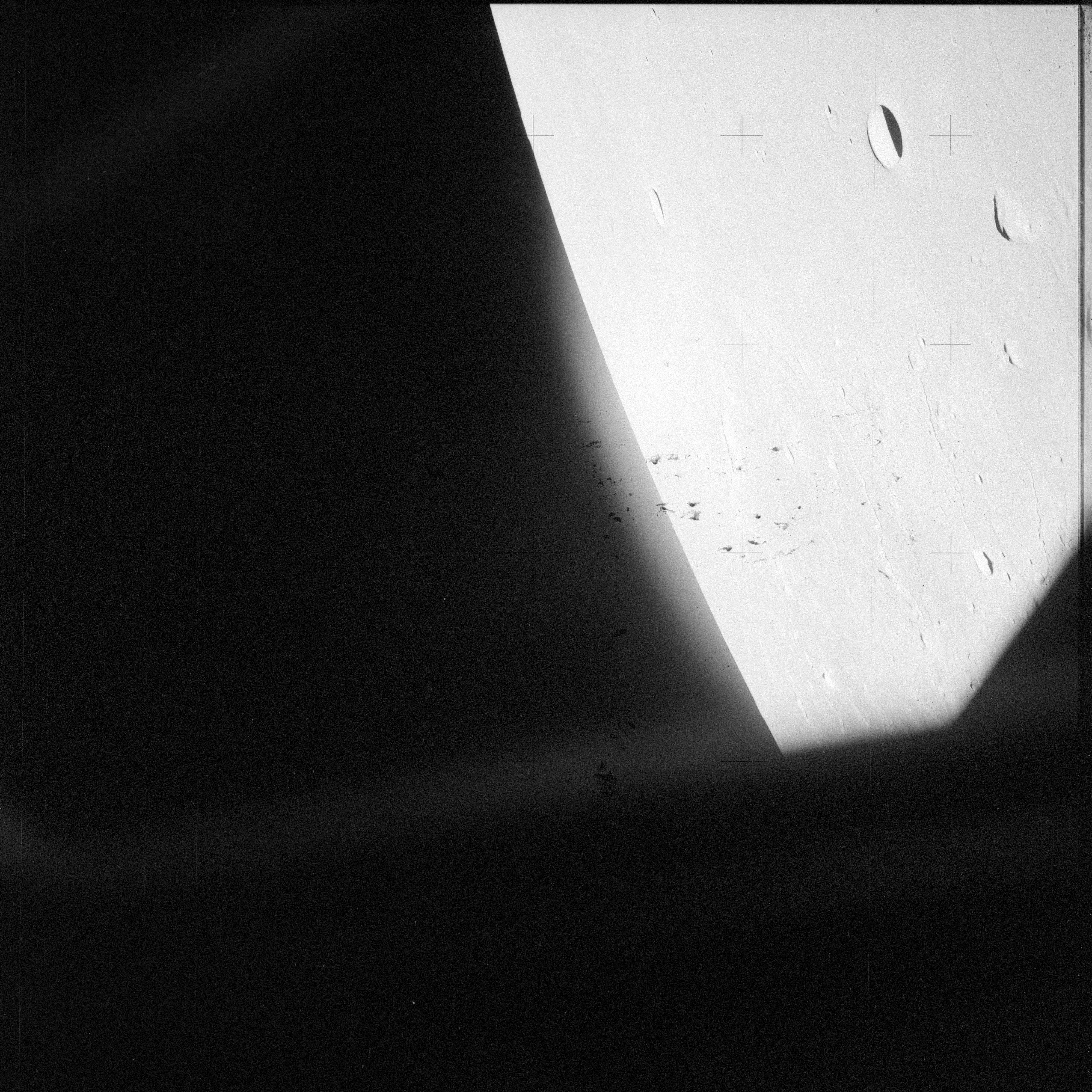 For half an hour, the crew have an exercise period. They then continue with some handheld photography of features on the far side, though rather than following the targets suggested in the Flight Plan, they elect to spread their picture-taking over this and the next orbit.