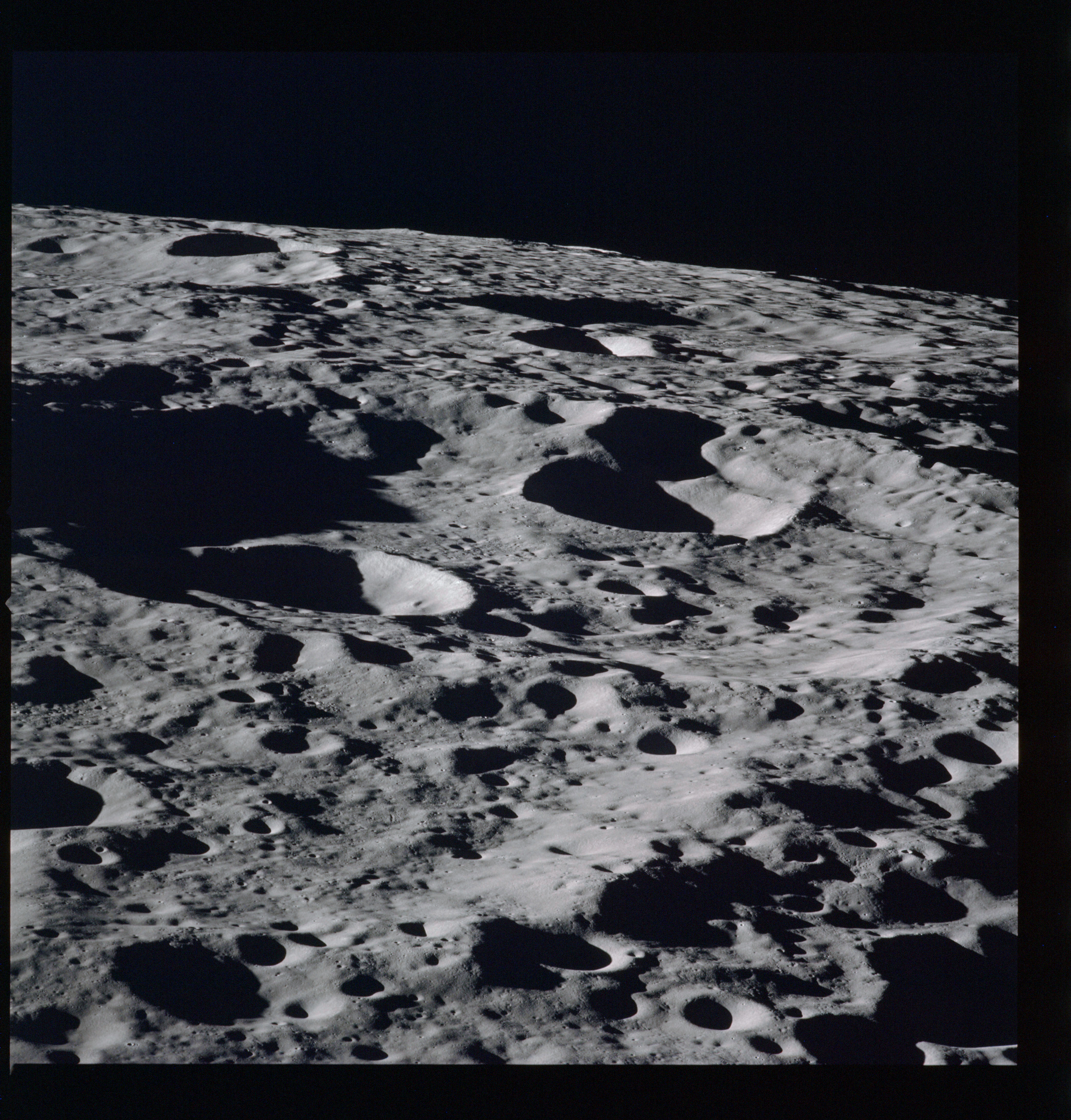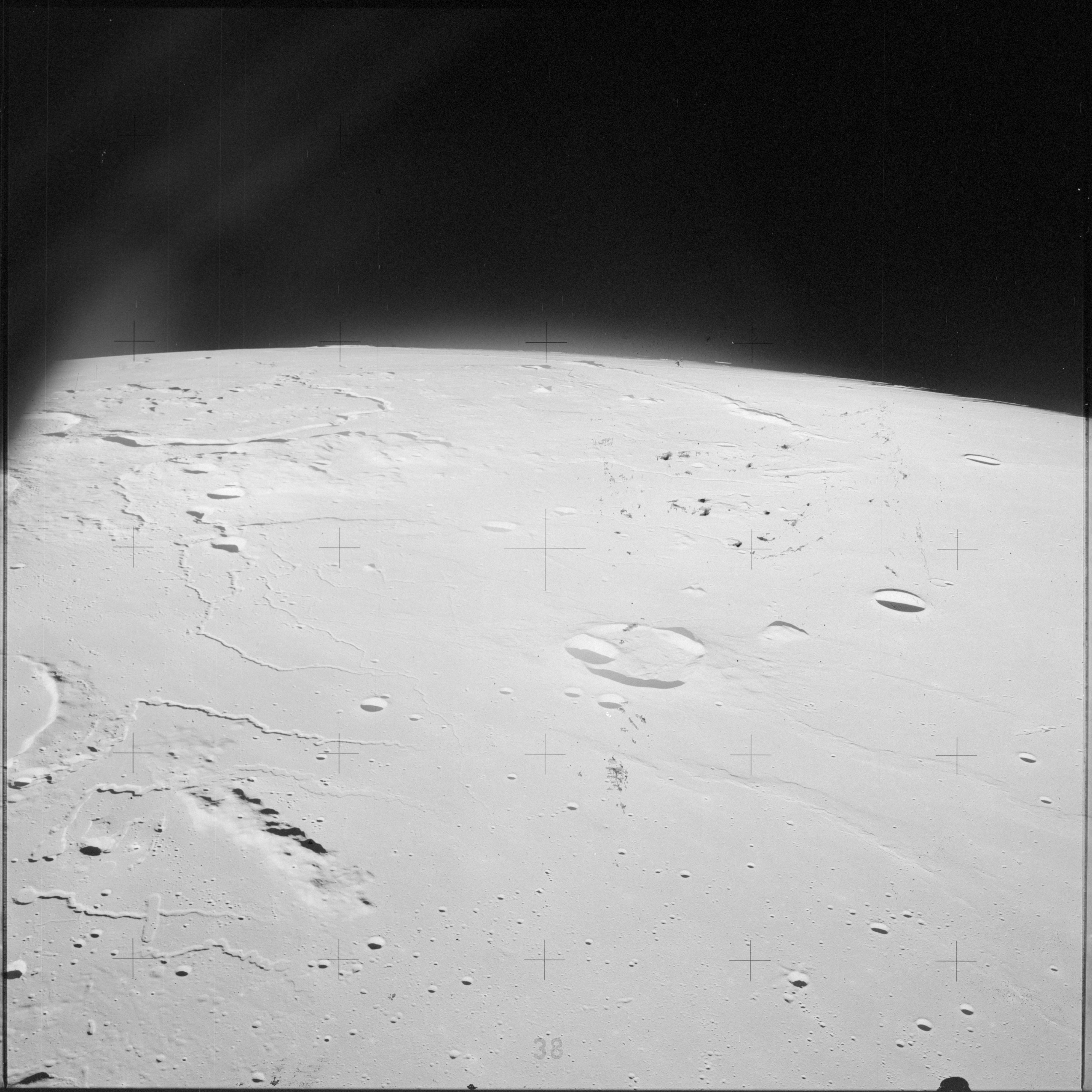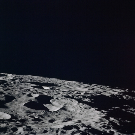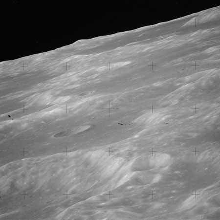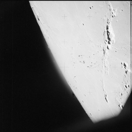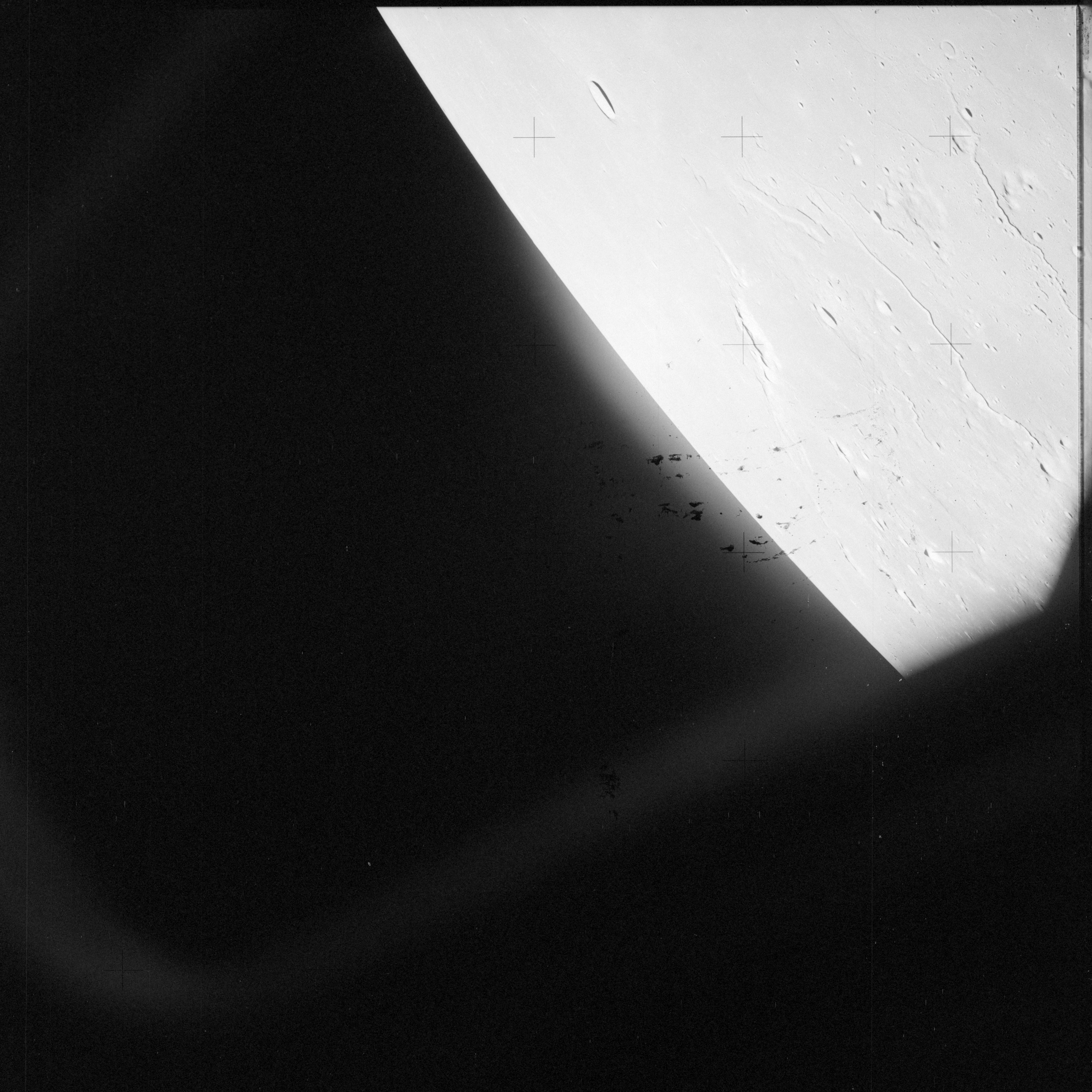 For half an hour, the crew have an exercise period. They then continue with some handheld photography of features on the far side, though rather than following the targets suggested in the Flight Plan, they elect to spread their picture-taking over this and the next orbit.