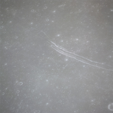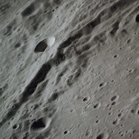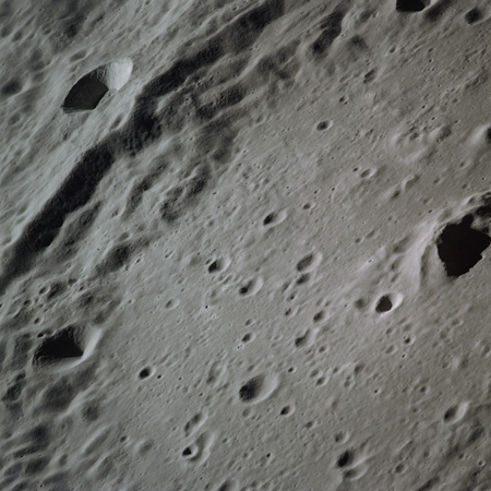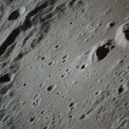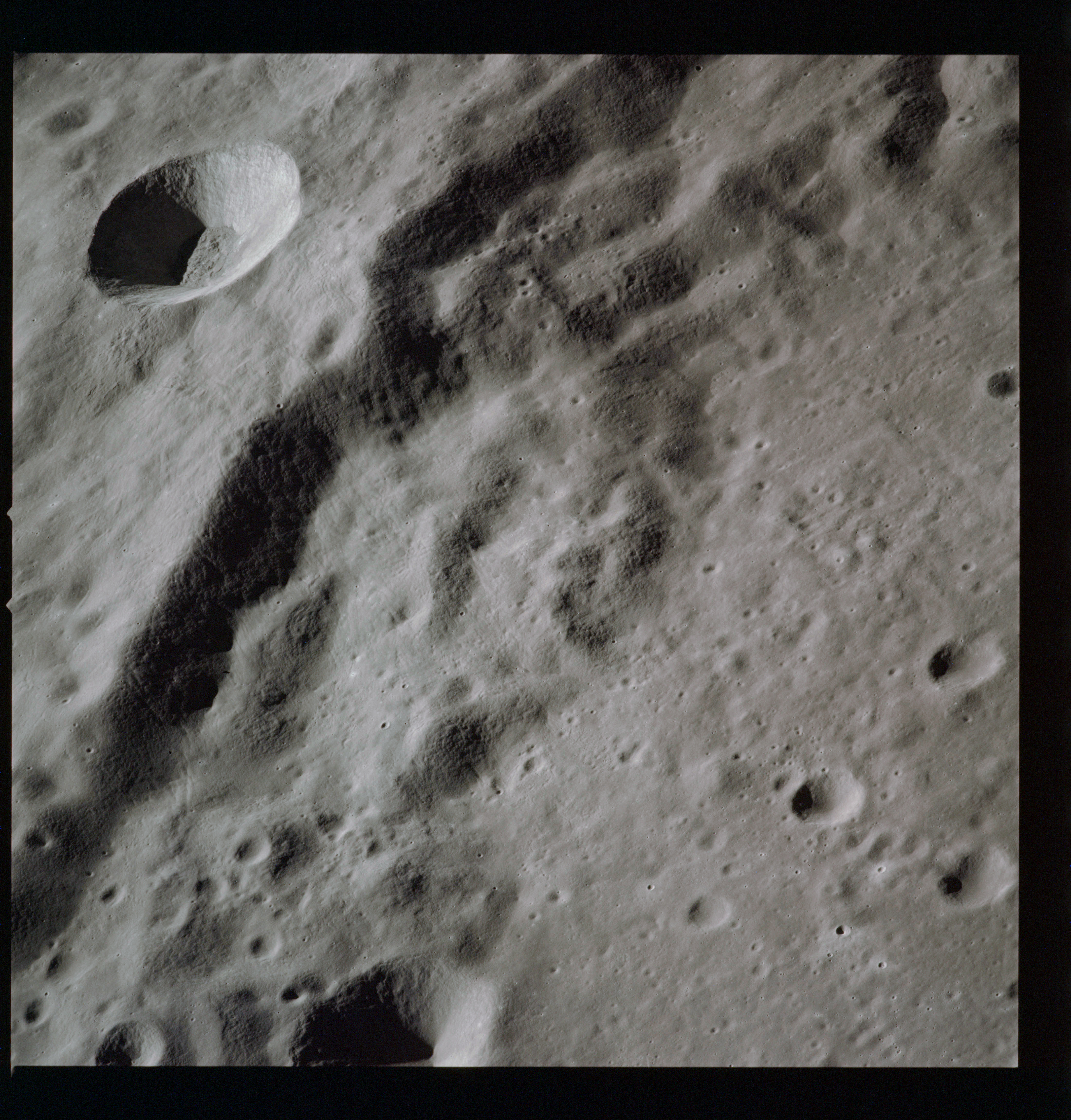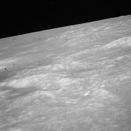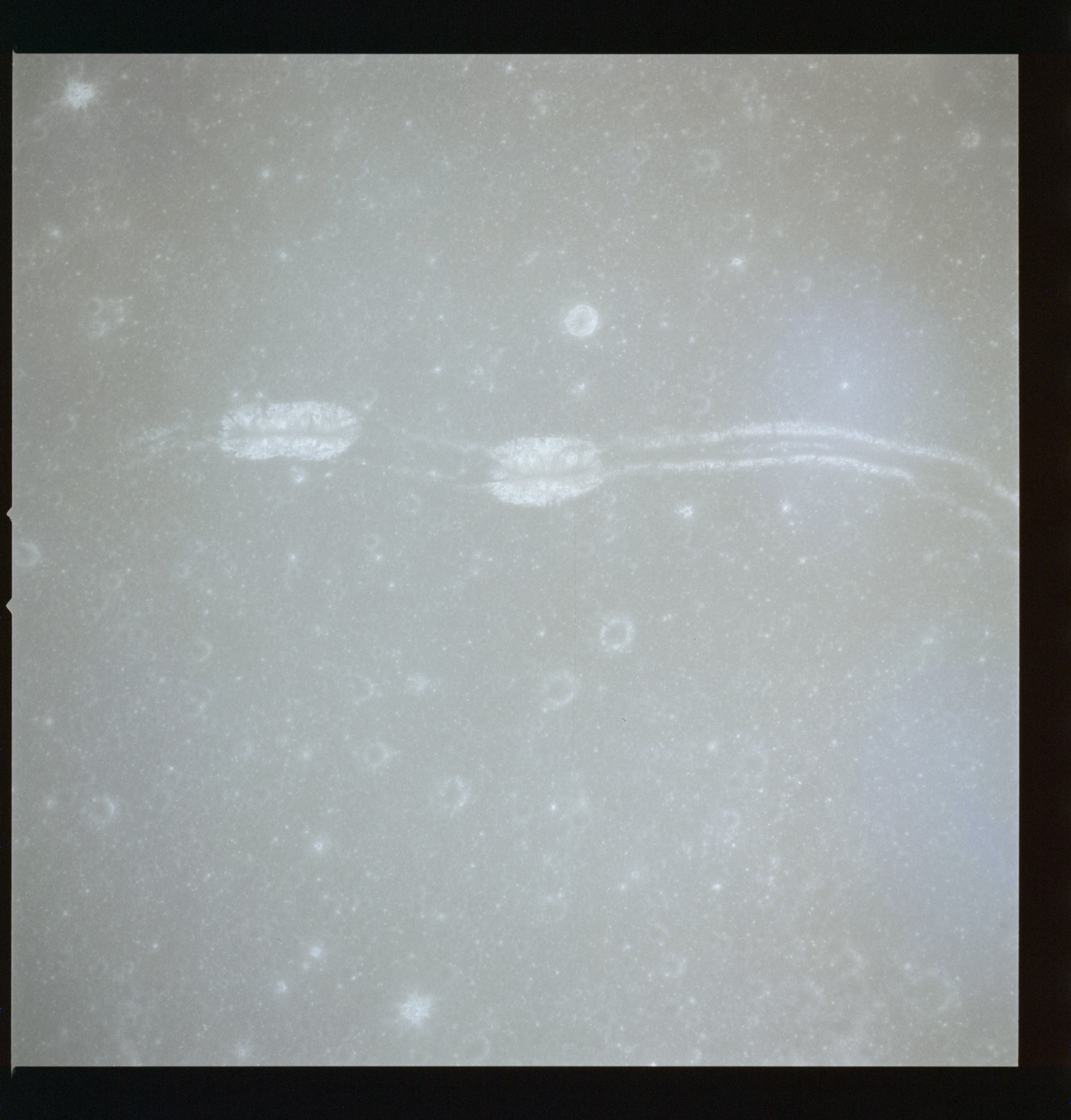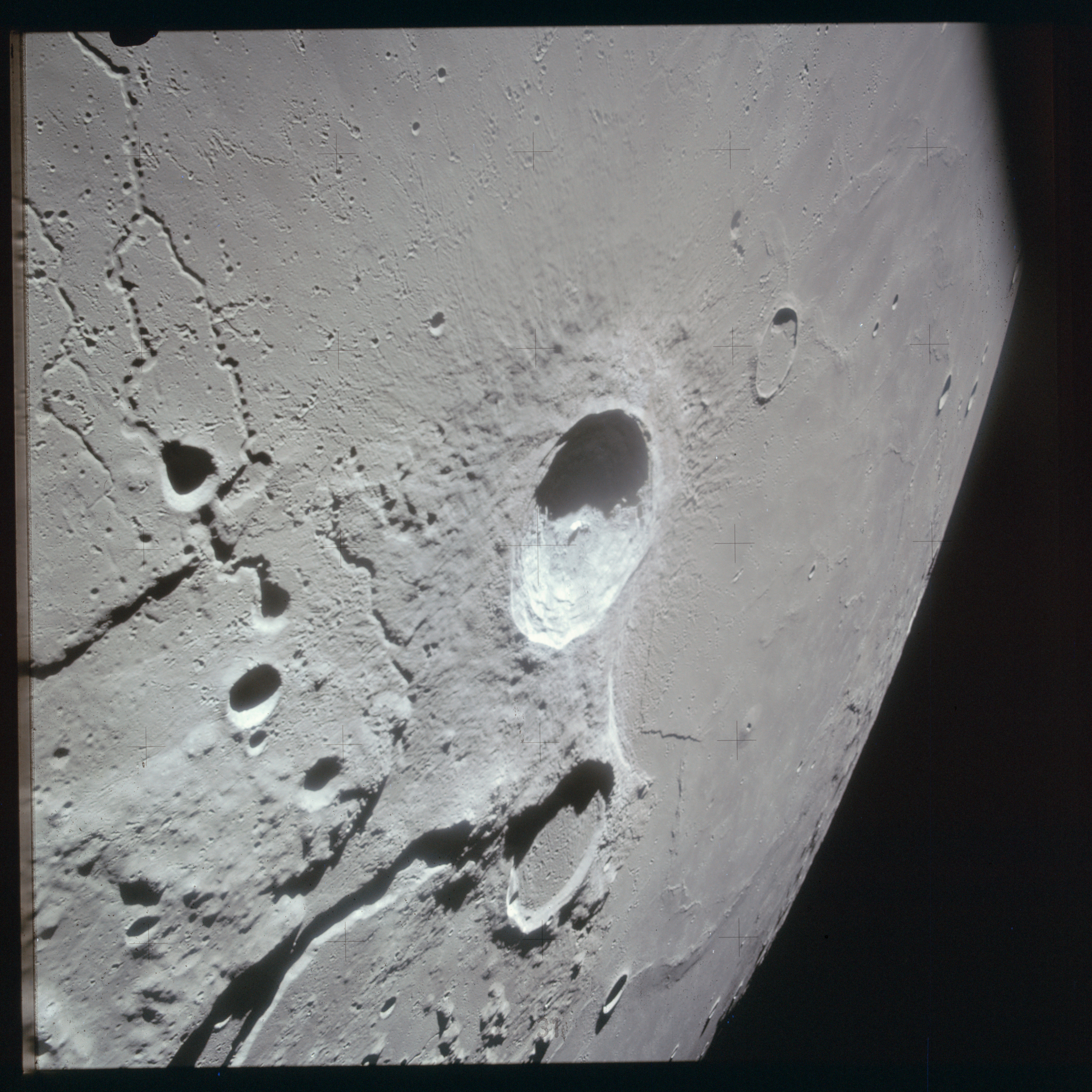 For half an hour, the crew have an exercise period. They then continue with some handheld photography of features on the far side, though rather than following the targets suggested in the Flight Plan, they elect to spread their picture-taking over this and the next orbit.