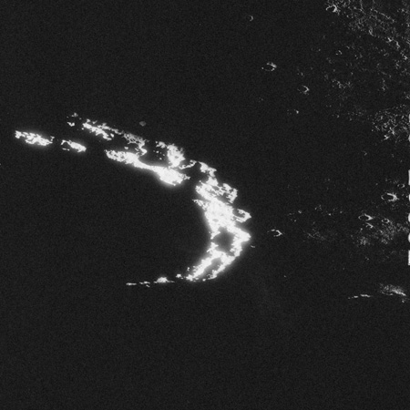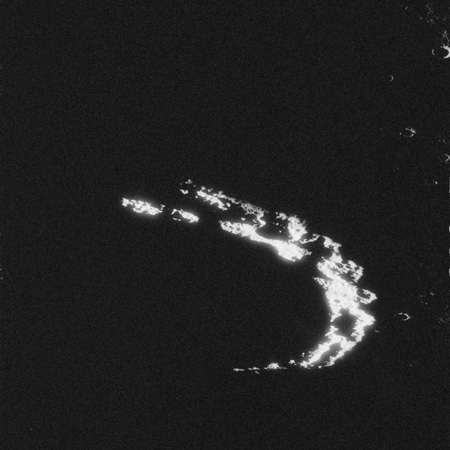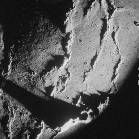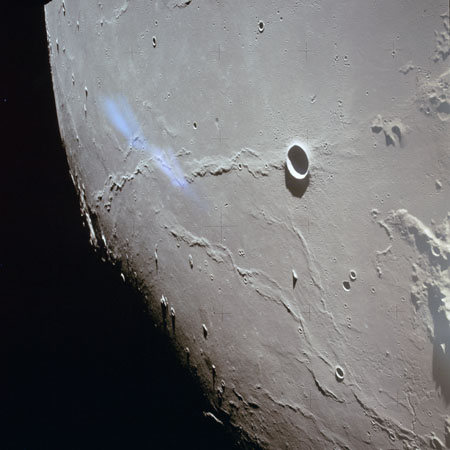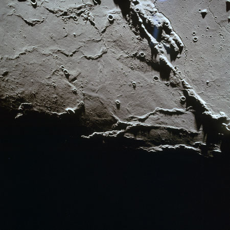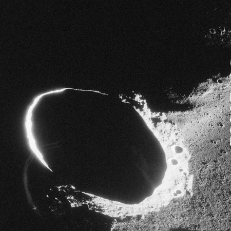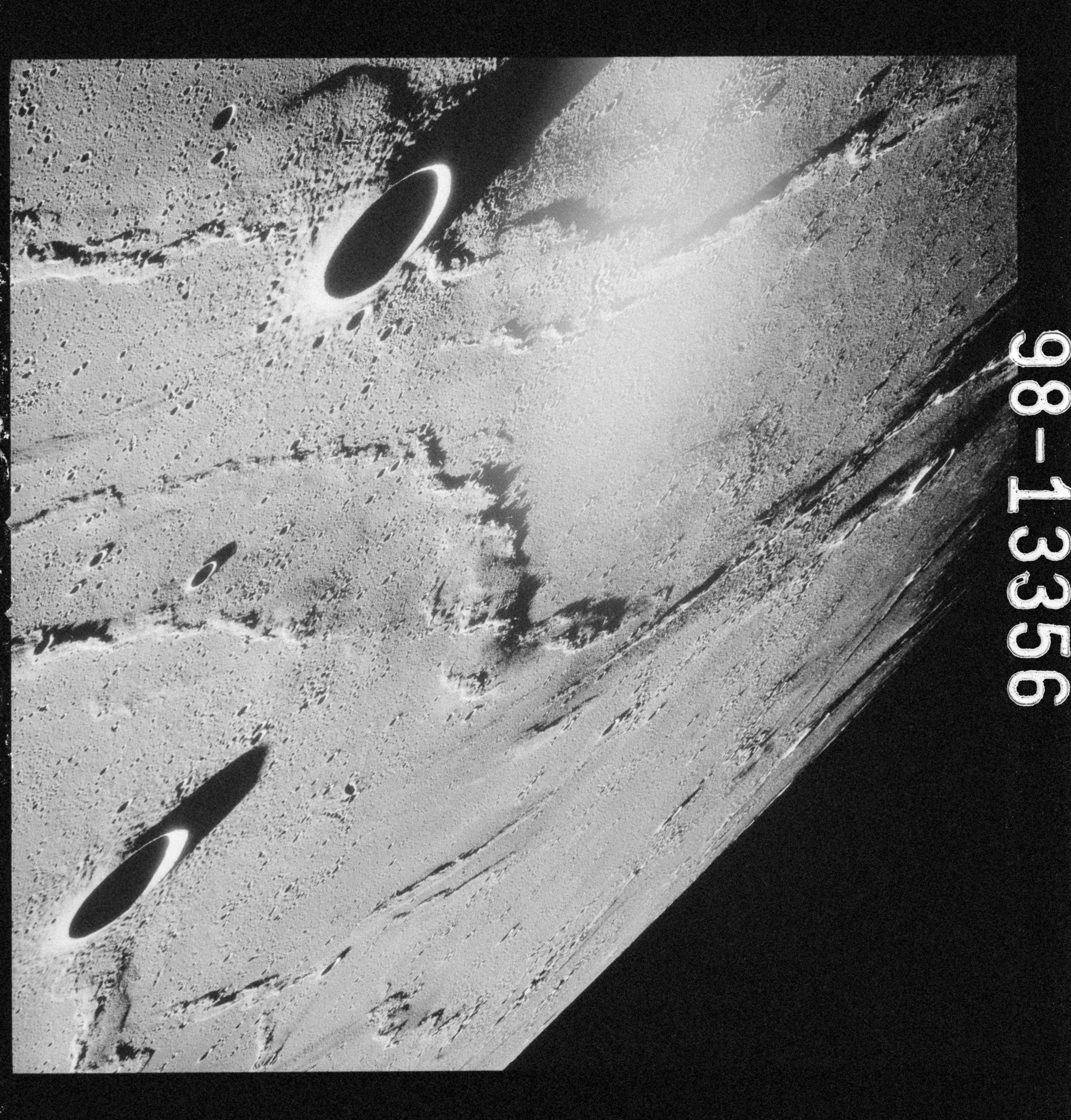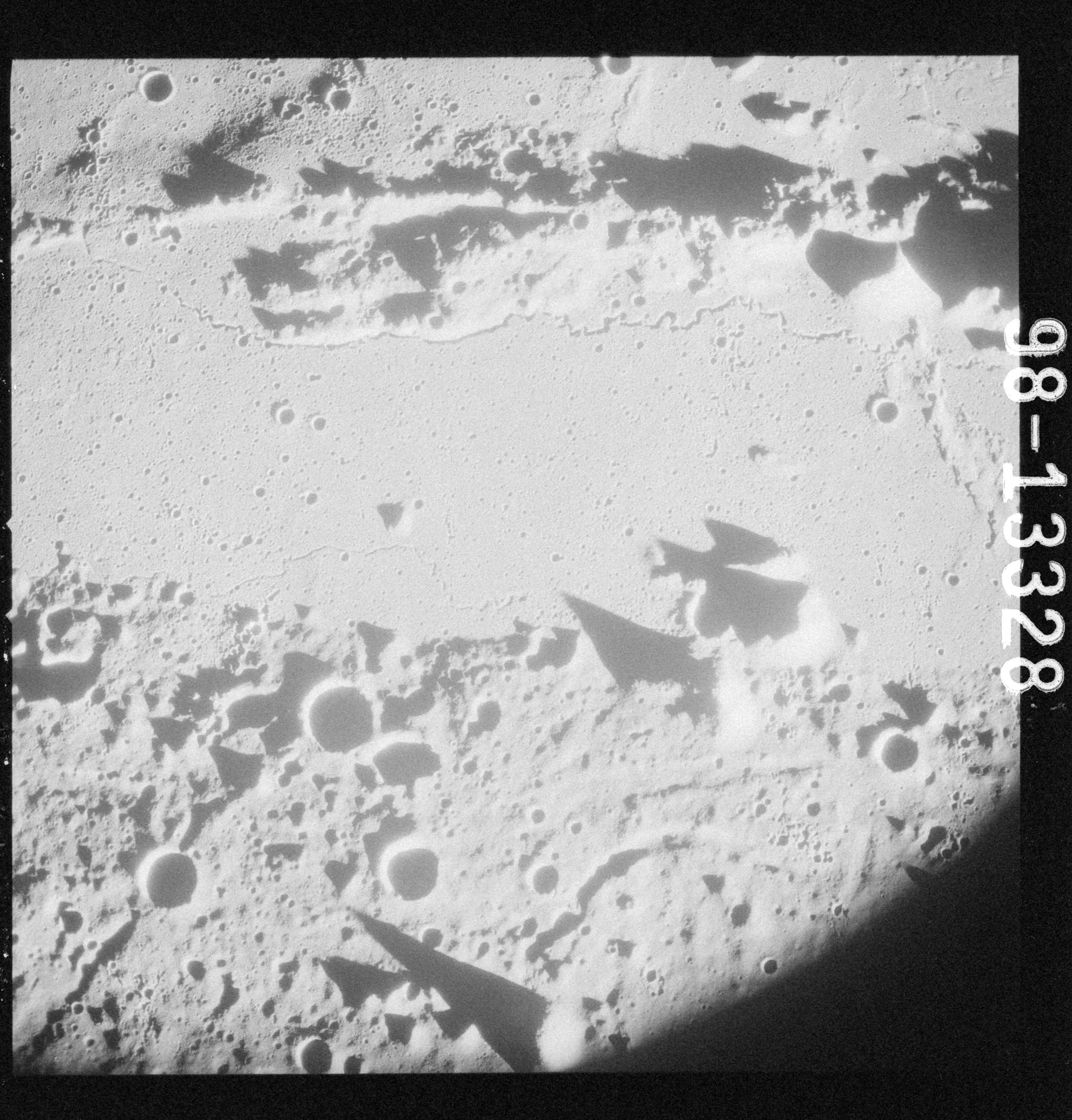 Endeavour should reach the sunrise terminator at about 203:27. As they approach and shadows lengthen, and starting at about 203:21, nine photos are taken on magazine PP of the vast expanse of Oceanus Procellarum.