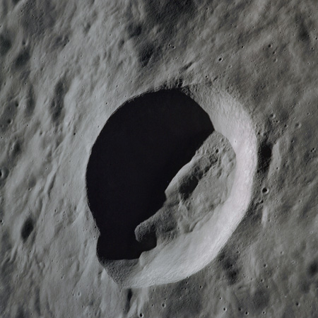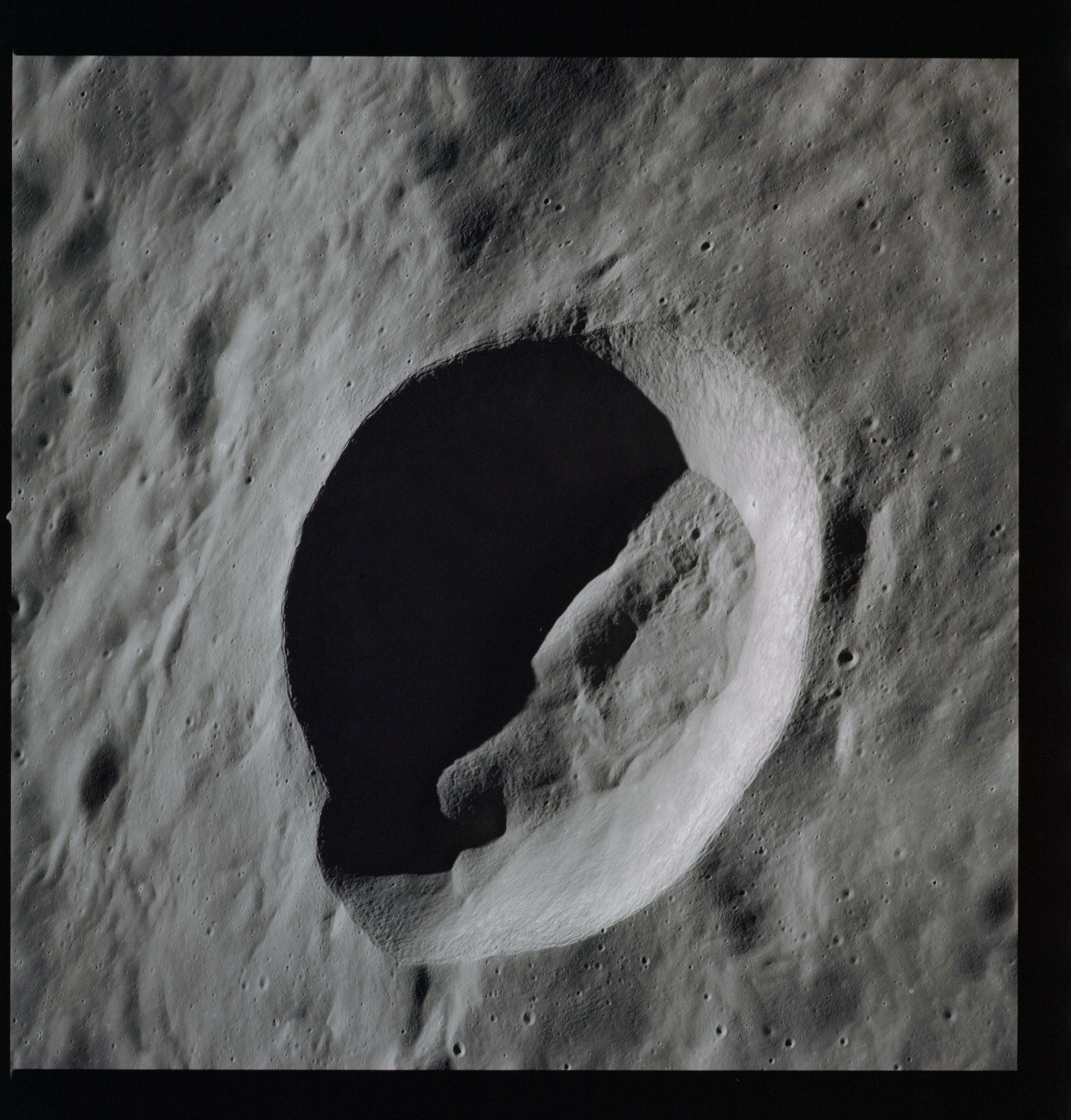 AS15-97-13189 - Unnamed crater beyond northwest rim of crater Sklodowska - Image by NASA/Johnson Space Center.