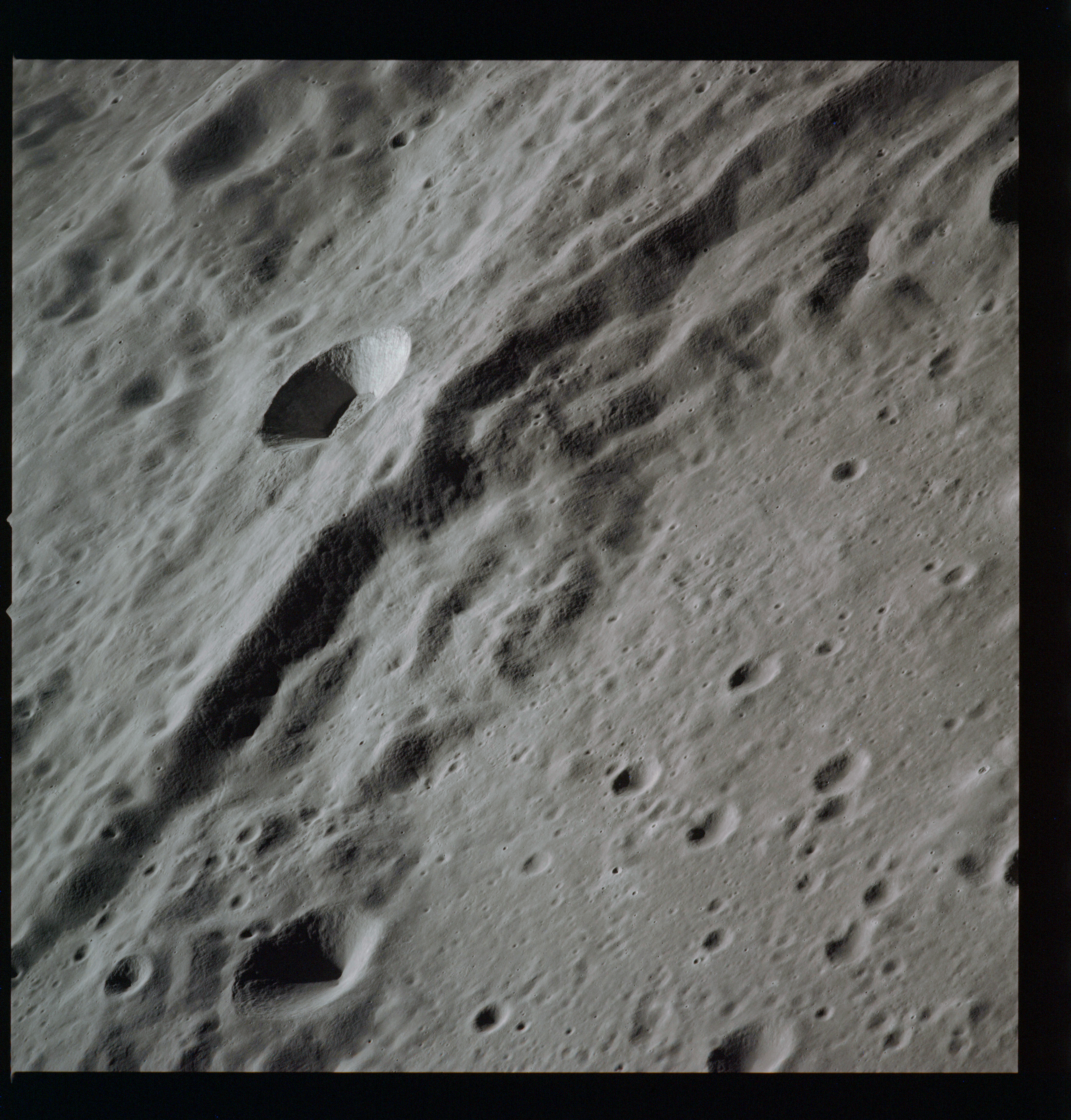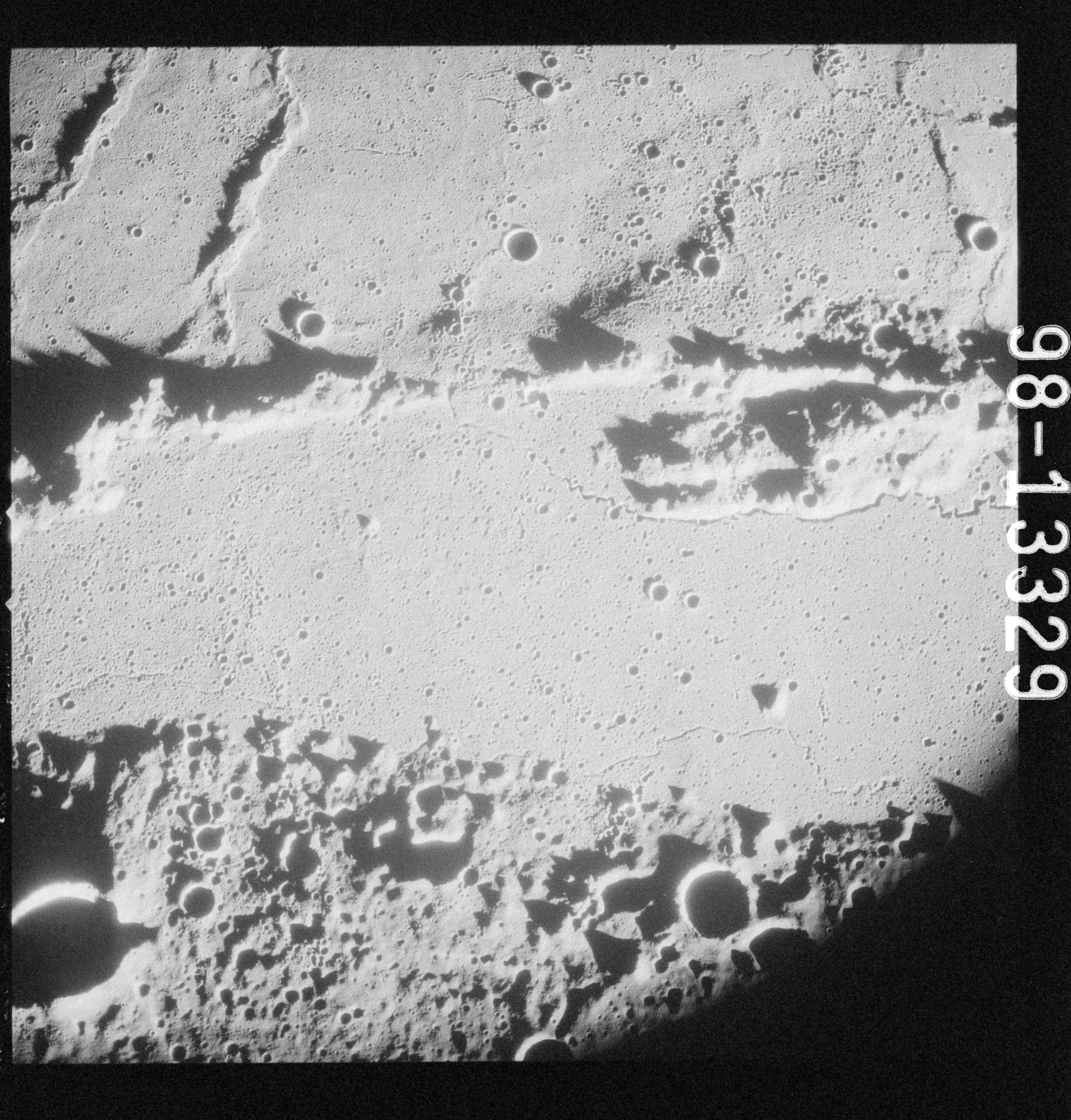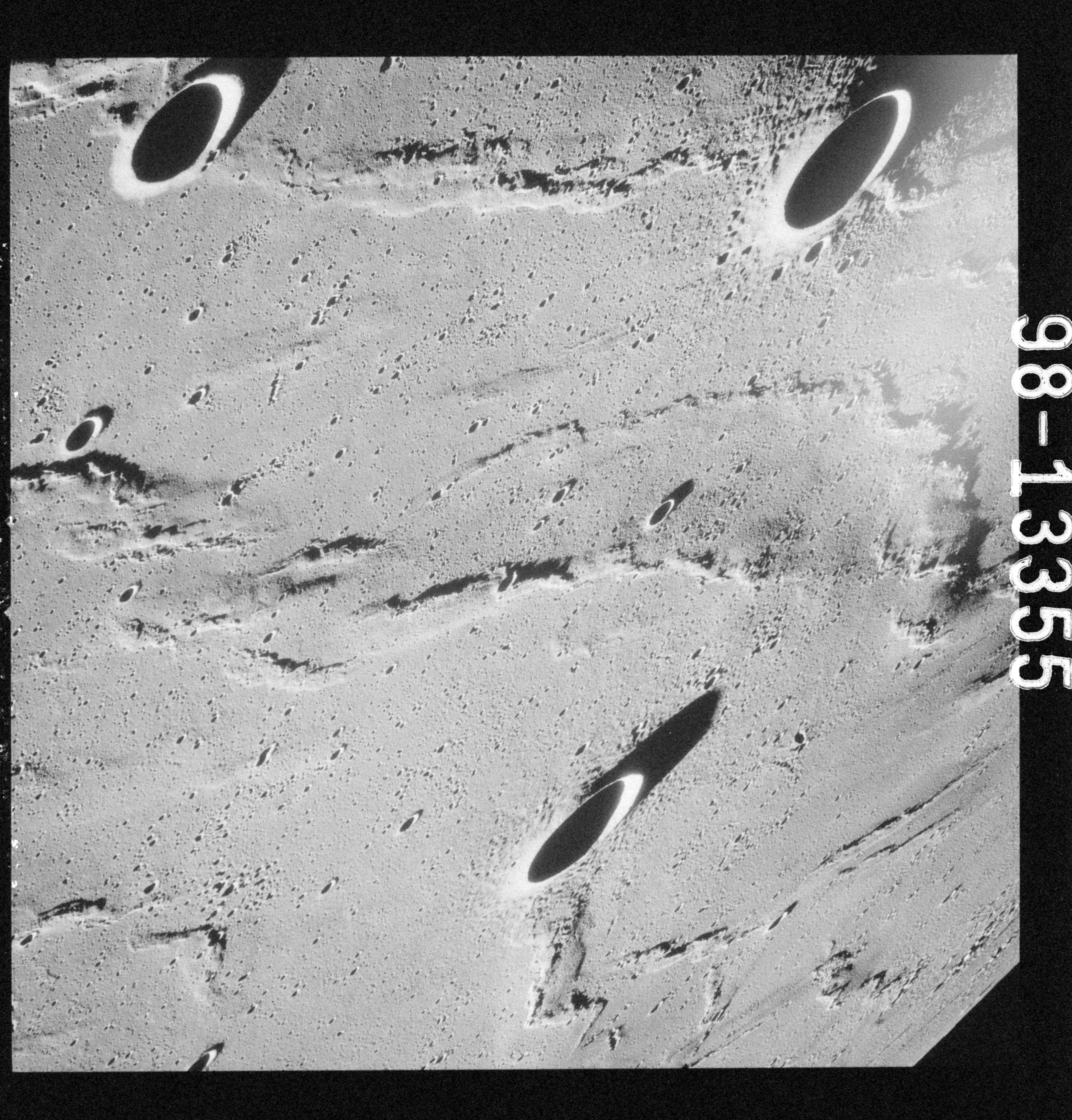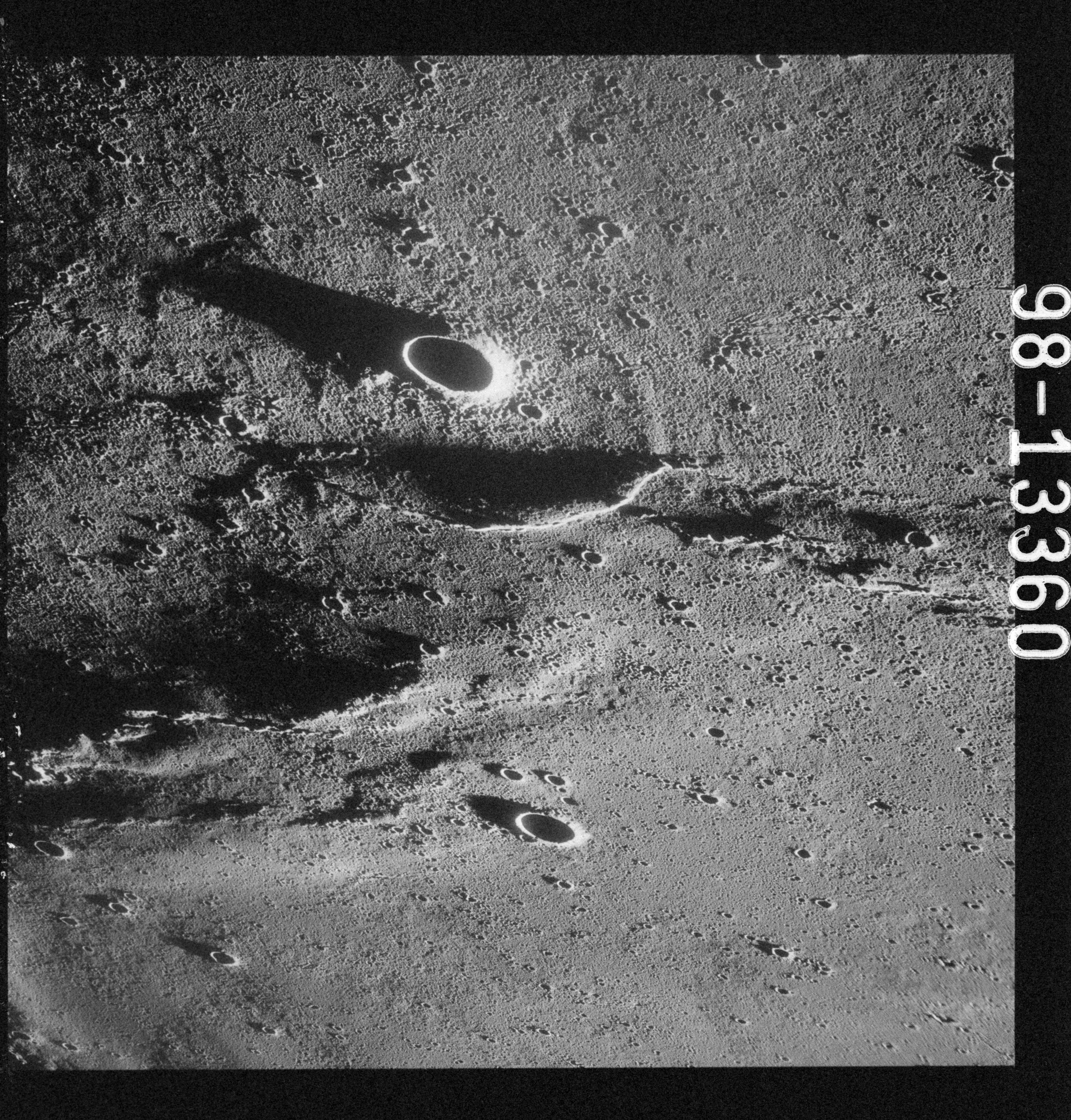 The first five images of this sequence look towards their northern horizon and across the crater Kondratyuk. With two smaller, but not insubstantial craters on either side of its floor, Kondratyuk is distinctive and is best seen in AS15-97-13177.
