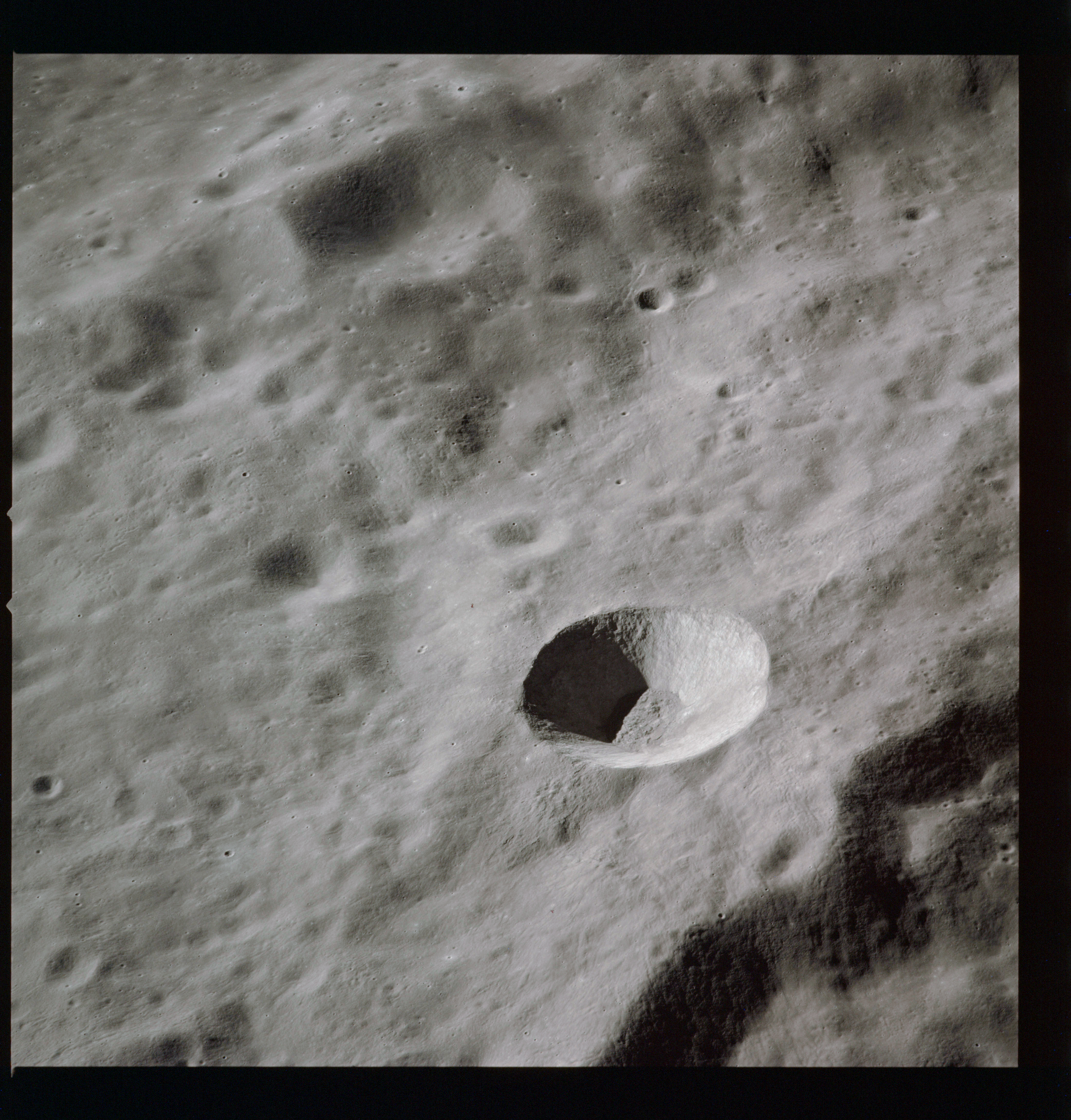 AS15-90-12281 - Mare Tranquillitatis. Crater Taruntius F is lower left of centre - Image by NASA/Johnson Space Center.